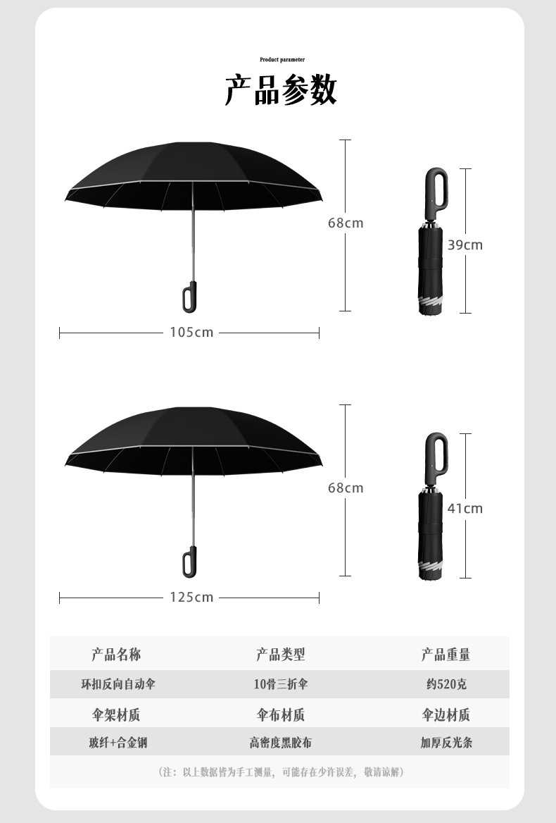 완전 자동 버클 우산 남자의 반전 접히는 우산 여성의 맑고 비오는 이중 사용 휴대용 초대형 두꺼운 선 스크린 우산