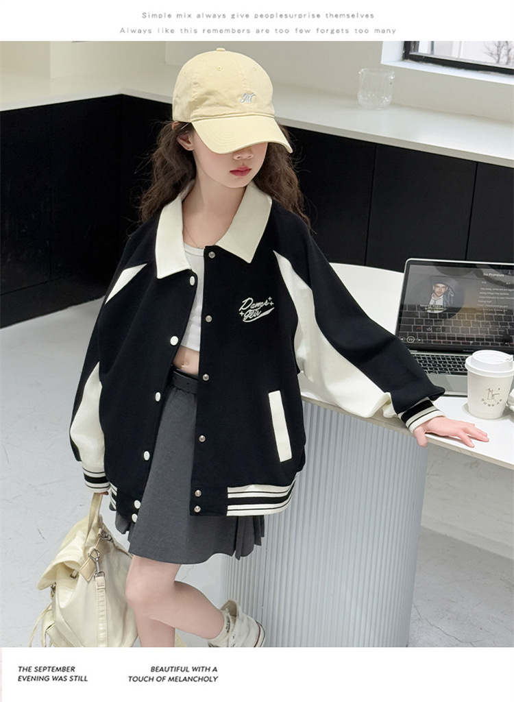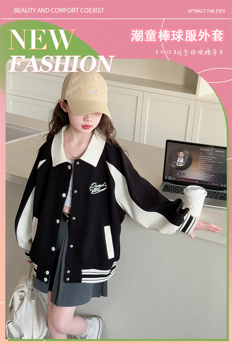 여자 야구 세트 코트 봄 새로운 한국 스타일 느슨한 패셔너블 어린이 세트 서양식 소녀 재킷 Huzhou Zhili