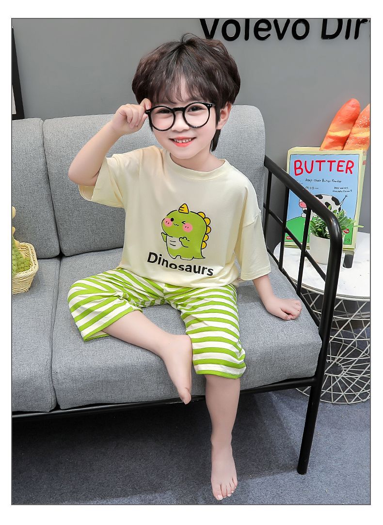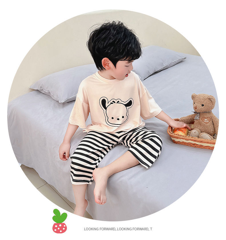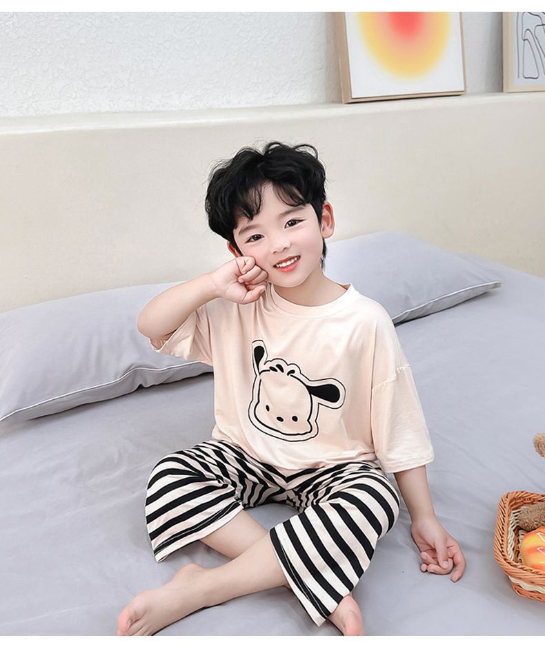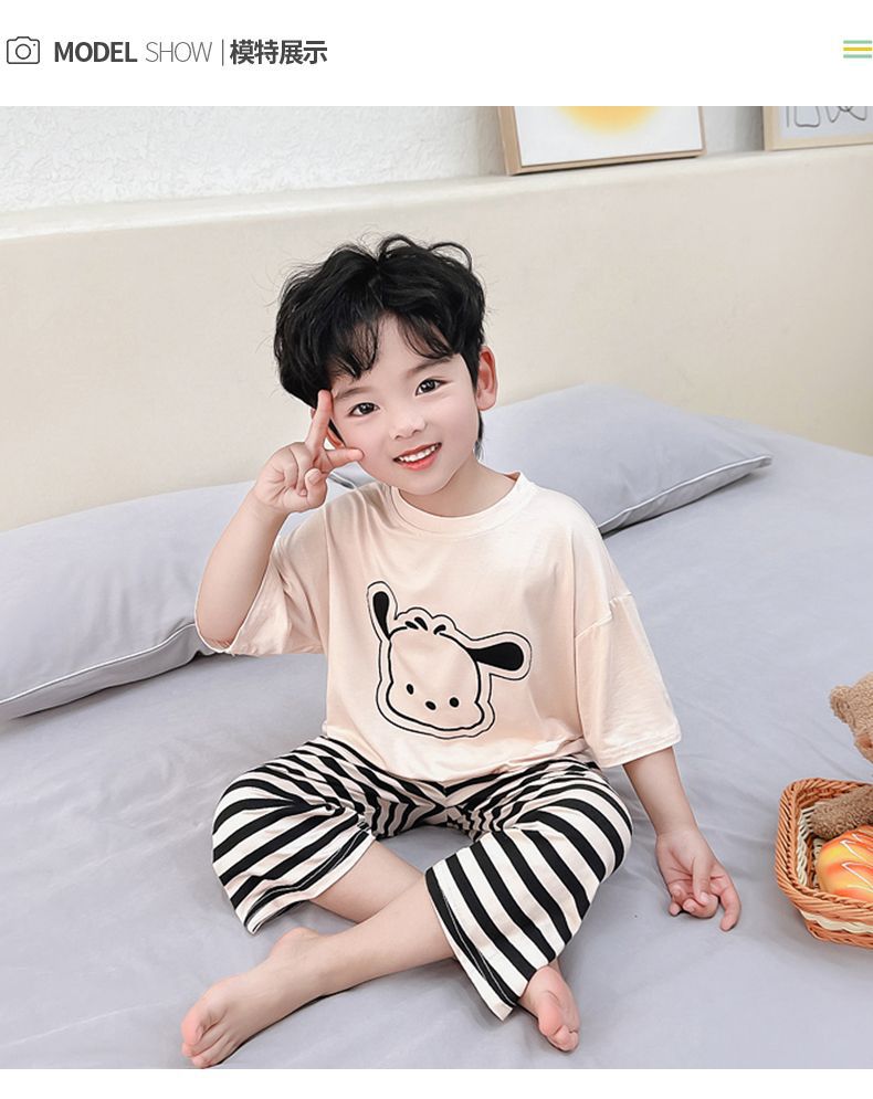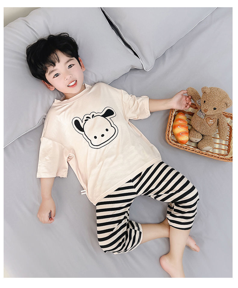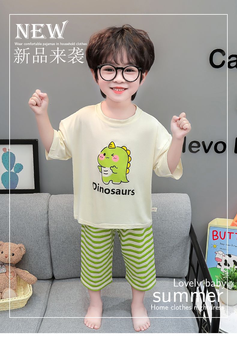 여름 어린이 모달 파자마 아기의 홈 의류 소년과 소녀 만화 에어컨 옷 느슨한 얇은 세트스토어 가기