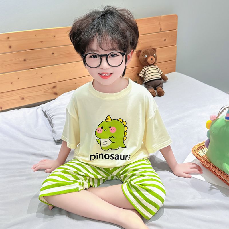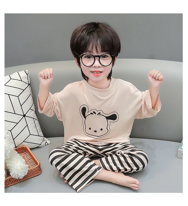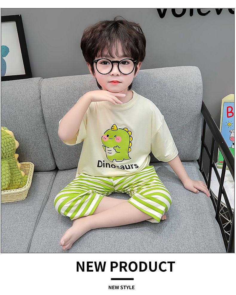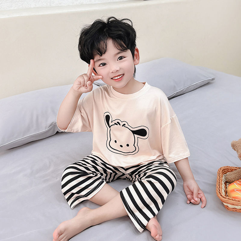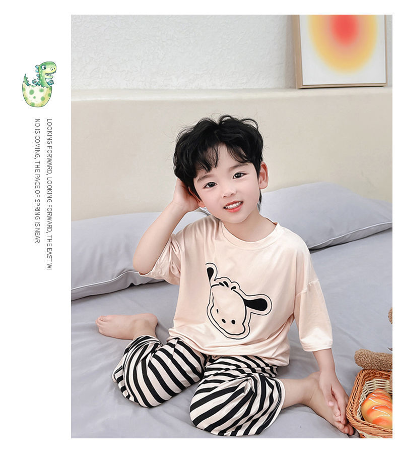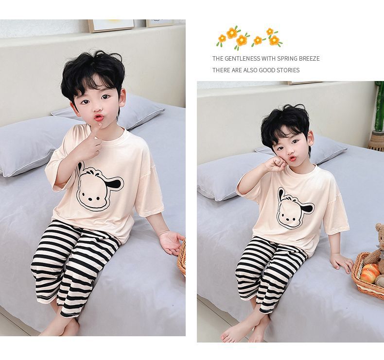 여름 어린이 모달 파자마 아기의 홈 의류 소년과 소녀 만화 에어컨 옷 느슨한 얇은 세트스토어 가기