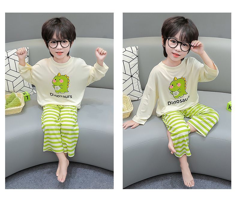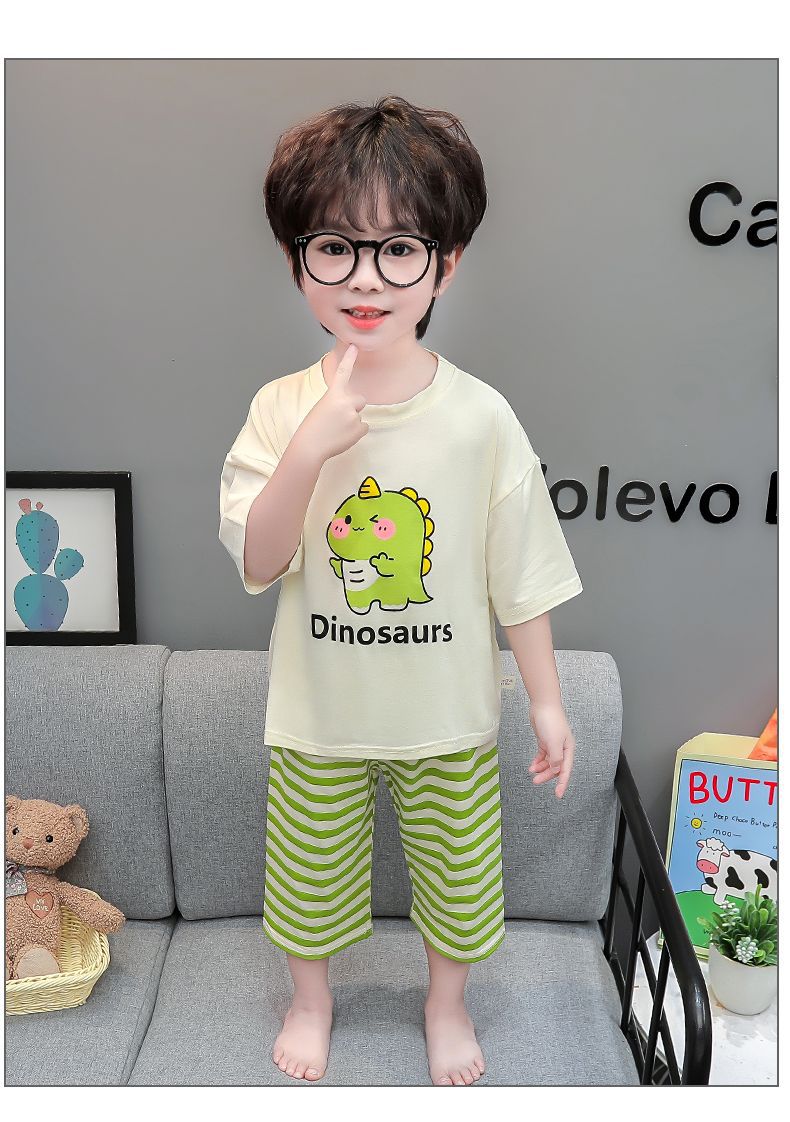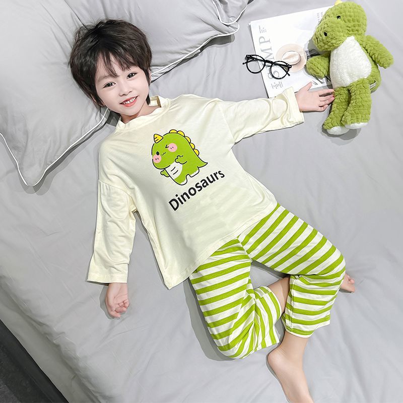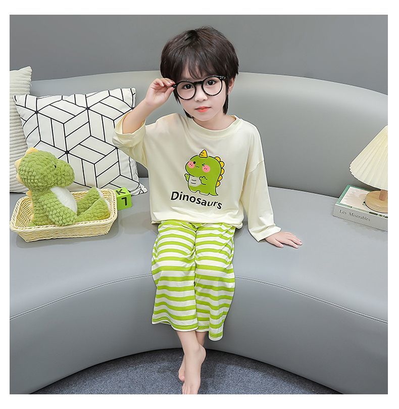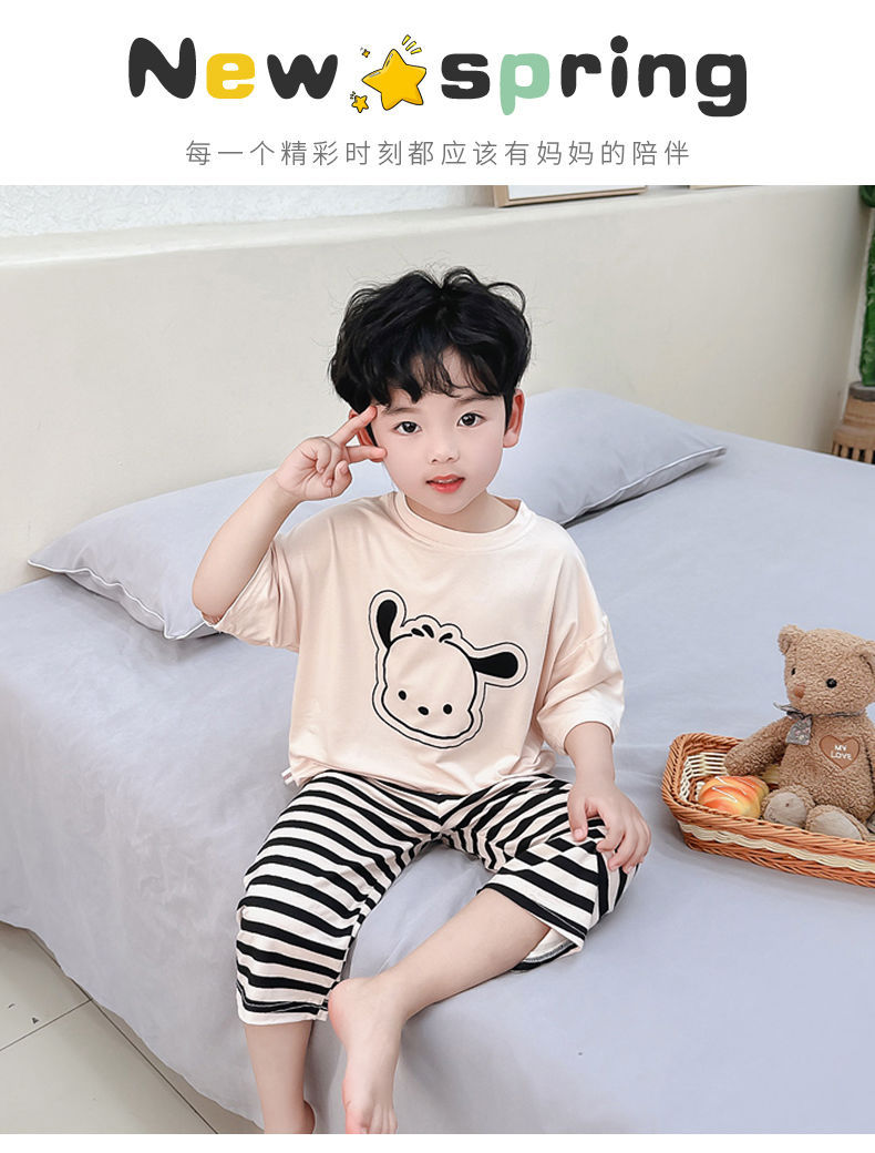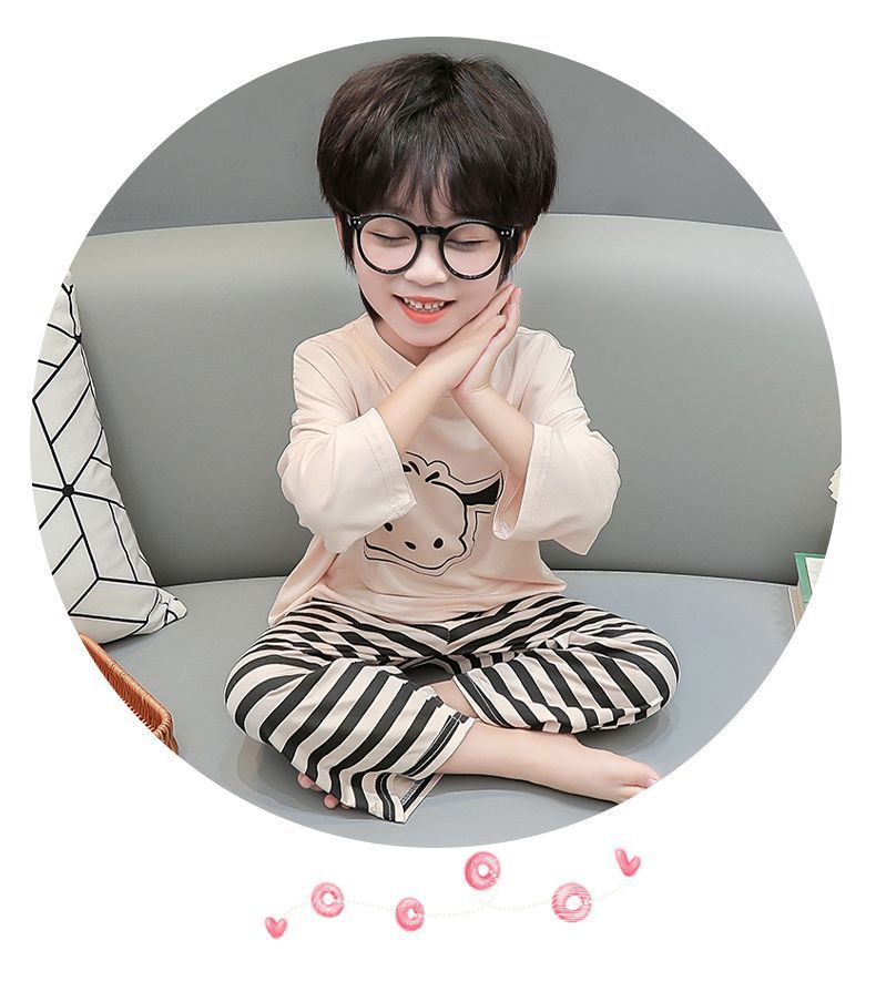 여름 어린이 모달 파자마 아기의 홈 의류 소년과 소녀 만화 에어컨 옷 느슨한 얇은 세트스토어 가기