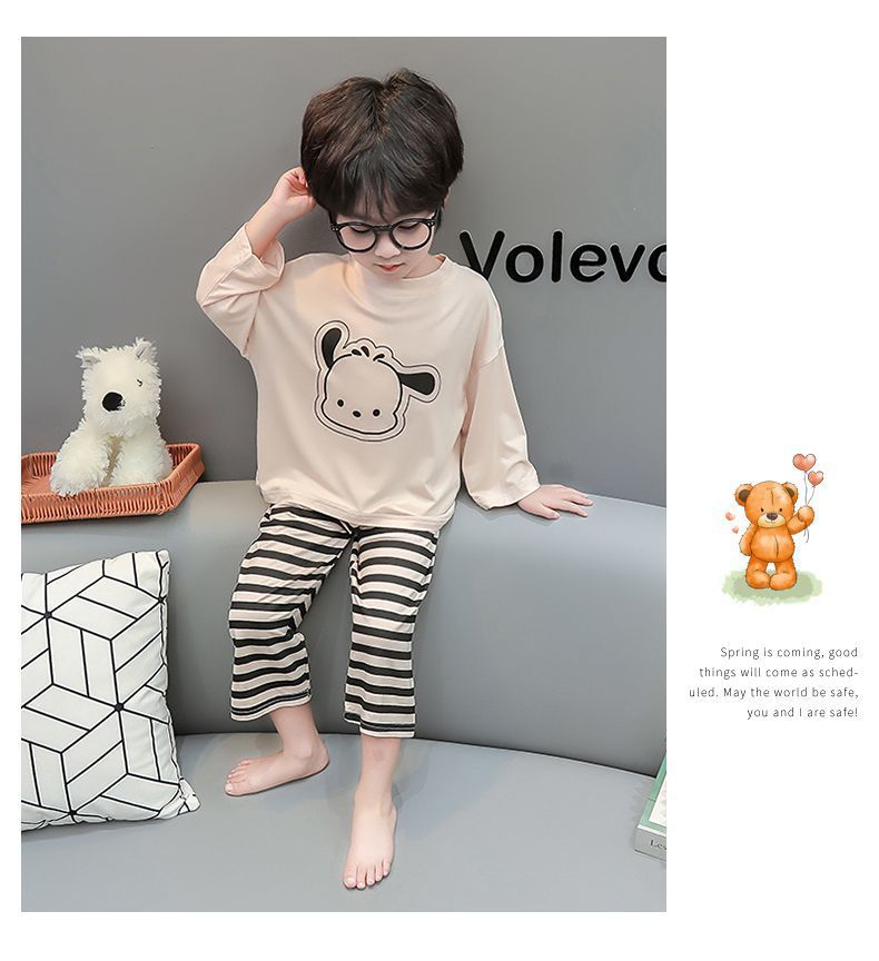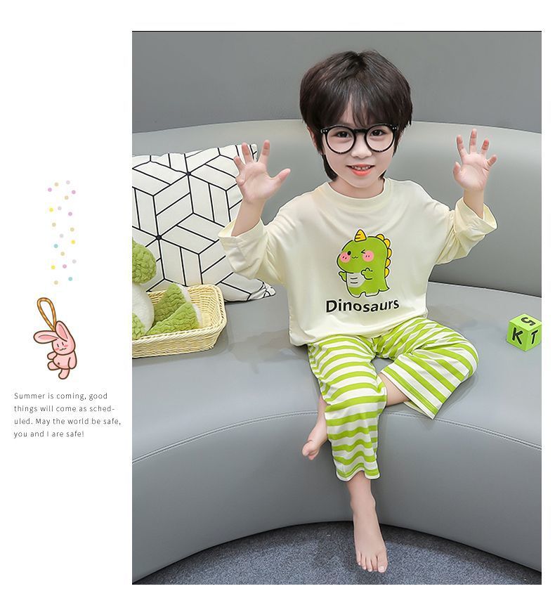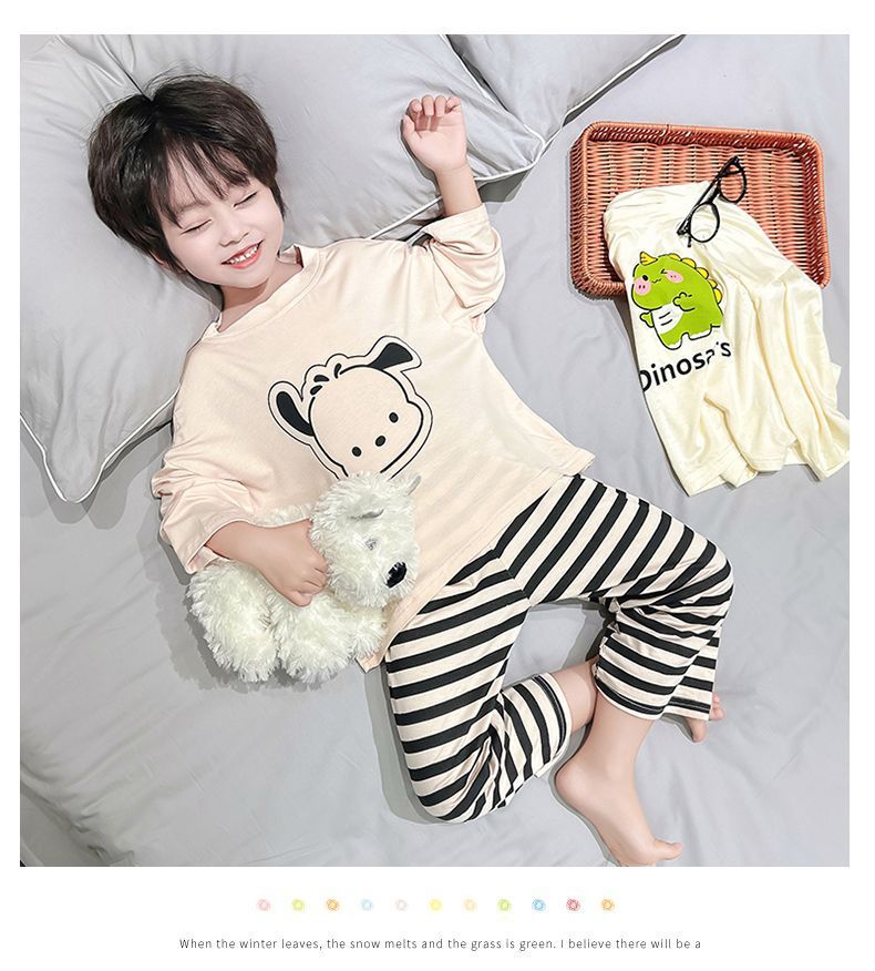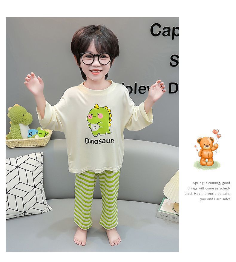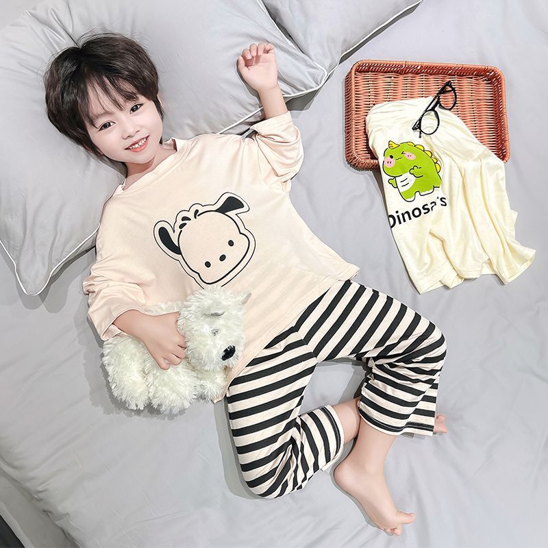 여름 어린이 모달 파자마 아기의 홈 의류 소년과 소녀 만화 에어컨 옷 느슨한 얇은 세트