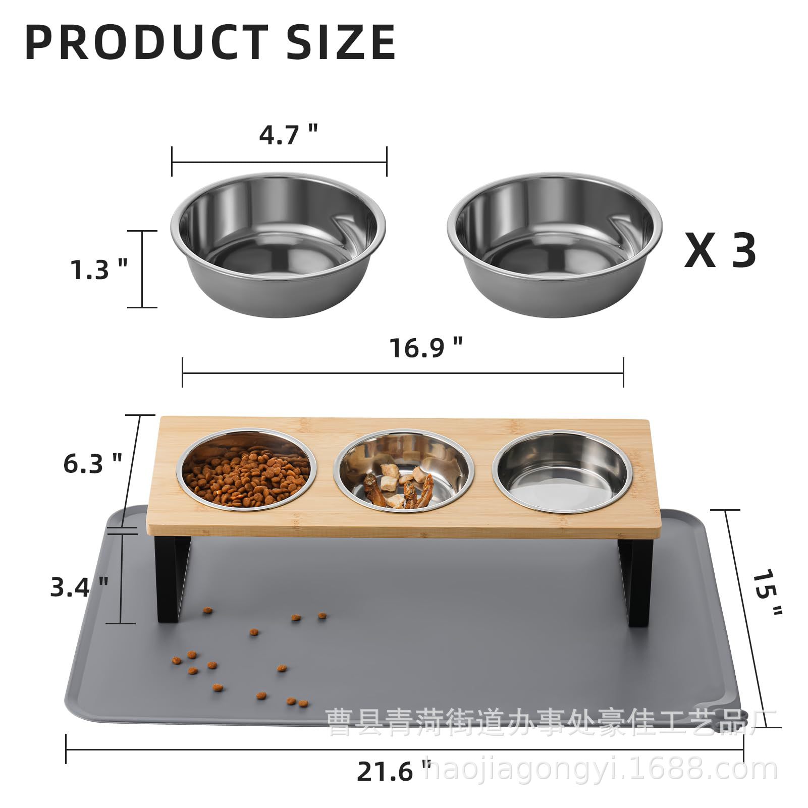 • 식품 패드가 포함된 스테인리스 스틸 3그릇