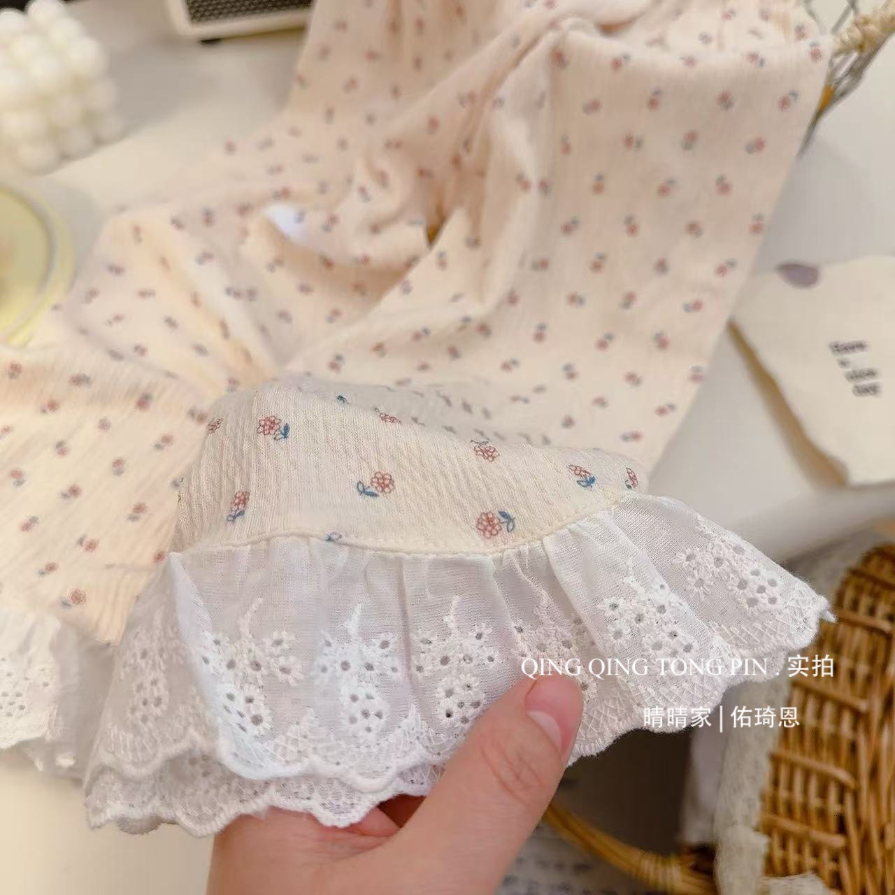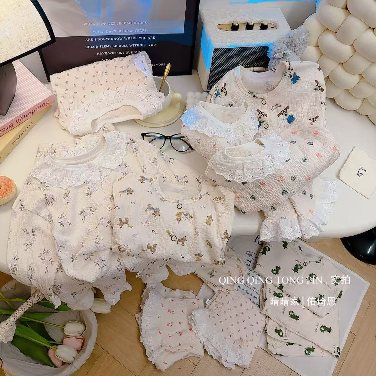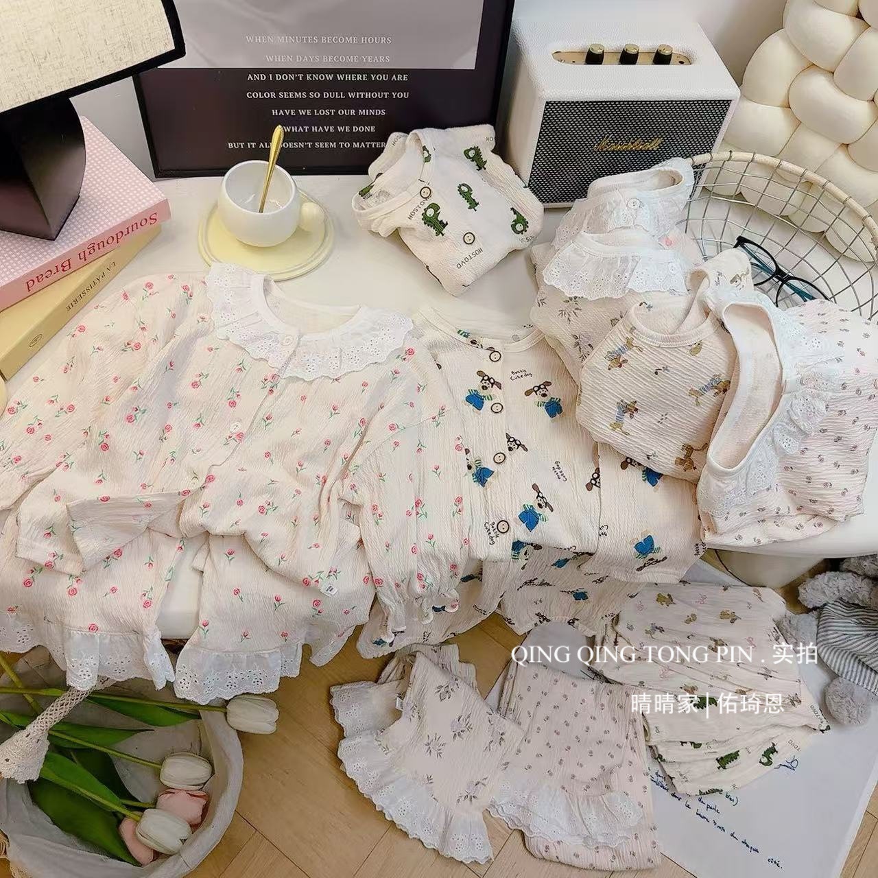 어린이 봄 카디건 스트레치 코튼 원사 세트 한국 스타일 귀여운 에어컨 옷 파자마 레이스 베이비 홈 옷
