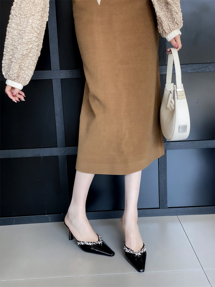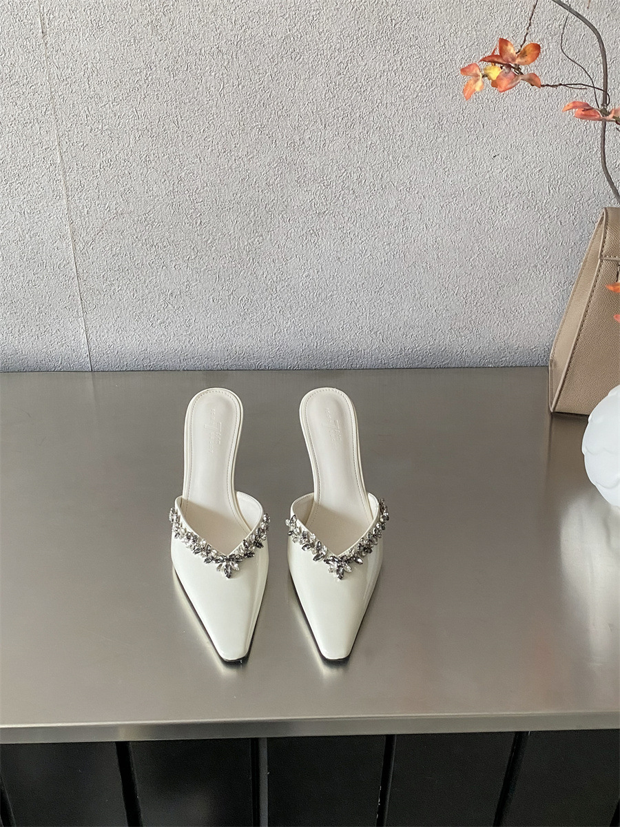 2025 봄 새 검은 발가락 반 슬리퍼 여성 특허 가죽 라인스톤 샌들 및 슬리퍼 프랑스 뾰족한 하이힐 뮬러 신발스토어 가기