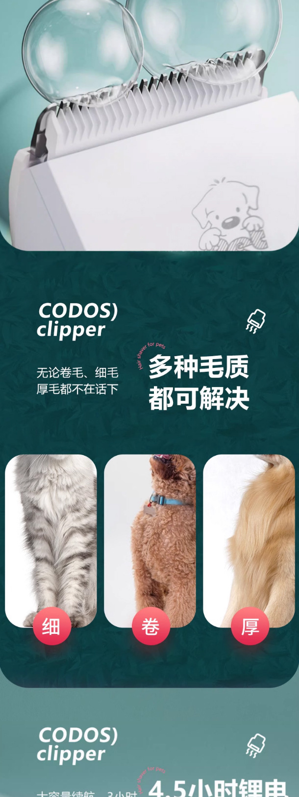 코더스 8200 애완동물 전기 이발기 강아지 고양이 털 다듬기 제모기 전기 이발기