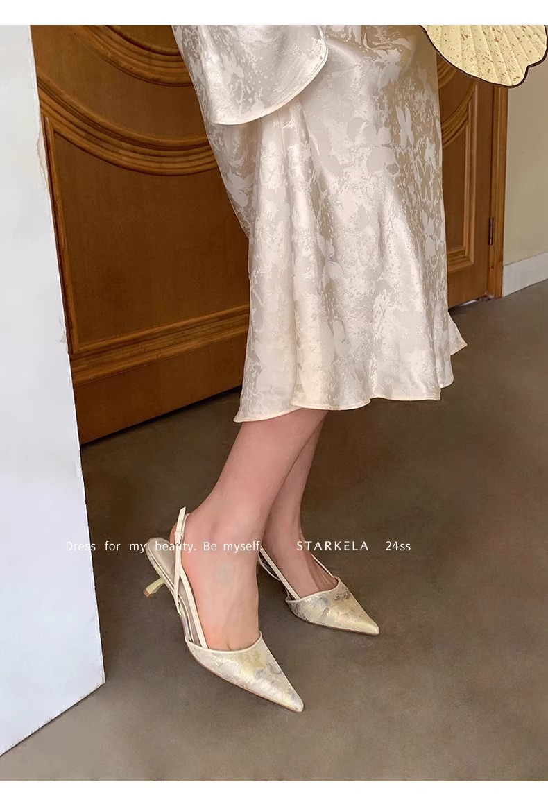 봄과 가을 2025 새로운 얕은 입 신발 자수 새로운 중국 스타일 Baotou 샌들 포인팅 테이프