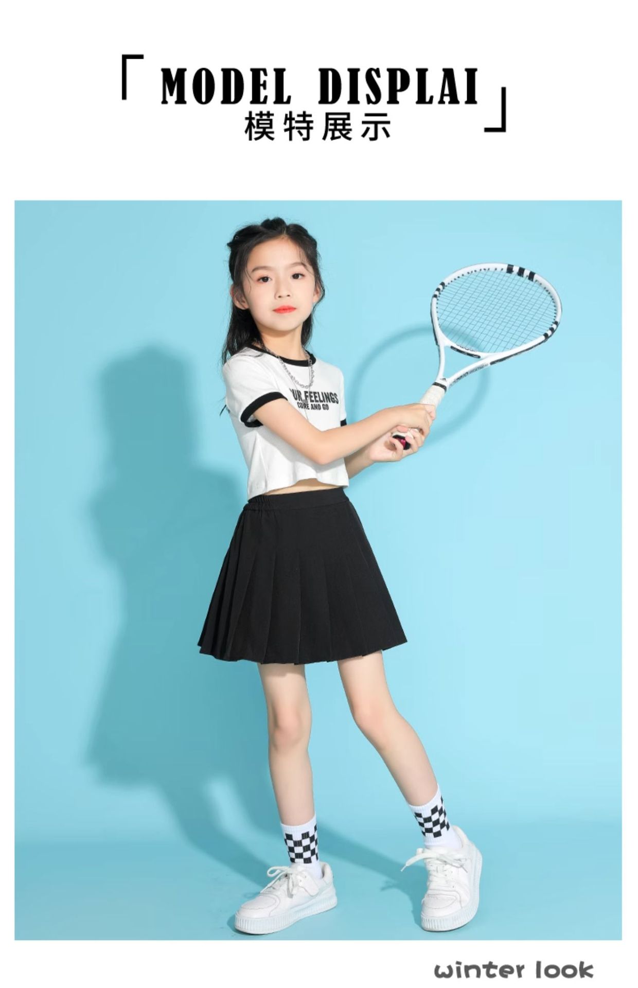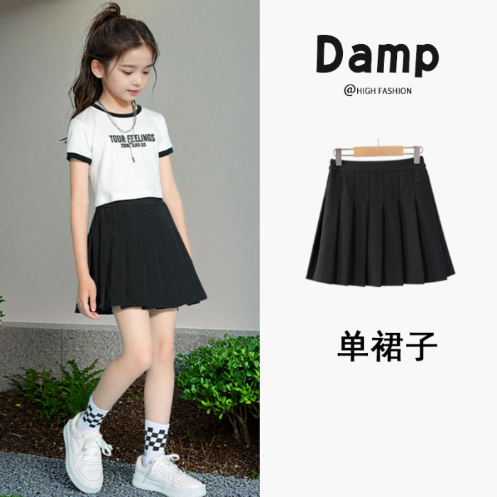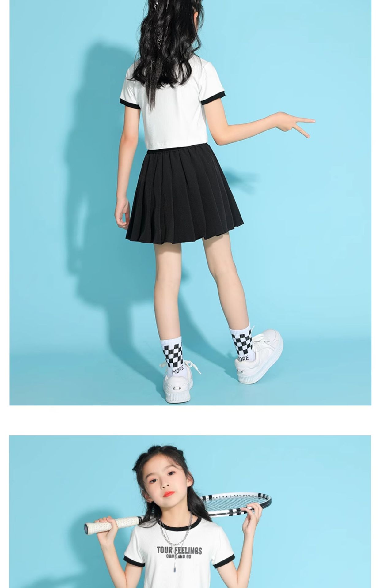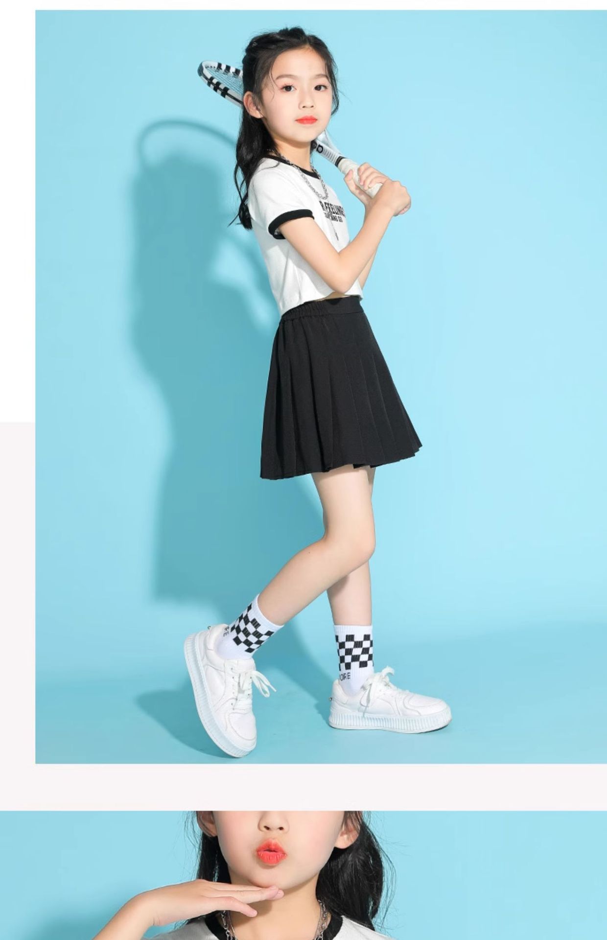 여자 코튼 티셔츠 2024 여름 새로운 문자 색상 일치 짧은 소매 상단 주름 치마 모양 치마 조수