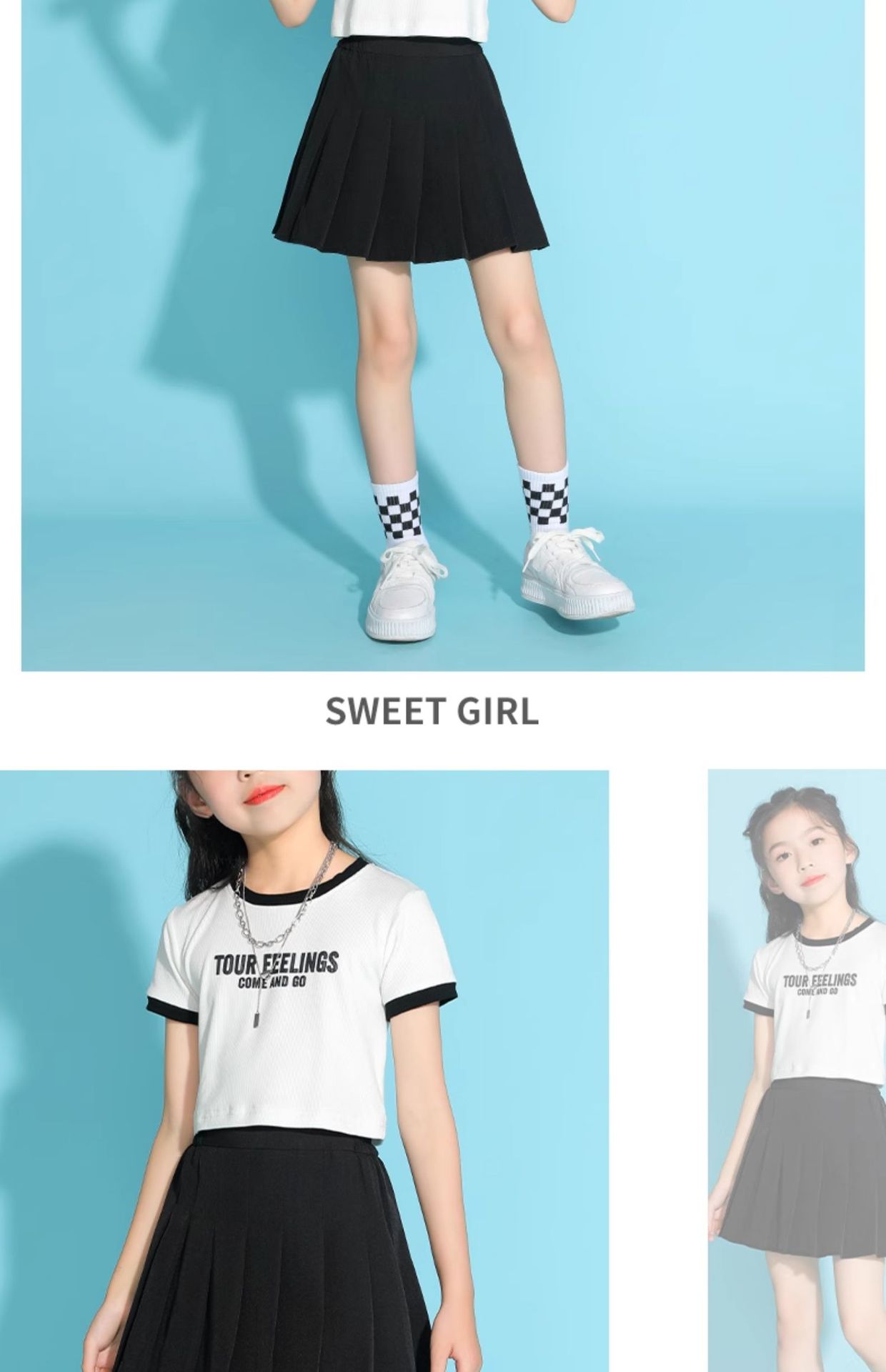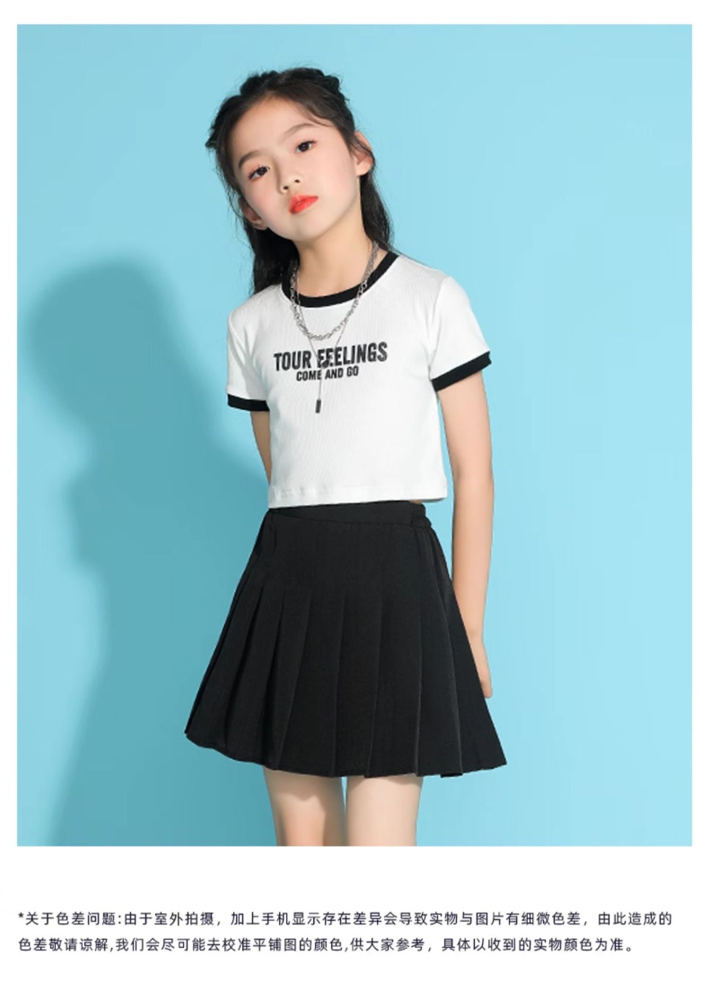 여자 코튼 티셔츠 2024 여름 새로운 문자 색상 일치 짧은 소매 상단 주름 치마 모양 치마 조수스토어 가기