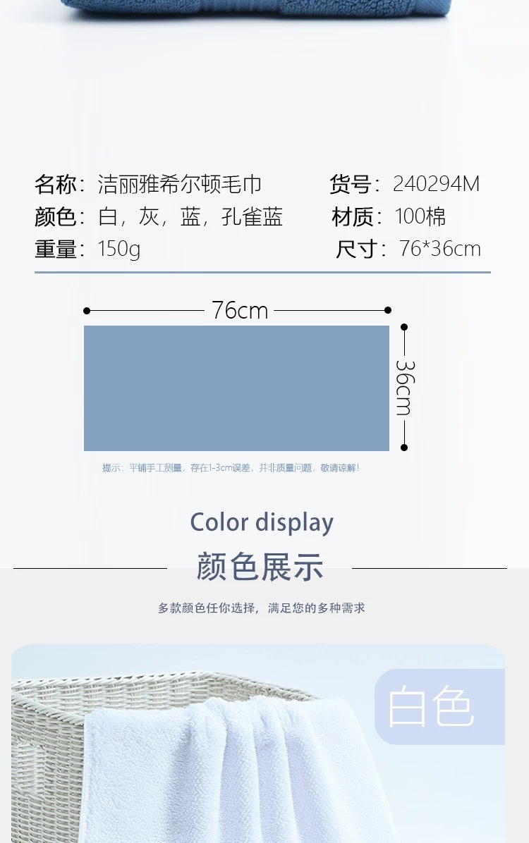 지엘리야 항균 타월 힐튼 순면 세안 타월 두꺼운 대형 무지 타월 지엘리야240294