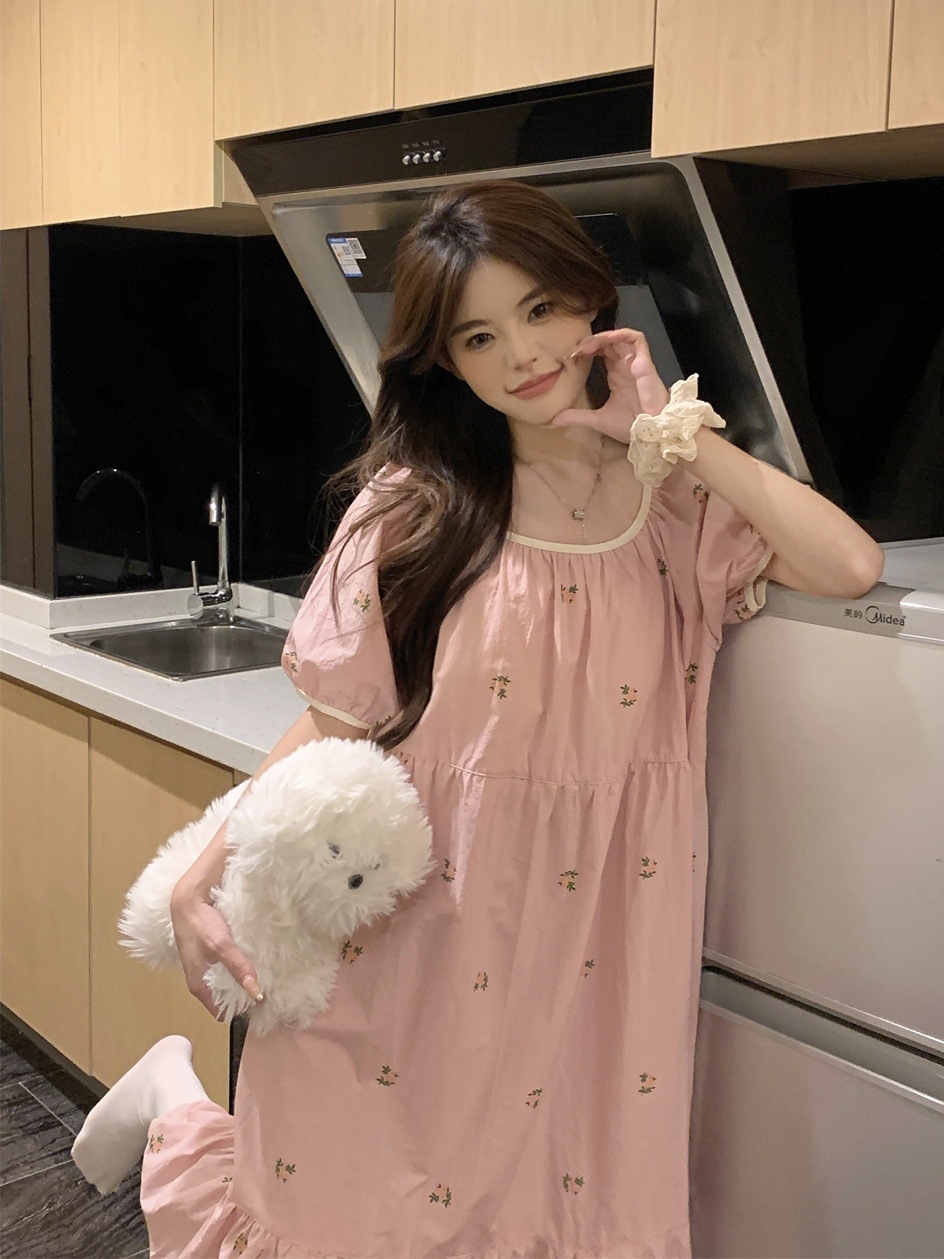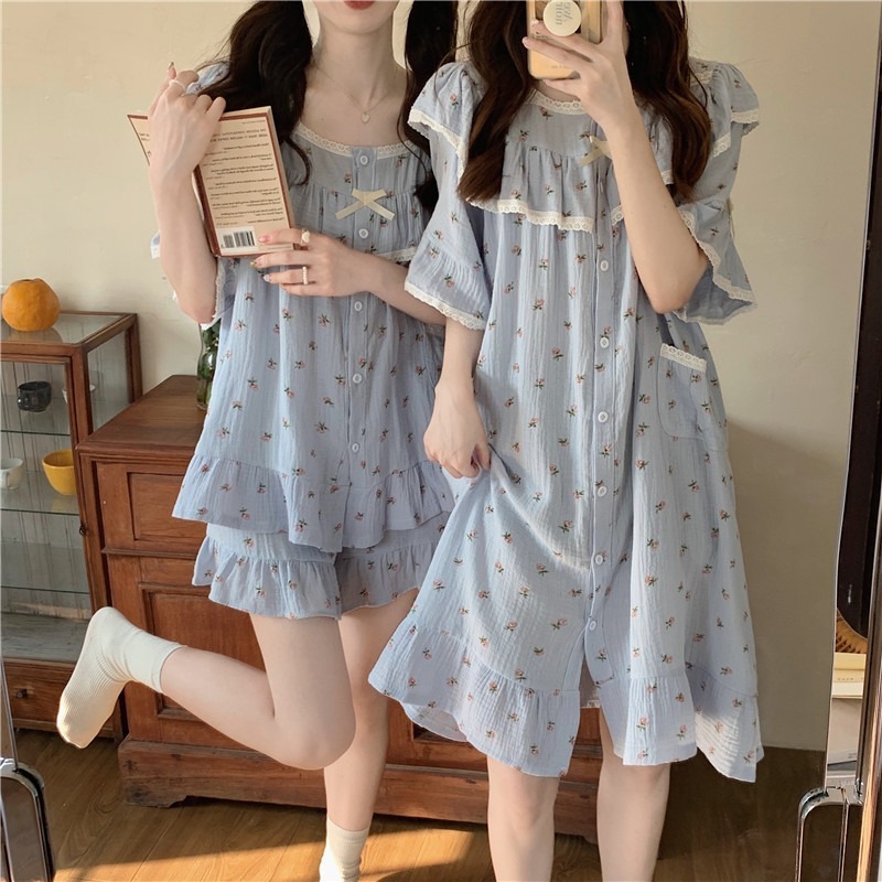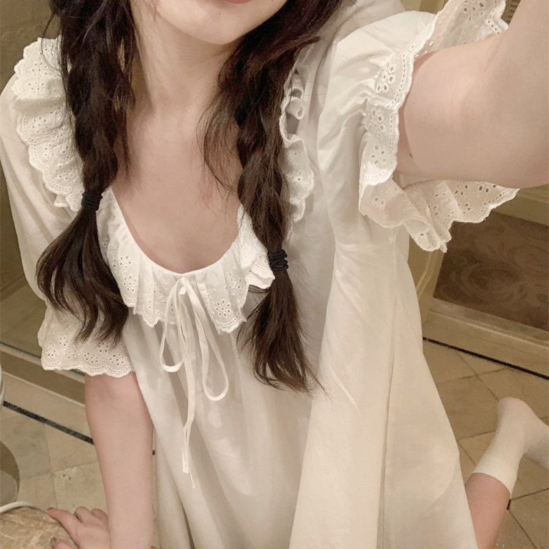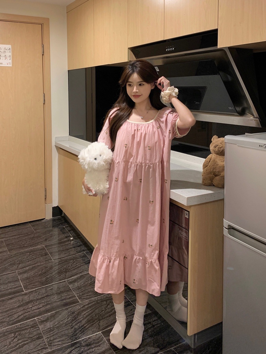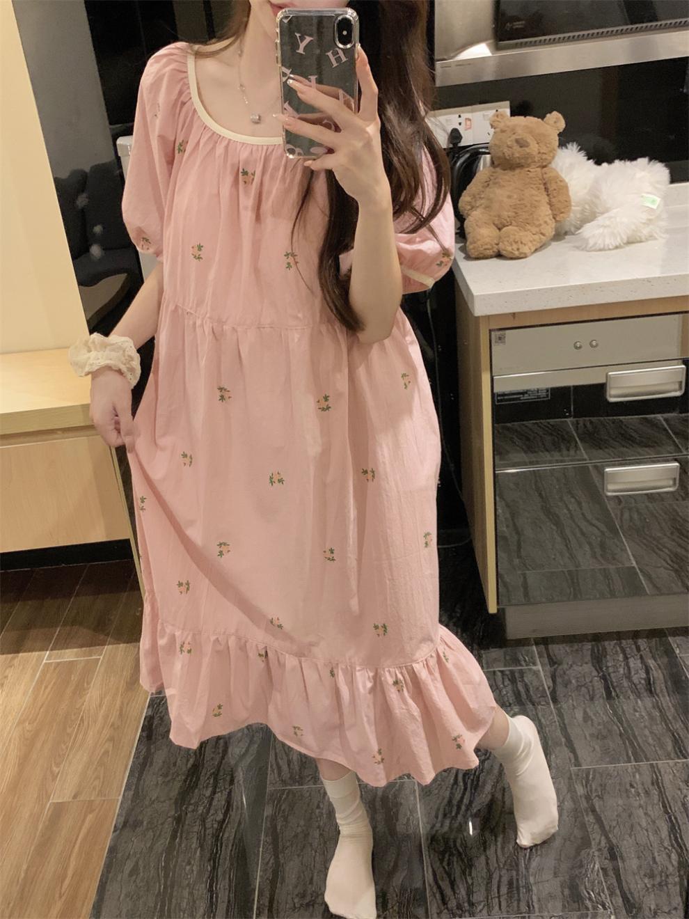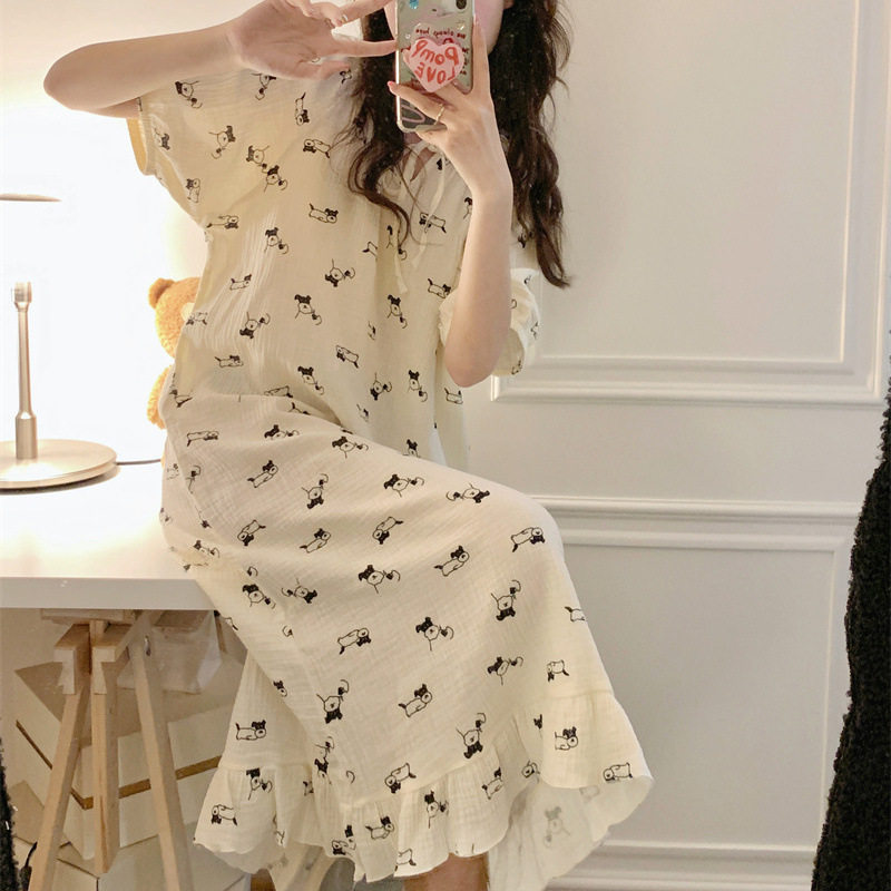 한국형 나이트가운 여성 여름 학생 새 2025 인터넷 연예인 하이 엔드 Ins 스타일 느슨한 외부 착용 홈 의류스토어 가기