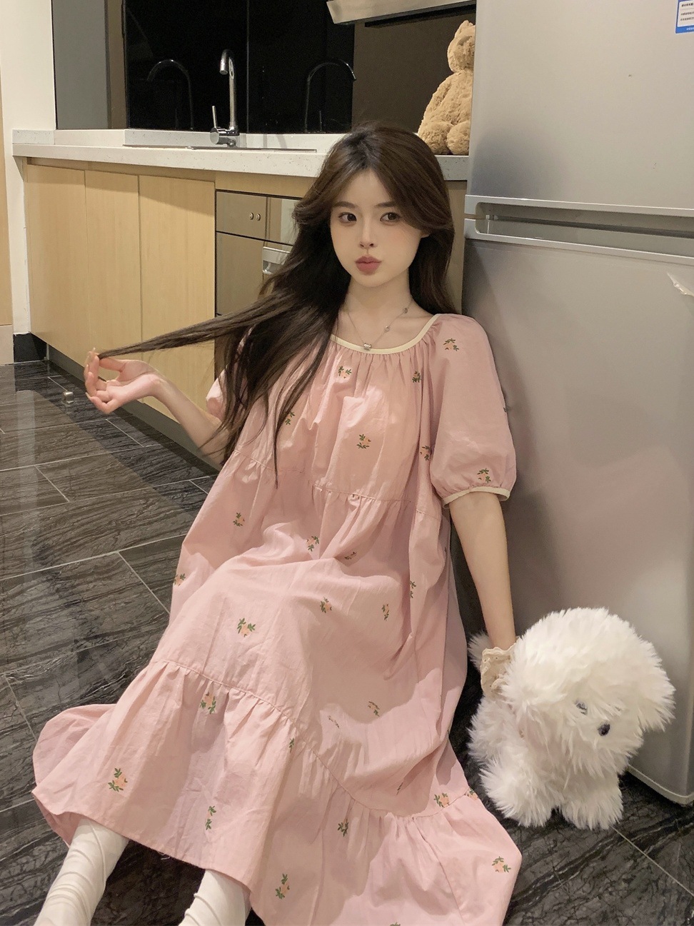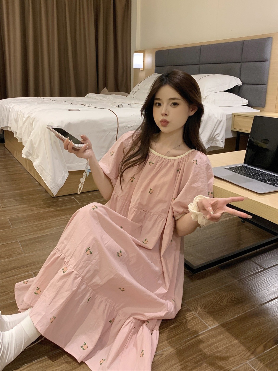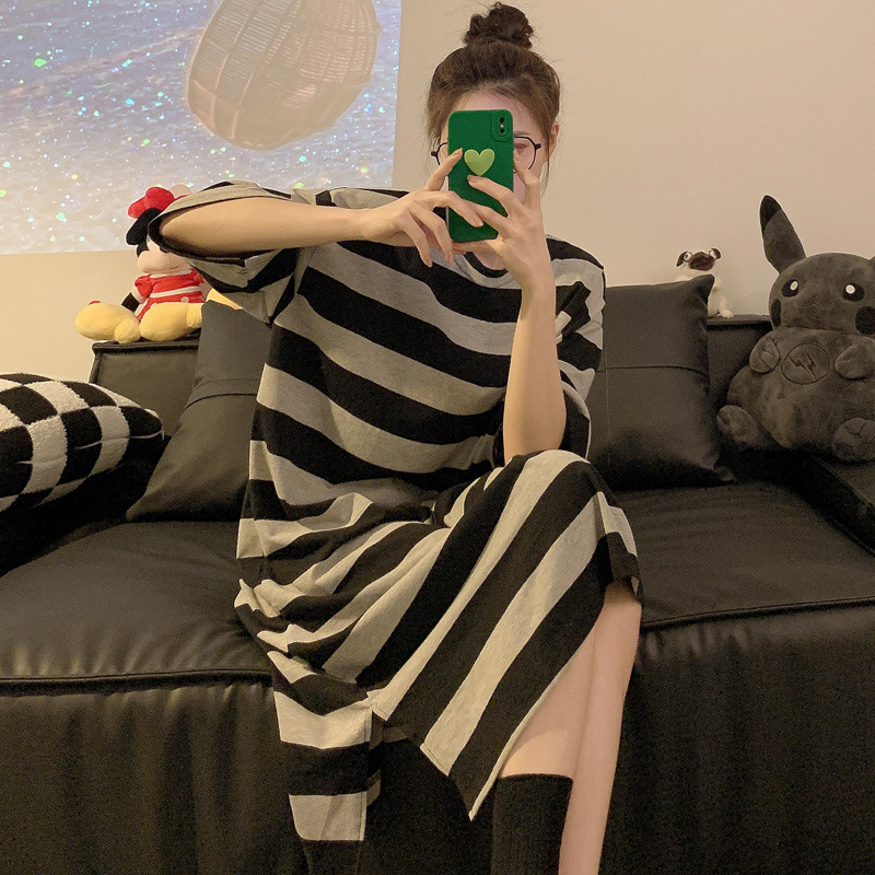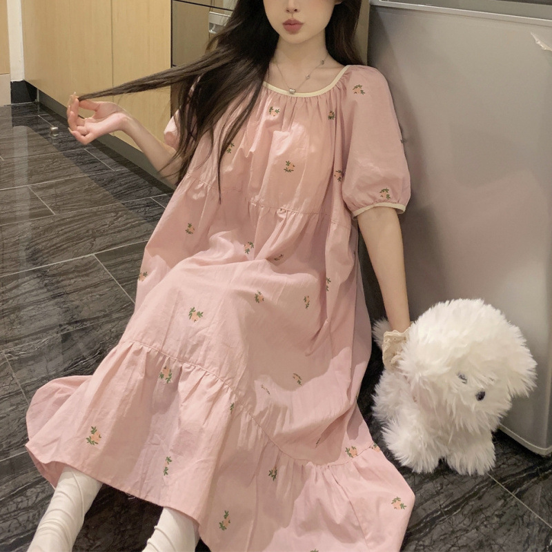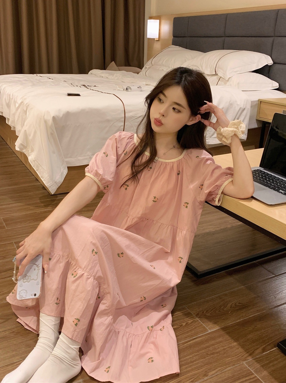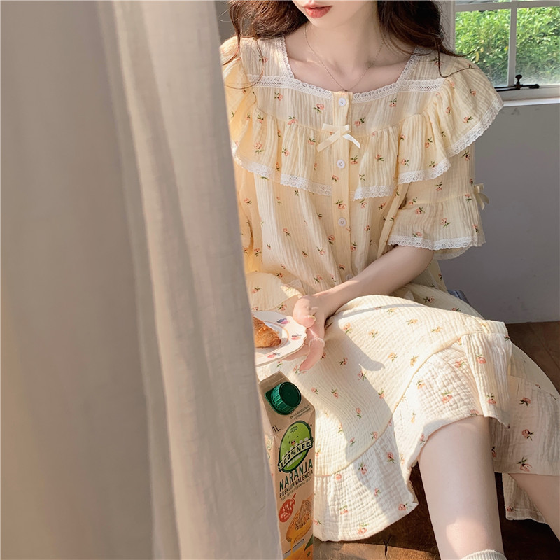 한국형 나이트가운 여성 여름 학생 새 2025 인터넷 연예인 하이 엔드 Ins 스타일 느슨한 외부 착용 홈 의류스토어 가기