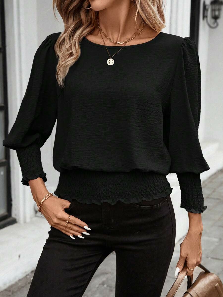 Amazon 독립 스테이션 유럽 및 미국 해외 무역 2025 신제품 루즈한 대형 라운드 넥 솔리드 컬러 셔츠 랜턴 슬리브 스타일스토어 가기