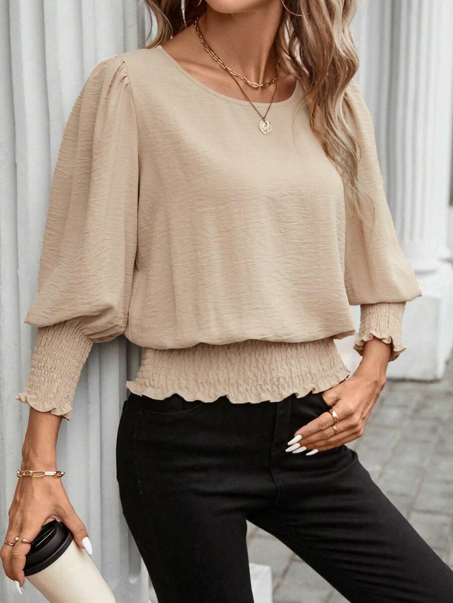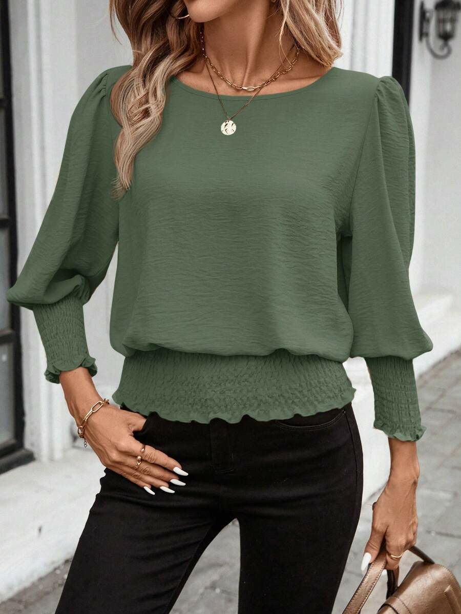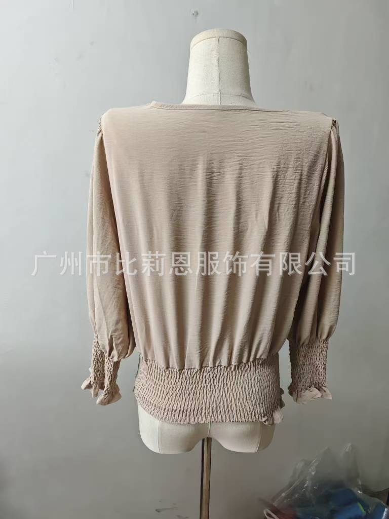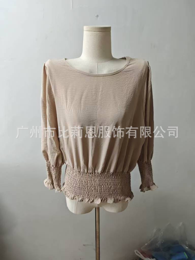 Amazon 독립 스테이션 유럽 및 미국 해외 무역 2025 신제품 루즈한 대형 라운드 넥 솔리드 컬러 셔츠 랜턴 슬리브 스타일
