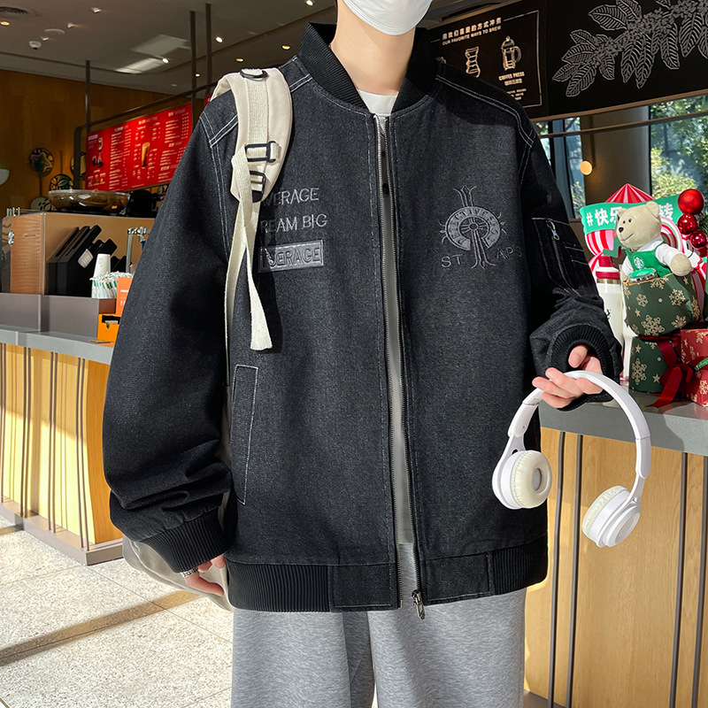 데님 코트 남자 봄과 가을 2025 새로운 뚱뚱한 플러스 사이즈 남자 옷 야구 칼라 재킷스토어 가기