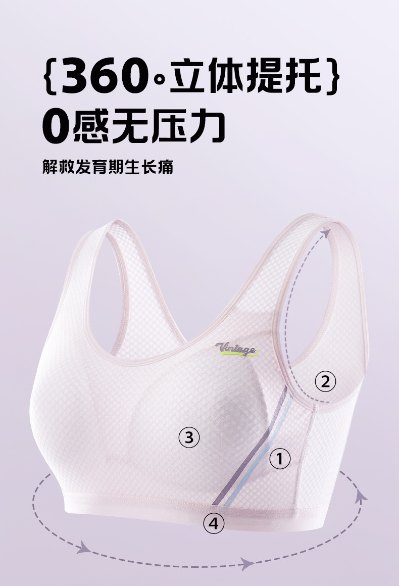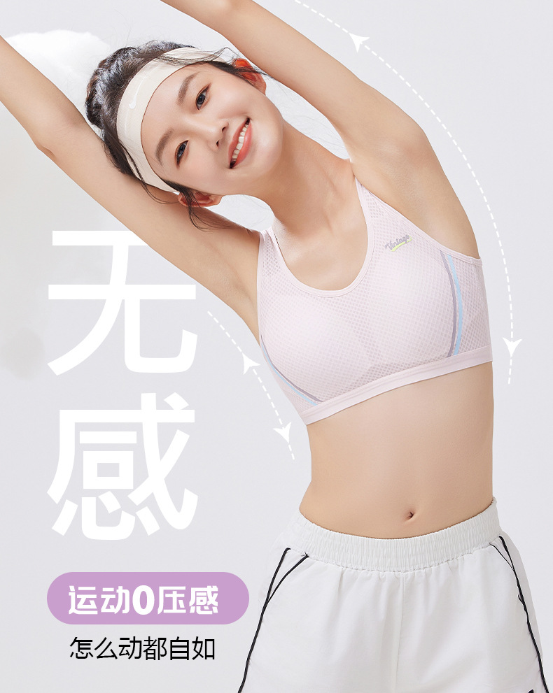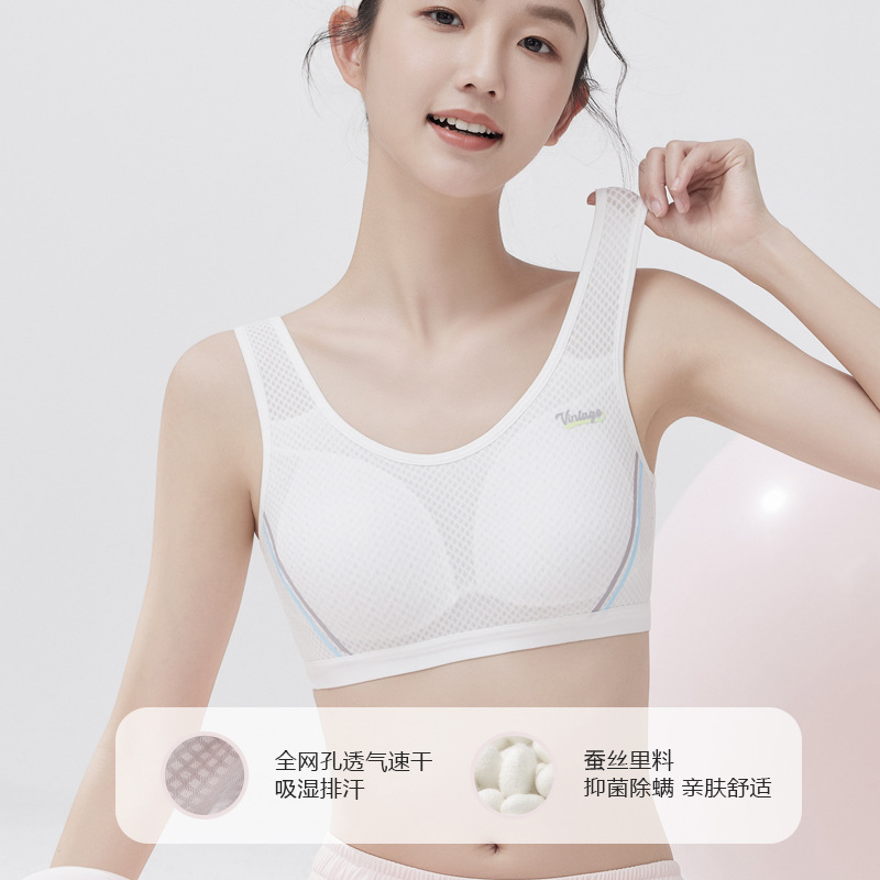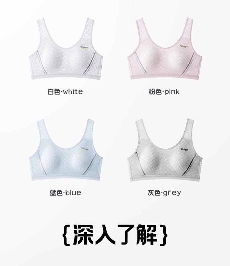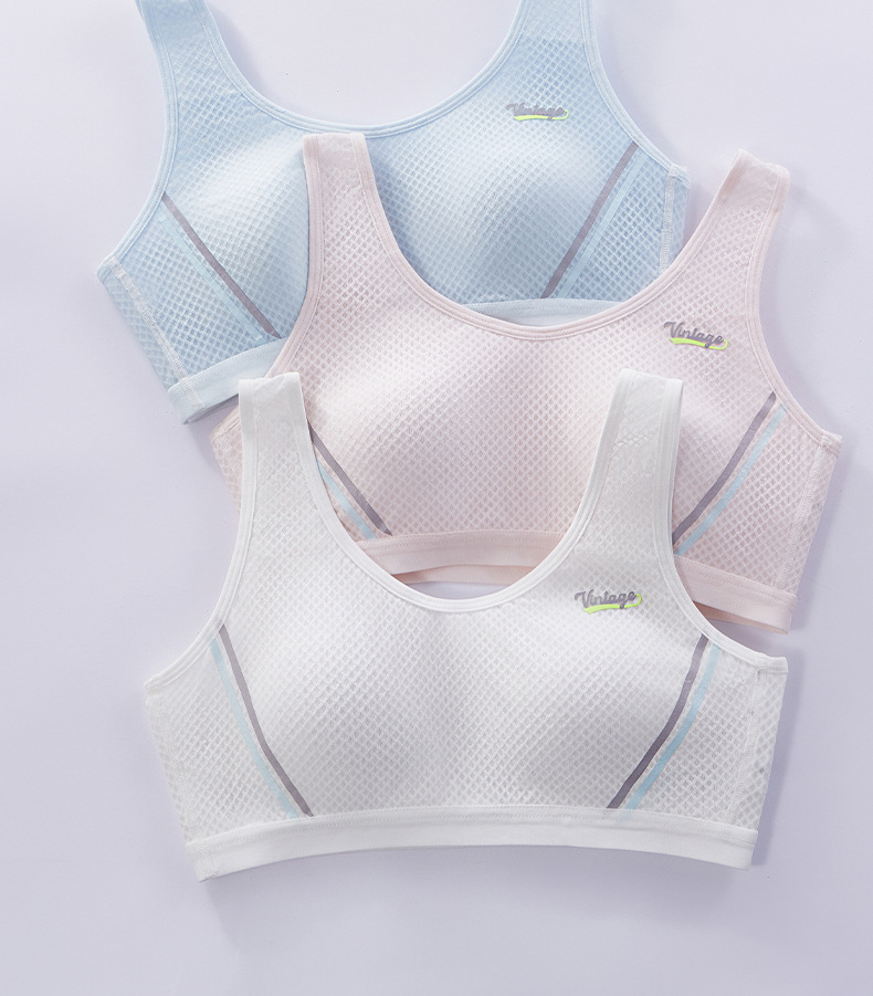 여름용 메쉬 통기성 방진 조끼형 브라, 청소년 초등학생 고등학생 고정컵 스포츠 브라 (패드 포함)
