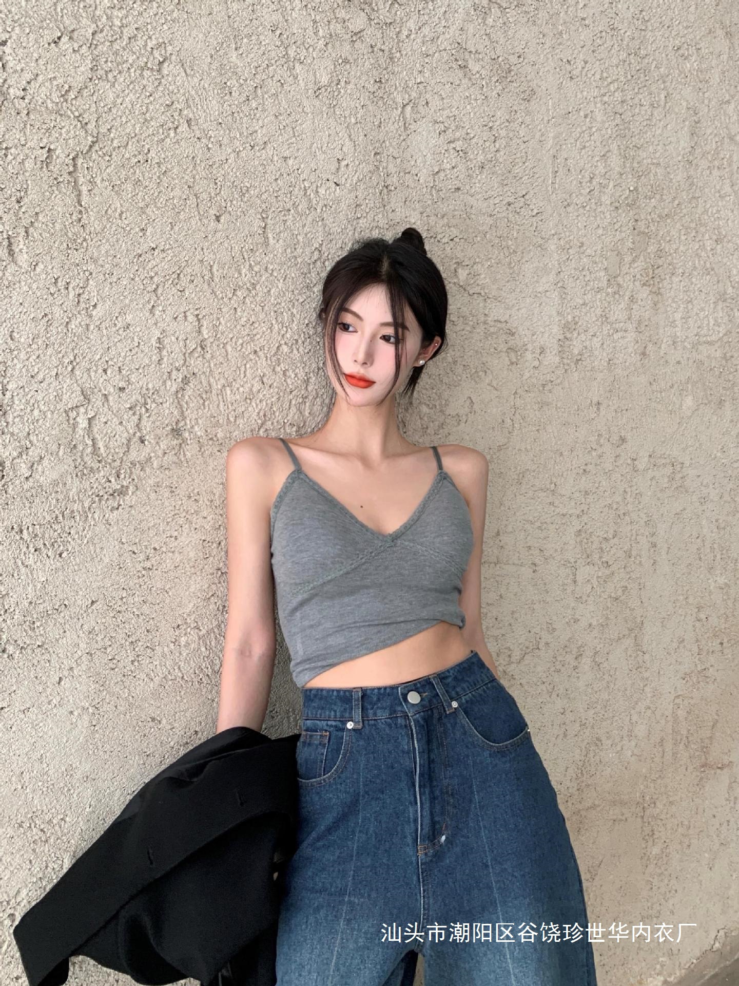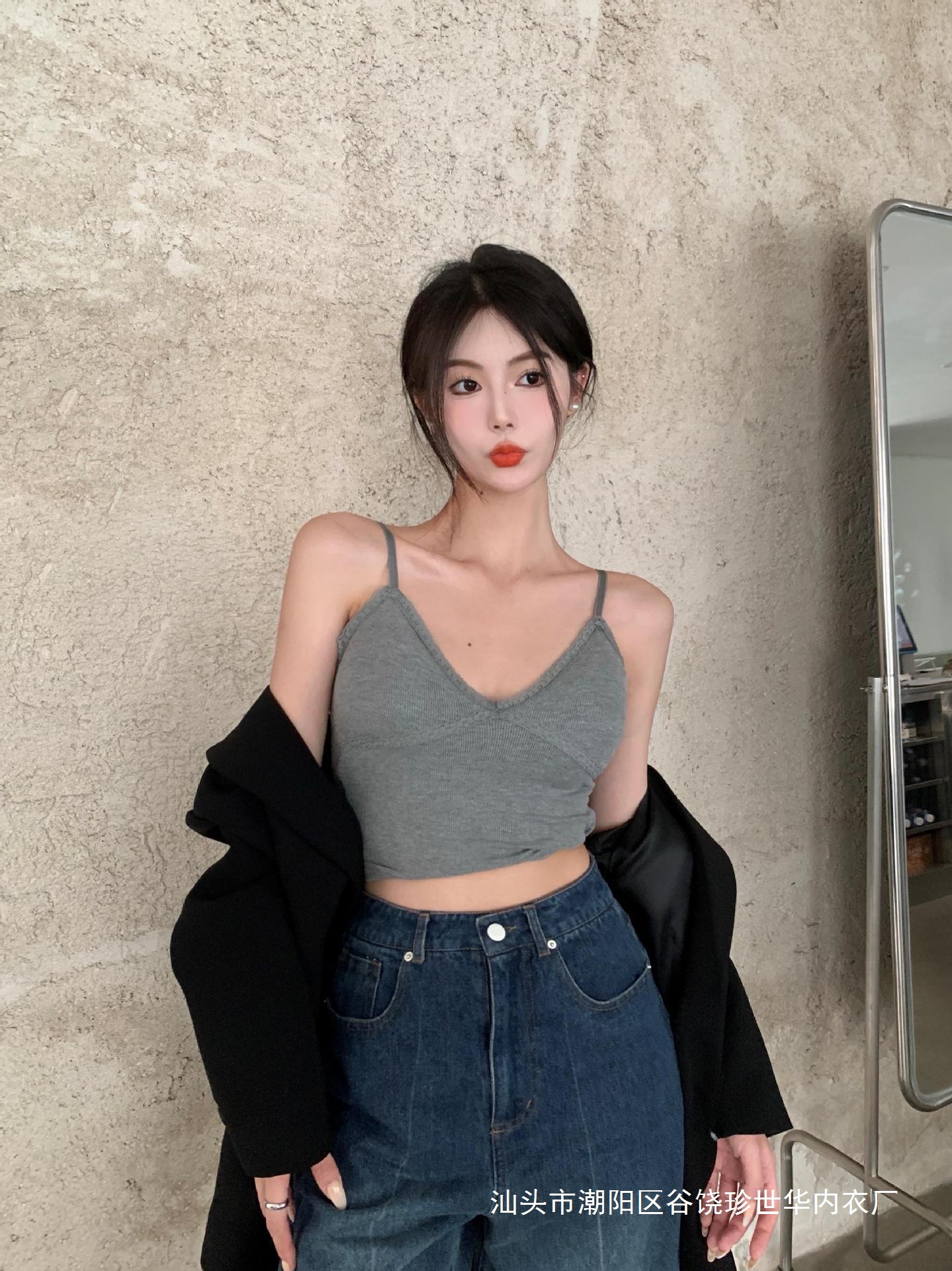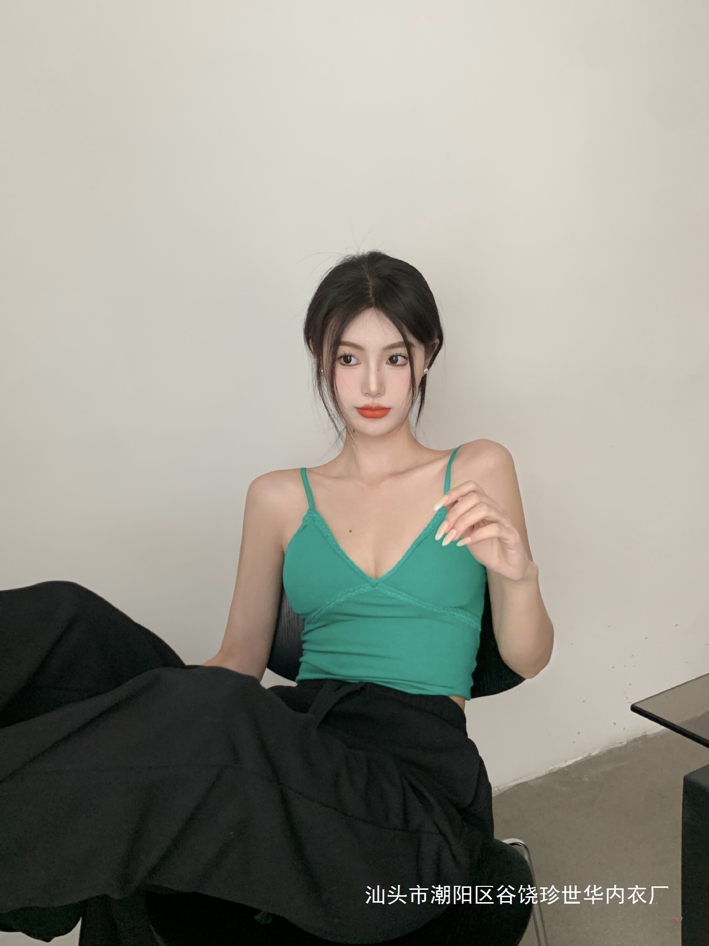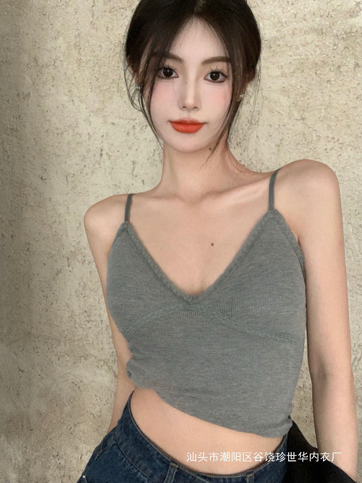 7533 # Real Shot Summer in Korean Joker V Neck with Chest Pad Design Camisole Jacket Tide