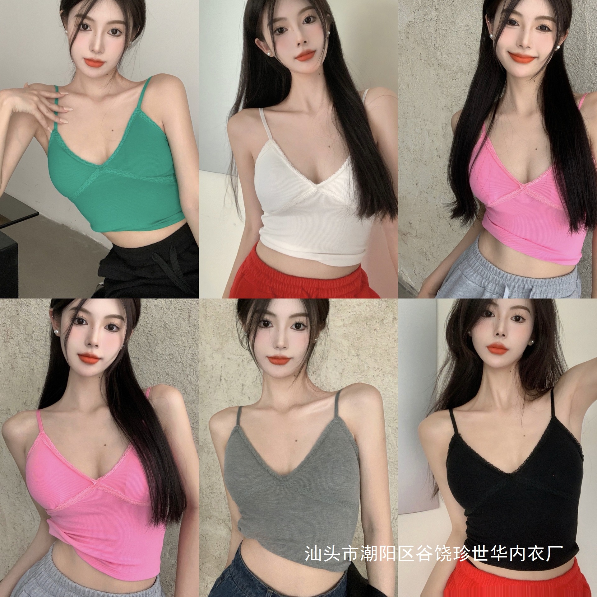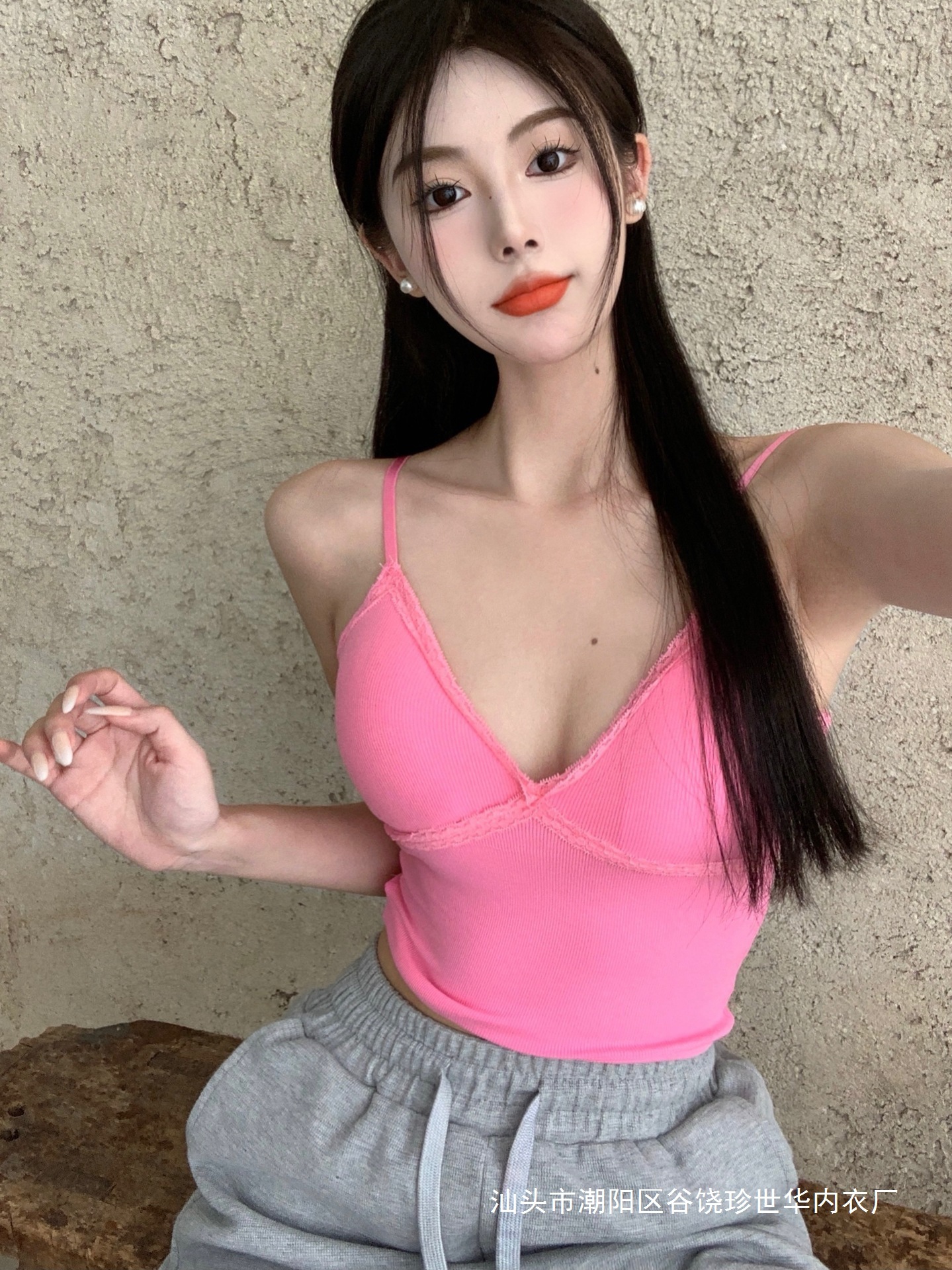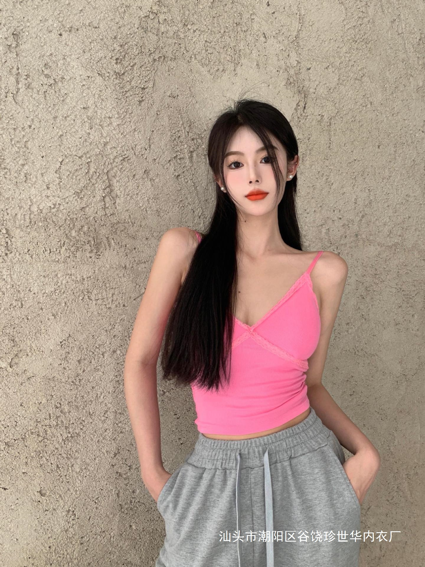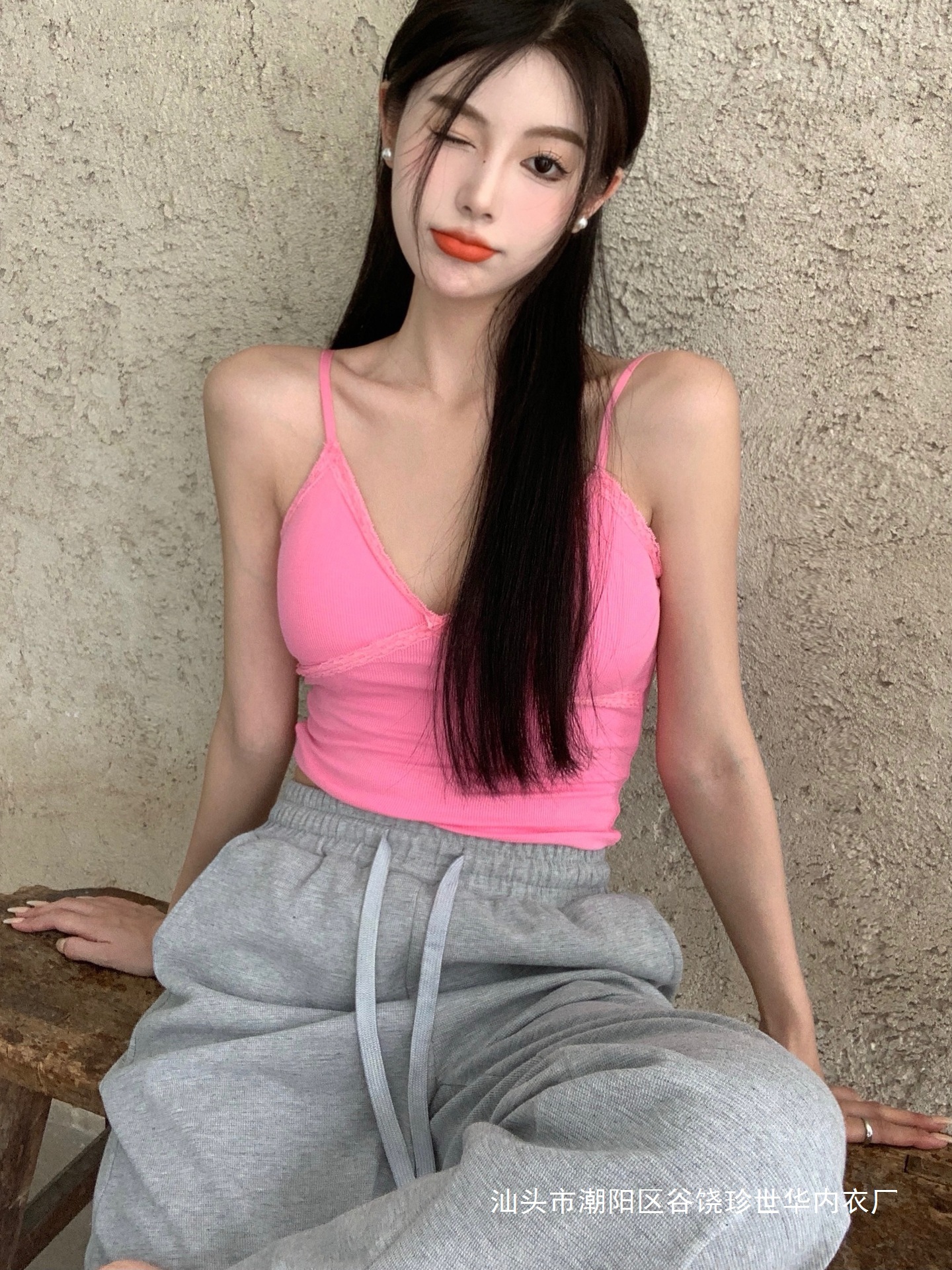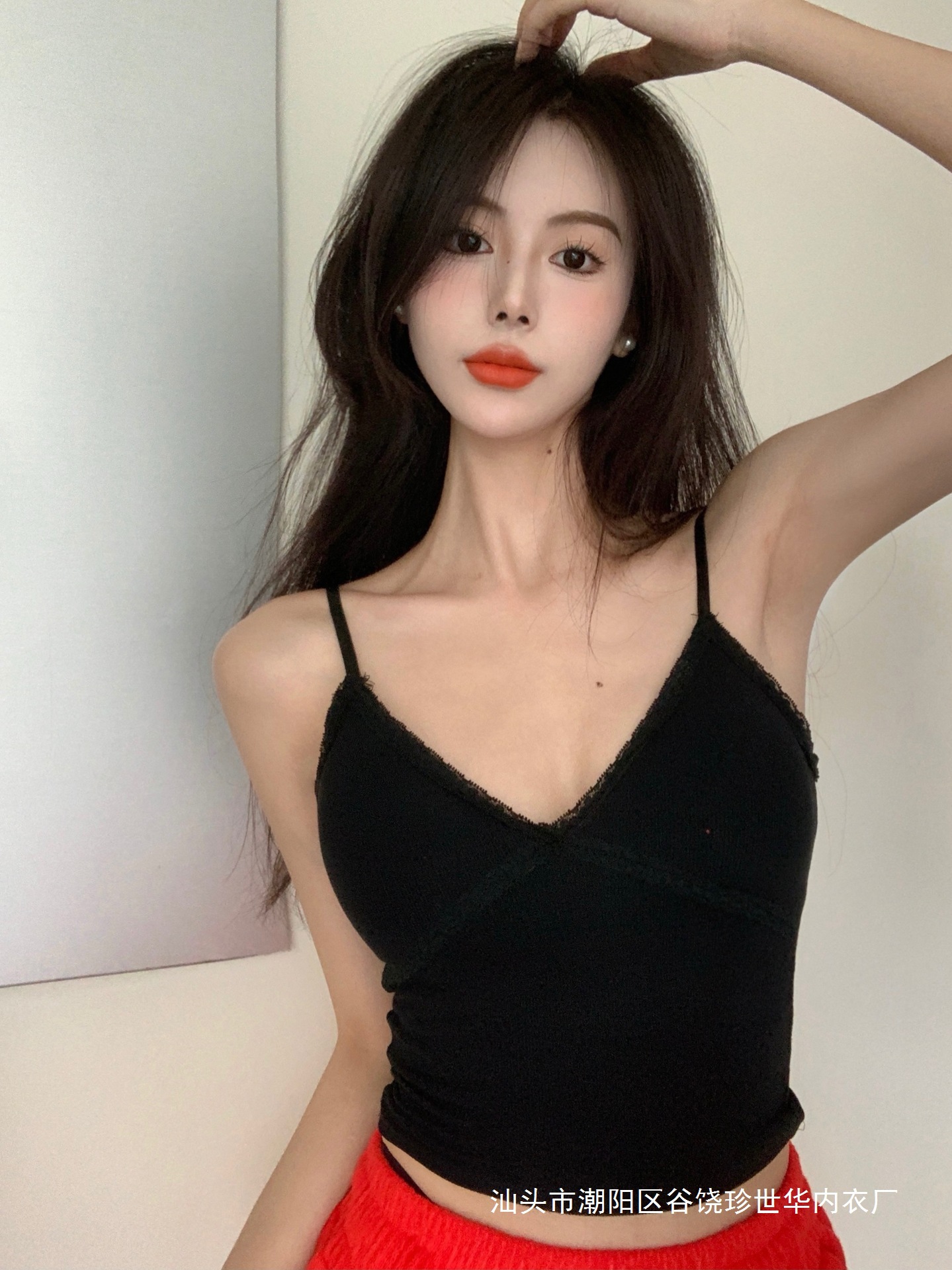 7533 # Real Shot Summer in Korean Joker V Neck with Chest Pad Design Camisole Jacket Tide