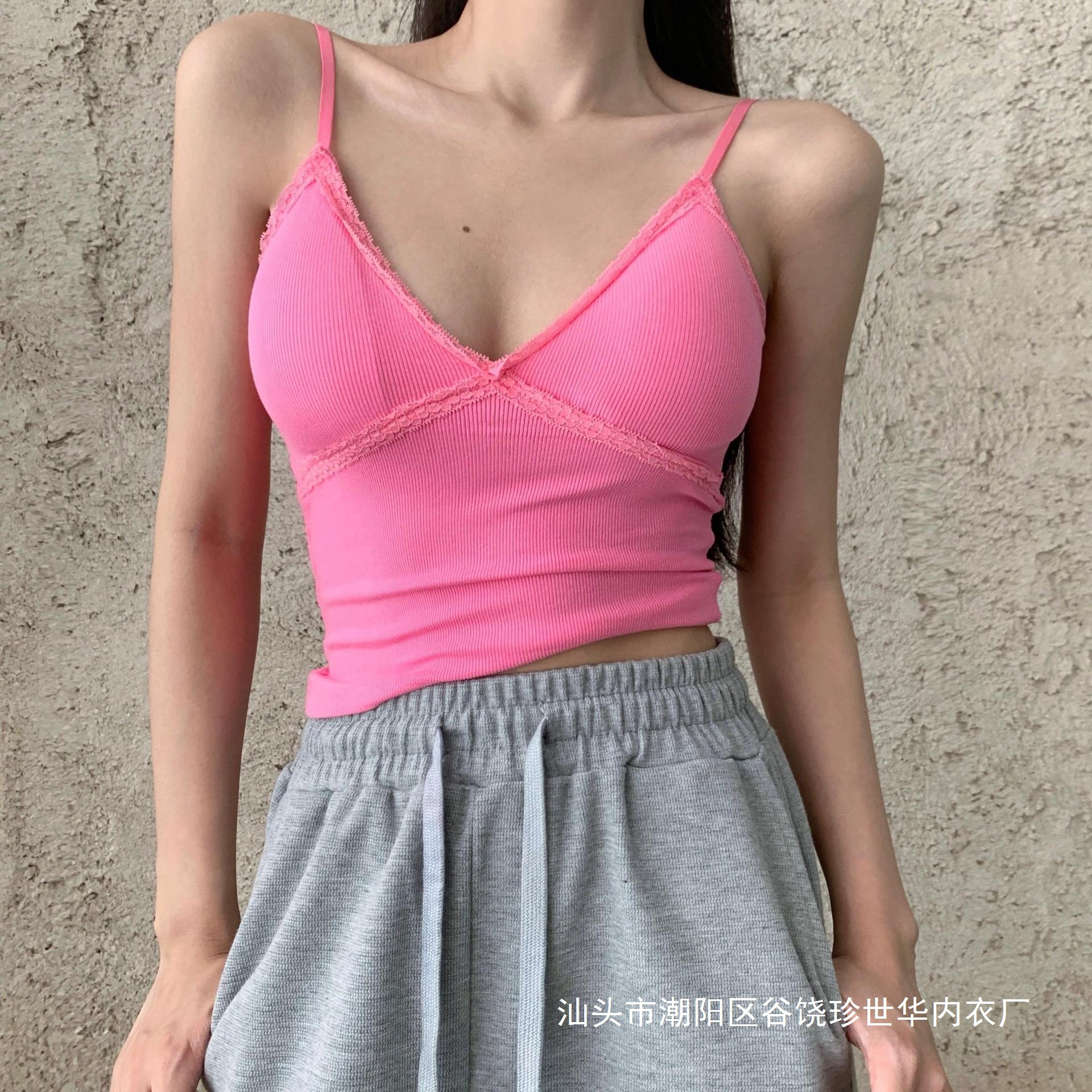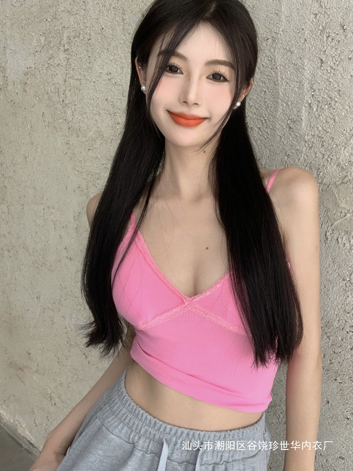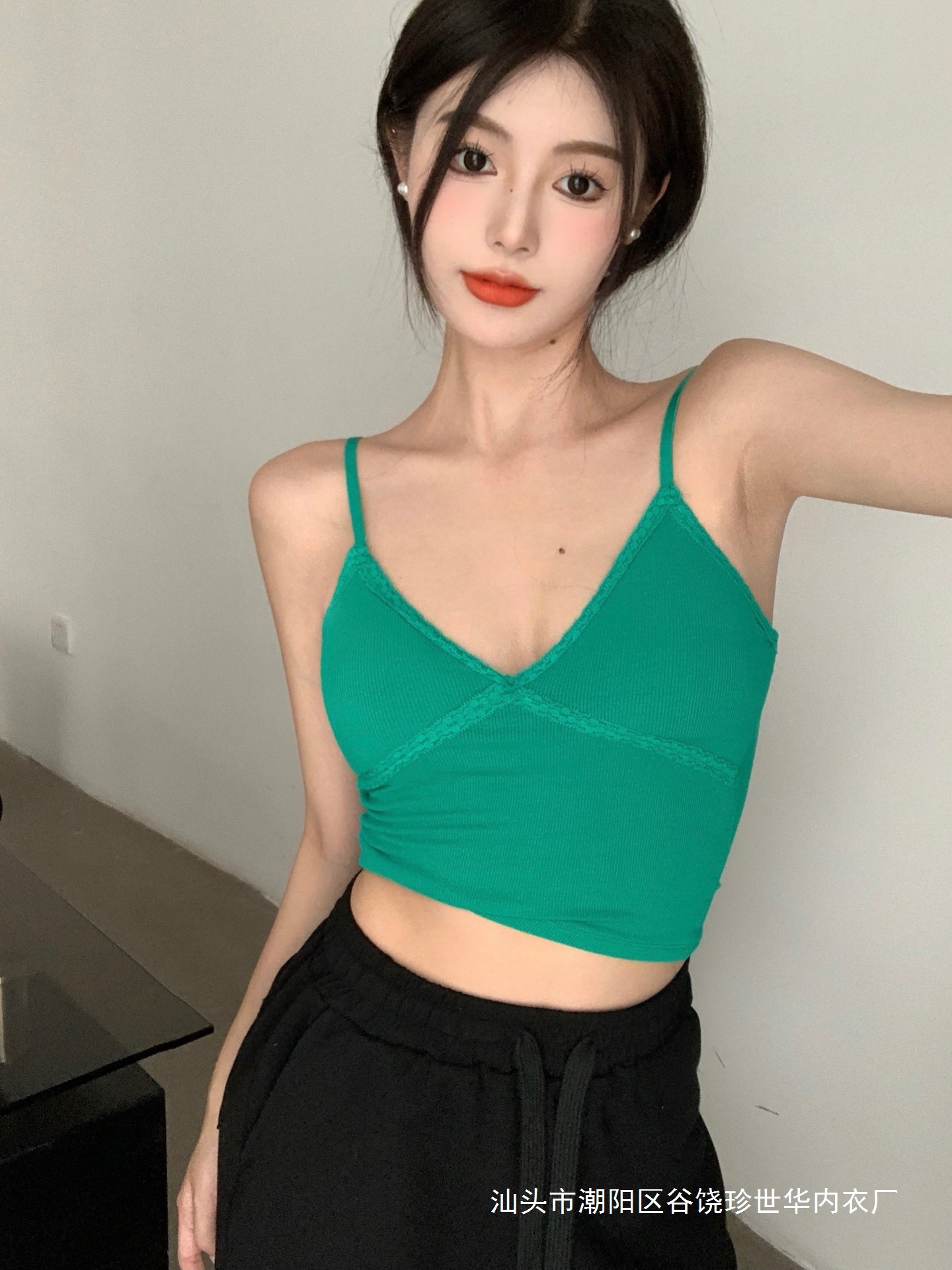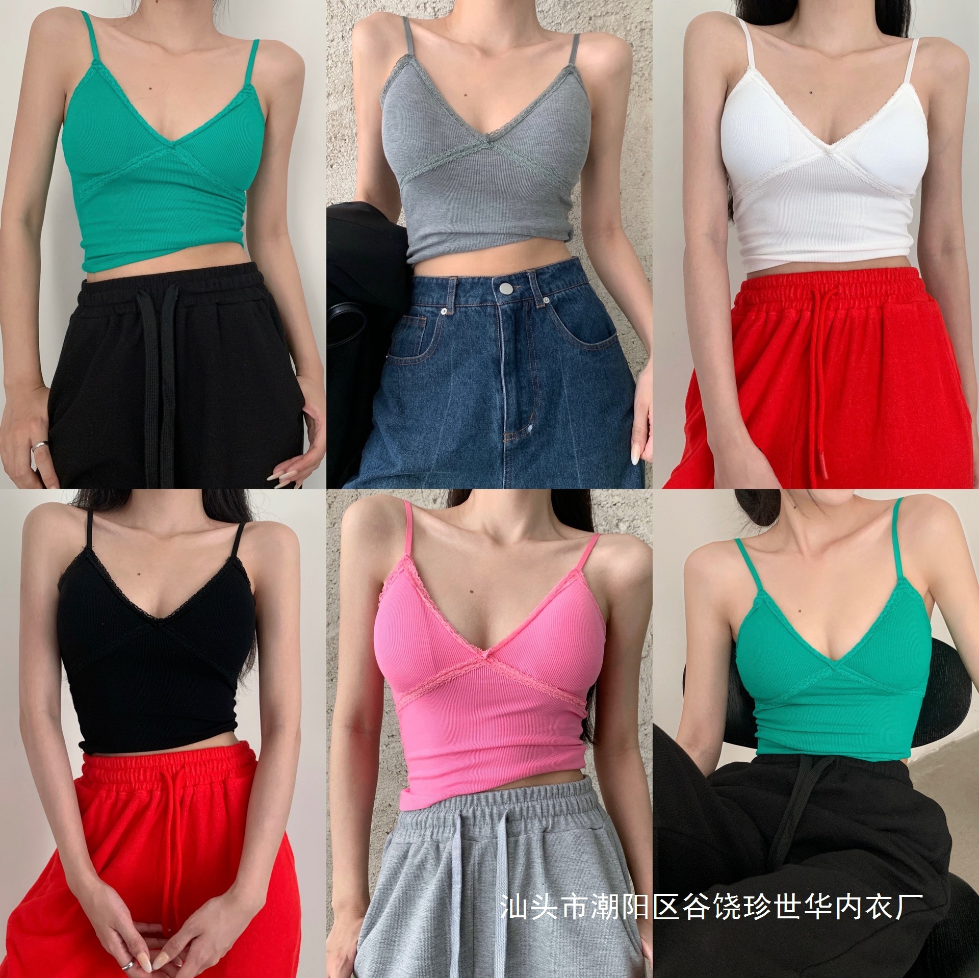 7533 # Real Shot Summer in Korean Joker V Neck with Chest Pad Design Camisole Jacket Tide