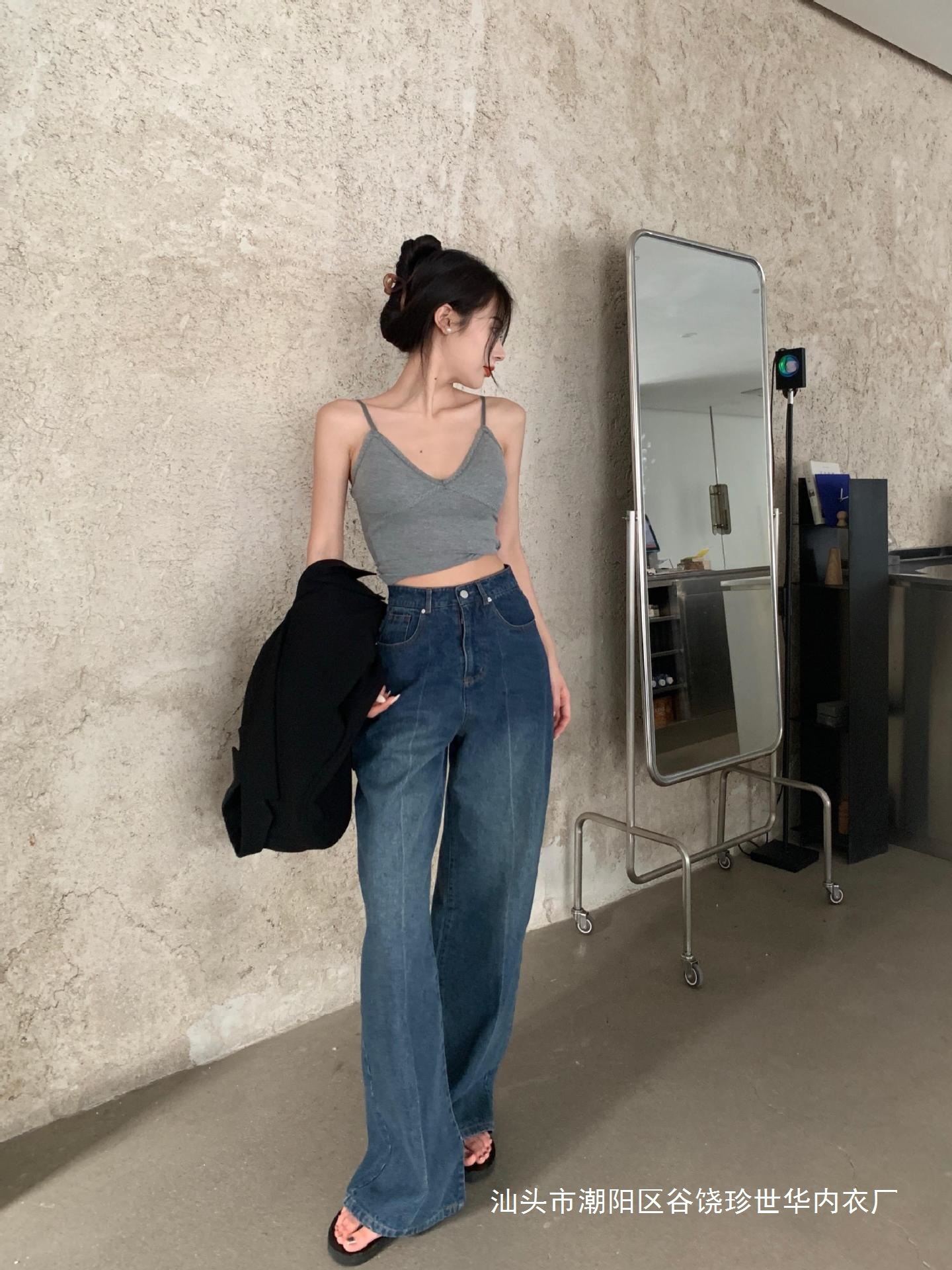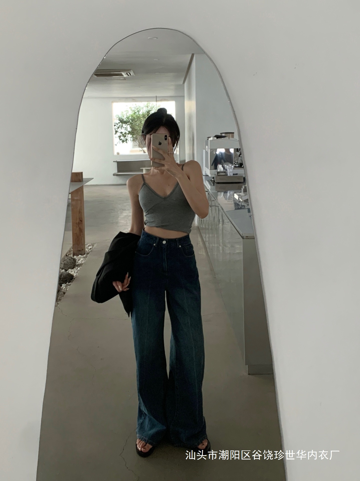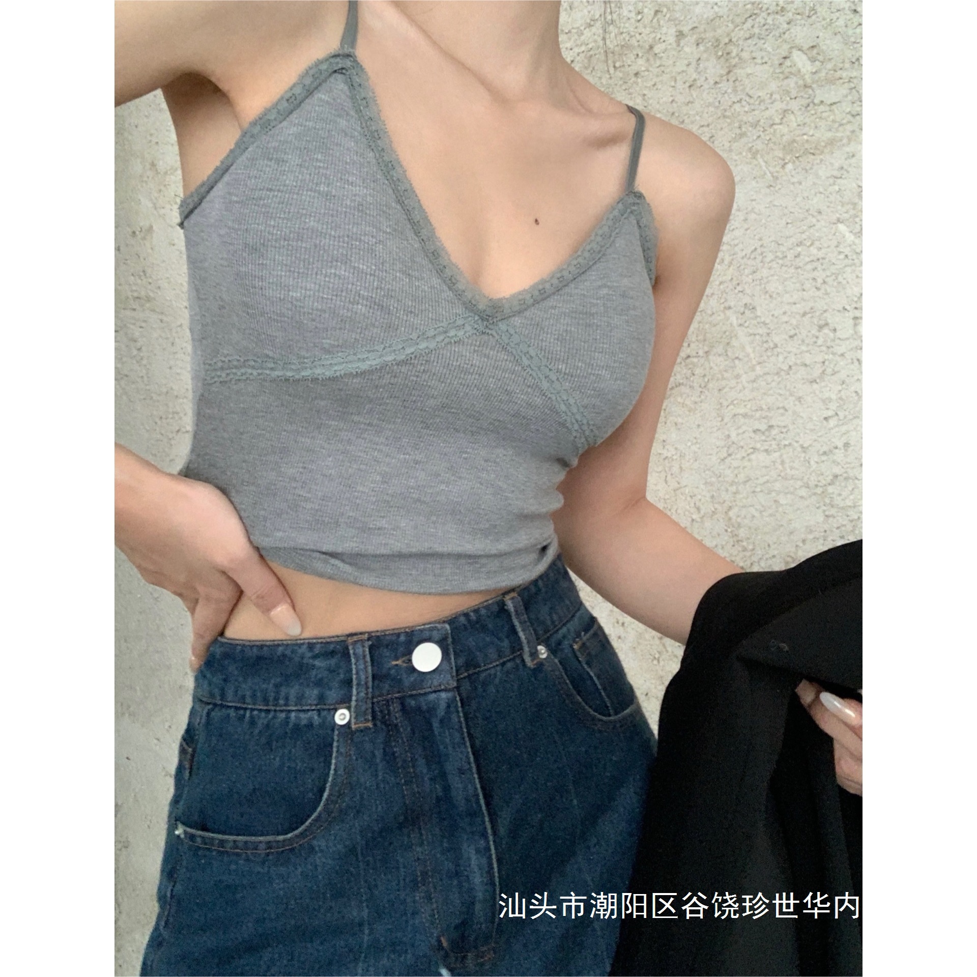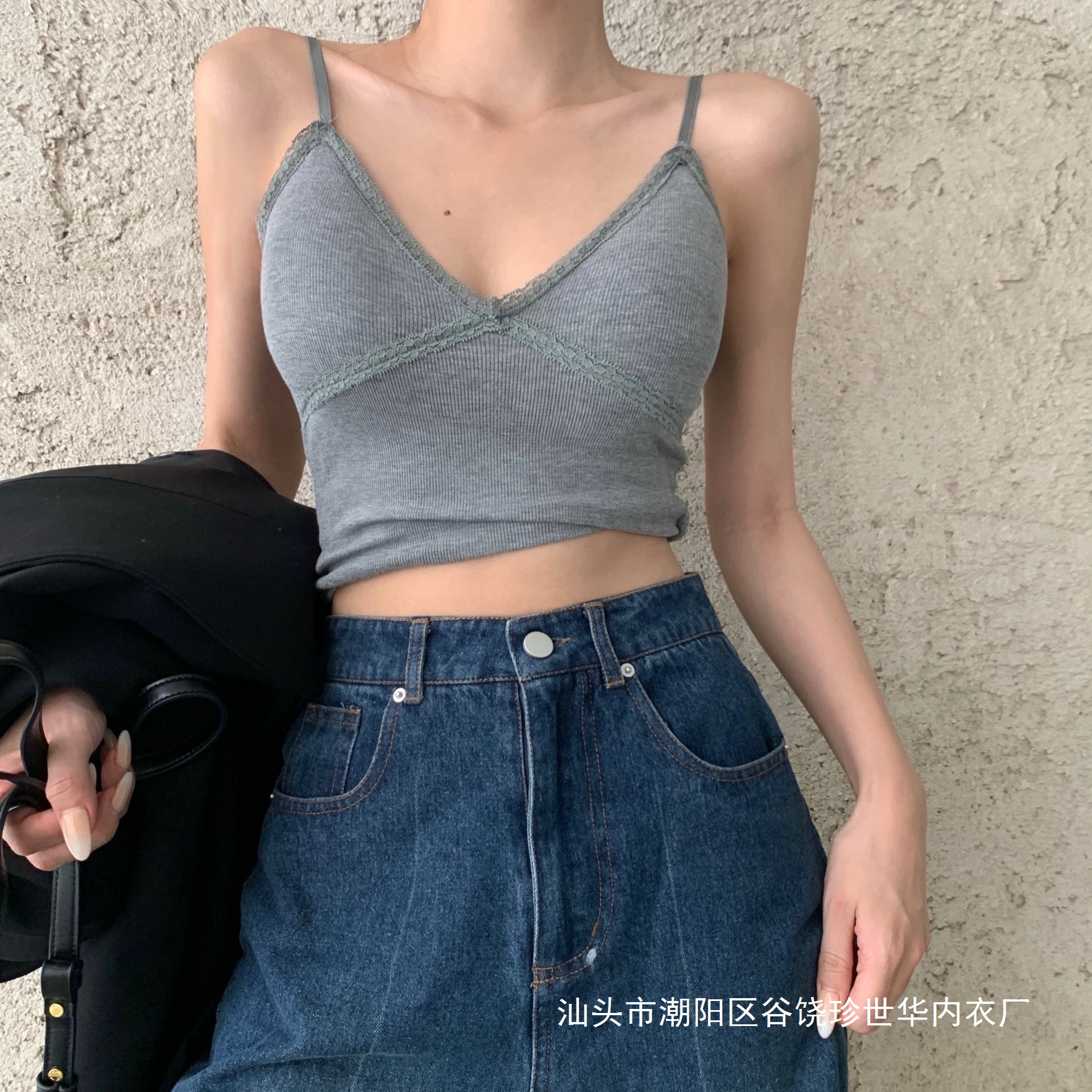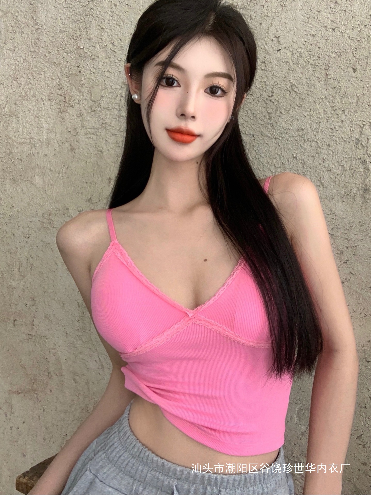 7533 # Real Shot Summer in Korean Joker V Neck with Chest Pad Design Camisole Jacket Tide