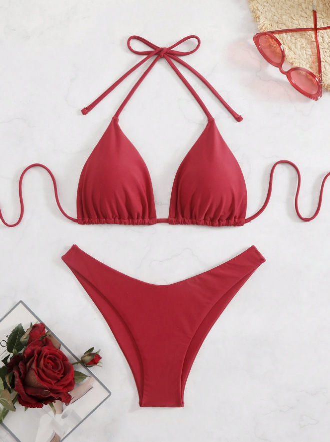 유럽 및 미국 해외직구 아마존 단색 나일론 비키니 수영복 여성 섹시 타이트 백리스 스플릿형 고급 수영복스토어 가기