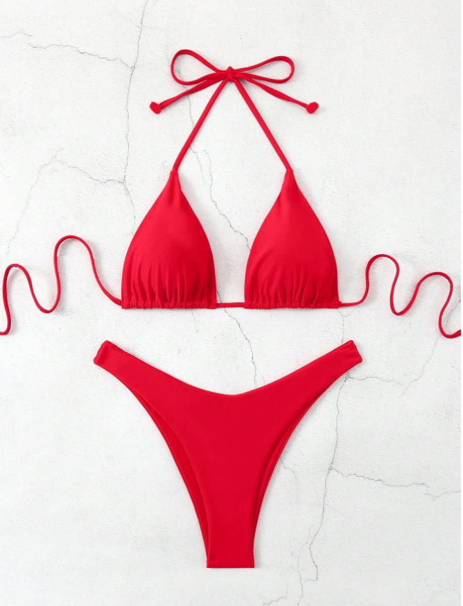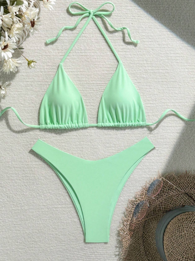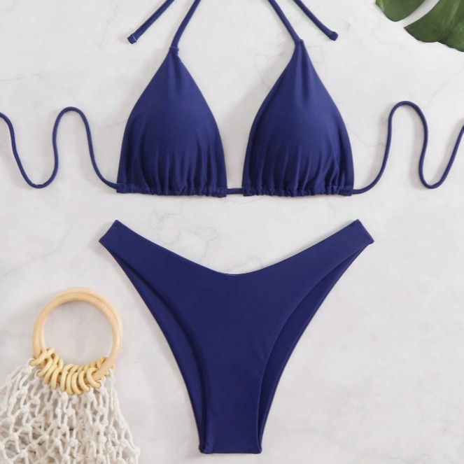 유럽 및 미국 해외직구 아마존 단색 나일론 비키니 수영복 여성 섹시 타이트 백리스 스플릿형 고급 수영복