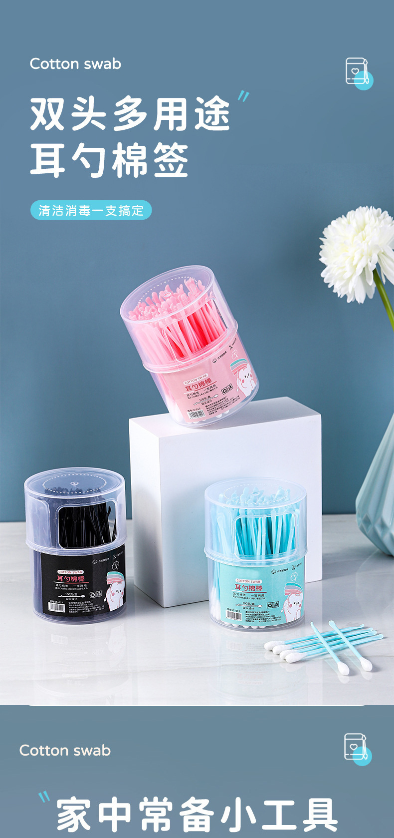 양두 면 면봉 귀를 당기는 화장품 가정용 면 스틱 나무 스틱 일회용 작은 머리 얇은 뾰족한 귀 숟가락 청소 면 스틱스토어 가기