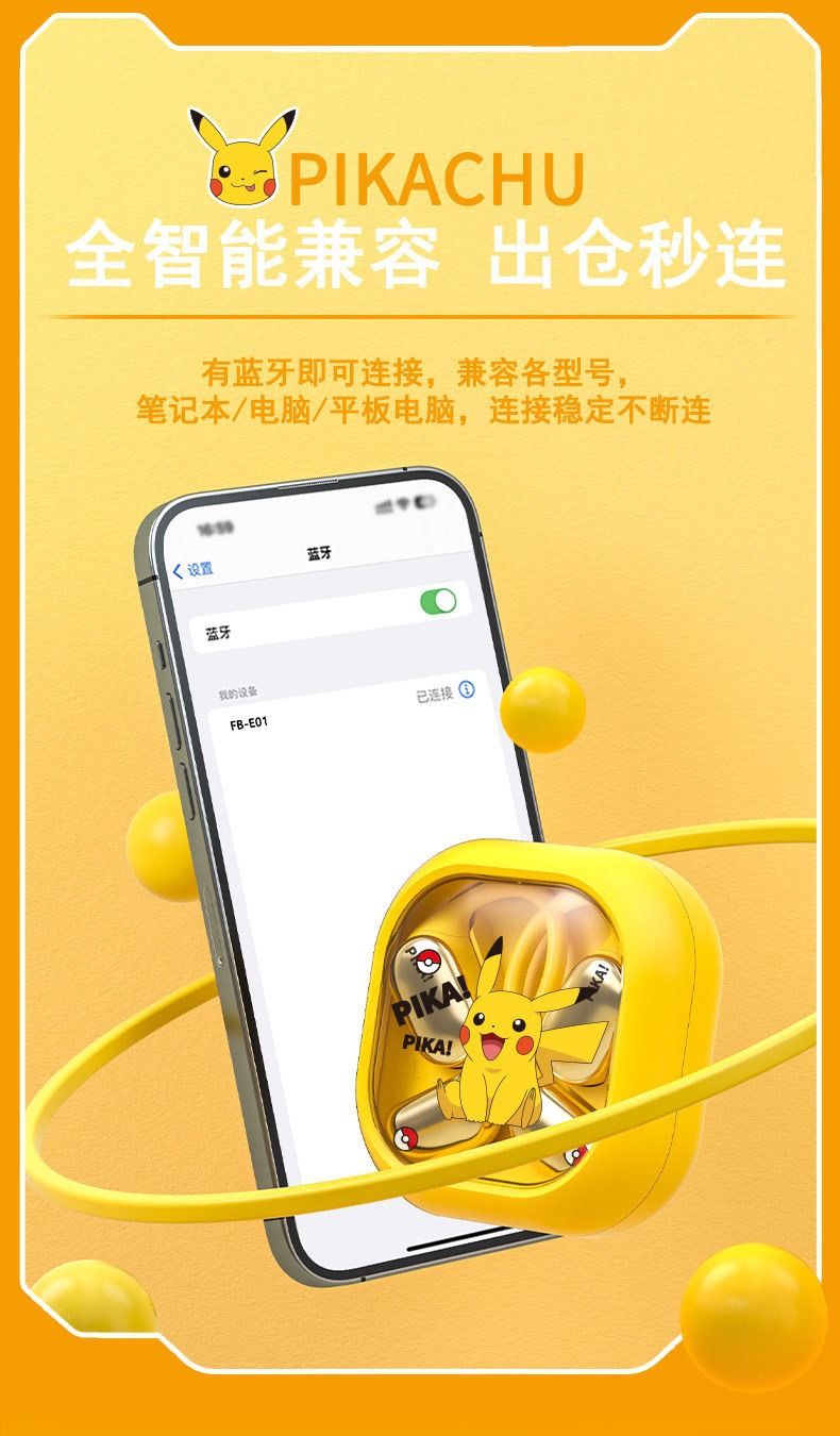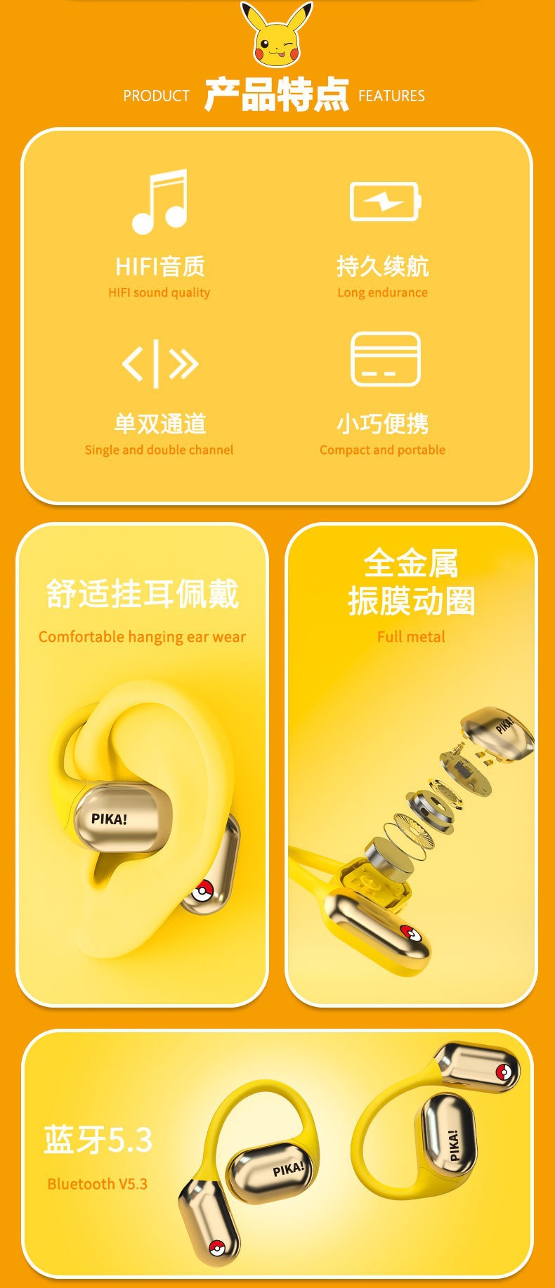 POKEMON/BaoKemeng 공동 FB-E01 귀 매달린 스포츠 어린이를위한 낮은 대기 시간 블루투스 헤드셋스토어 가기