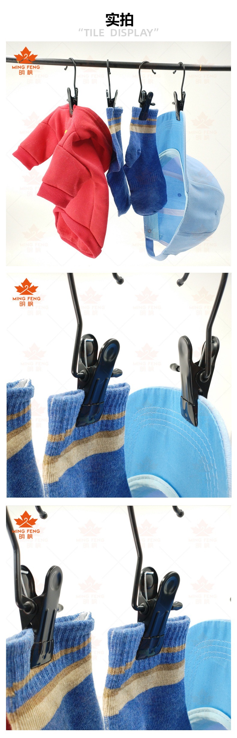 다목적 전기영동 검정색 3자 클립 스테인레스 스틸 후크 이동식 클립 미끄럼 방지 실크 스카프 양말 의류 모자 도매