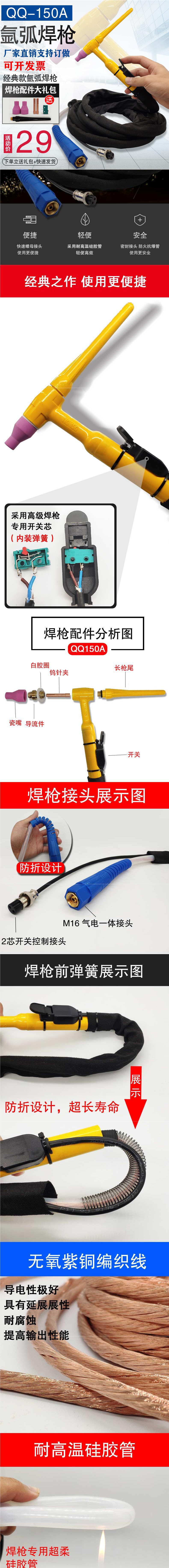 -150A 아르곤 아크 용접 총 더블 봄 국가 표준 아르곤 아크 용접 핸들 라인 WS/TIG 160 250 용접 기계 액세서리 어셈블리
