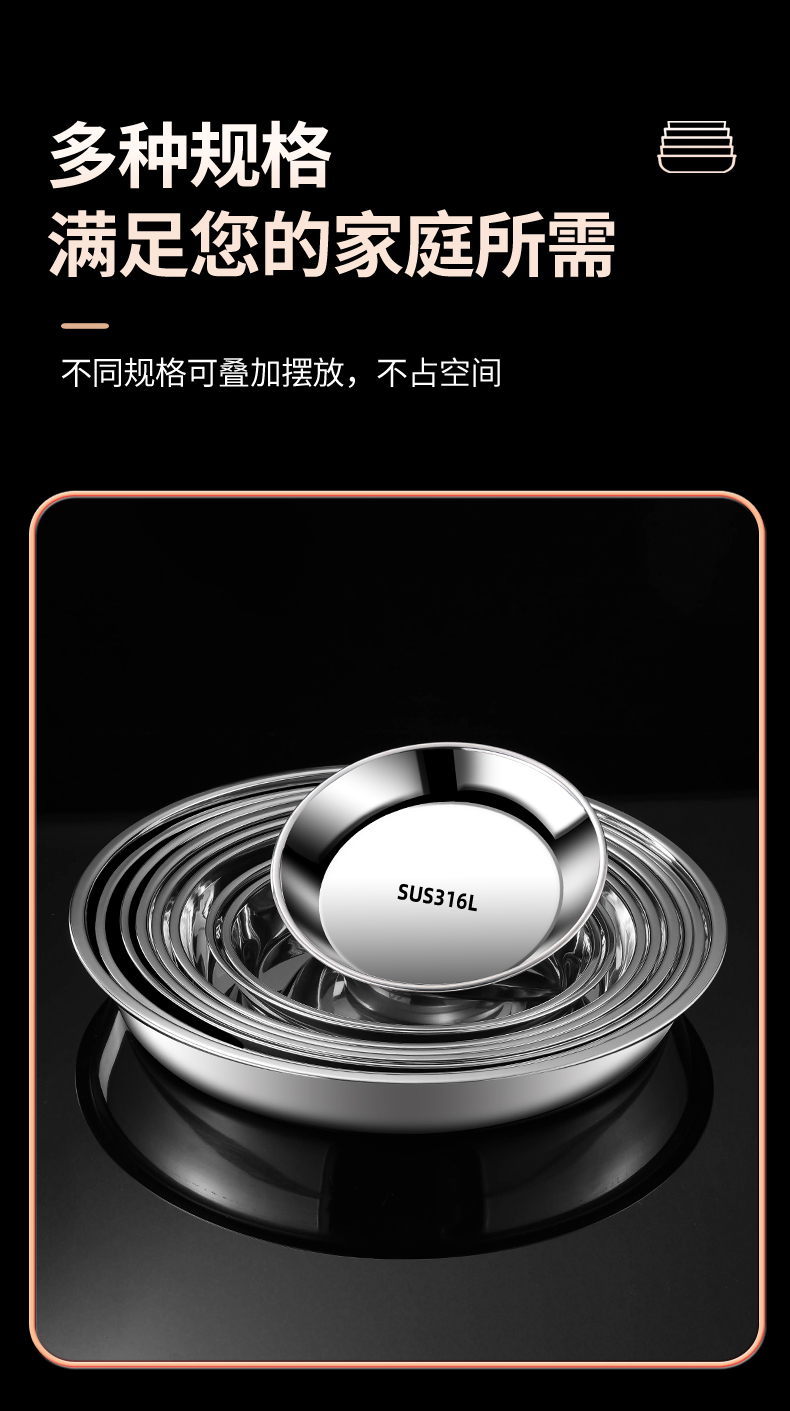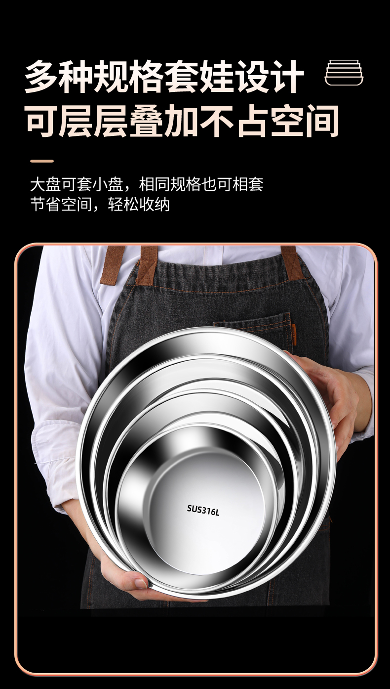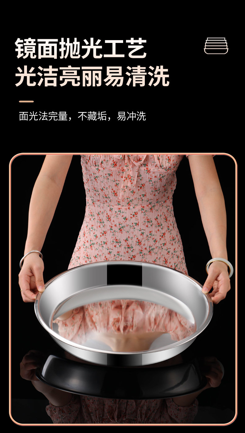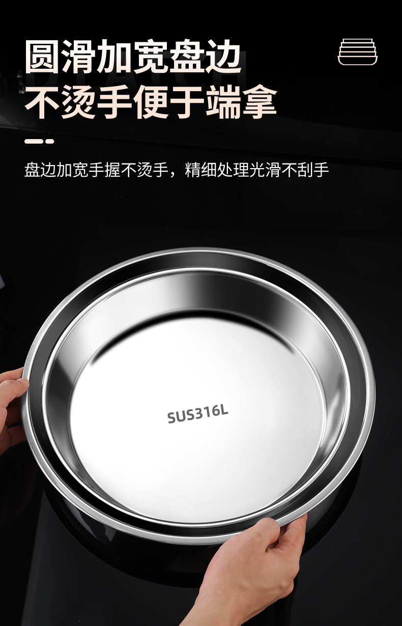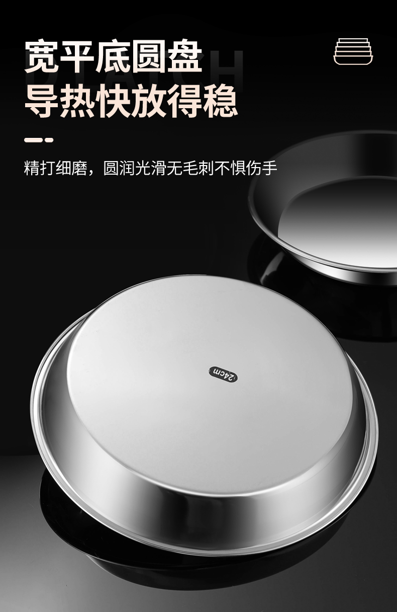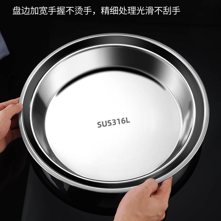 스테인레스 스틸 플레이트 디스크 304 식품 등급 편평한 바닥 316 가정용 접시 두껍고 깊어진 트레이 수축 플레이트 찐 케이크 플레이트스토어 가기