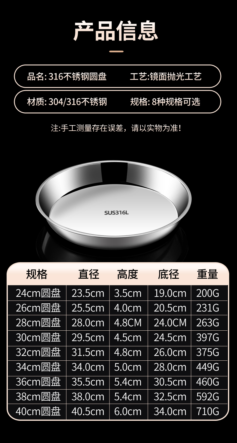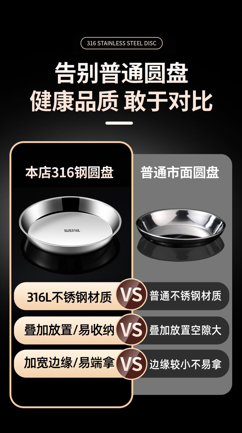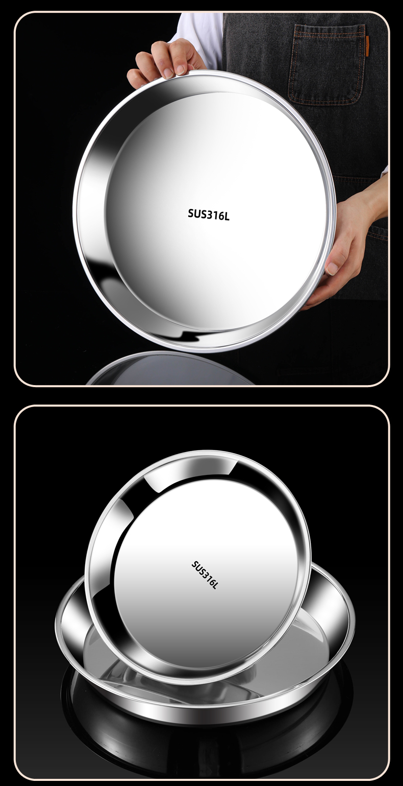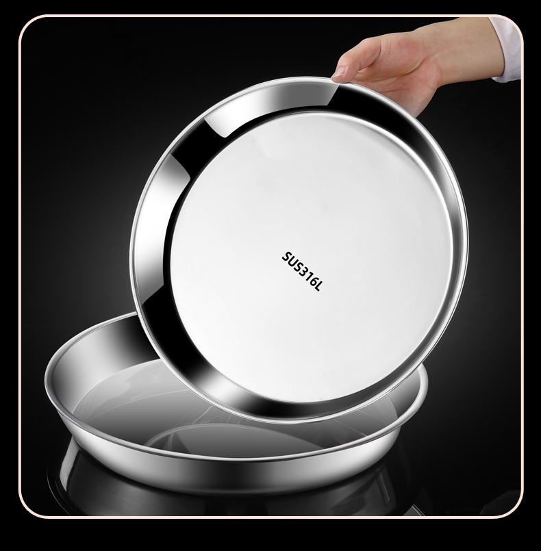 스테인레스 스틸 플레이트 디스크 304 식품 등급 편평한 바닥 316 가정용 접시 두껍고 깊어진 트레이 수축 플레이트 찐 케이크 플레이트