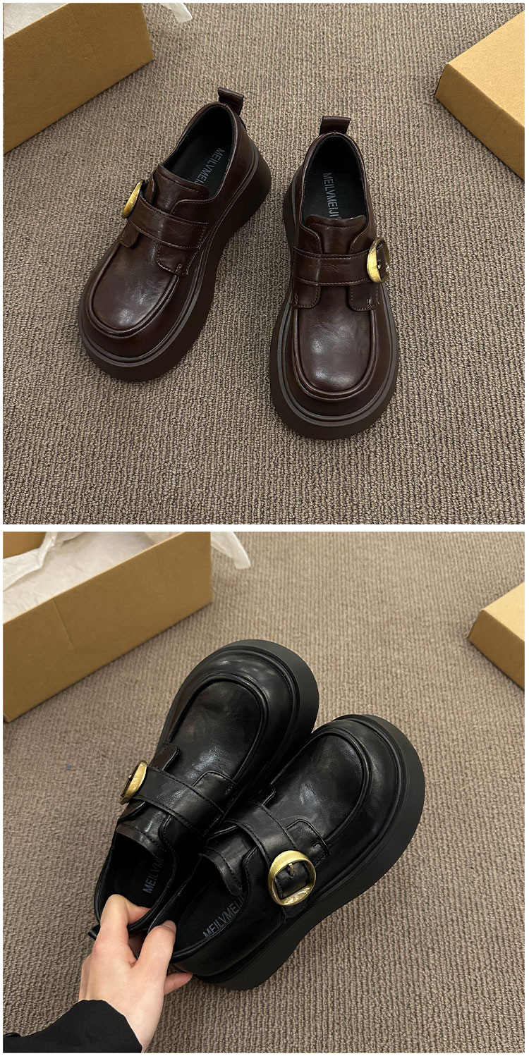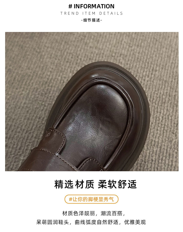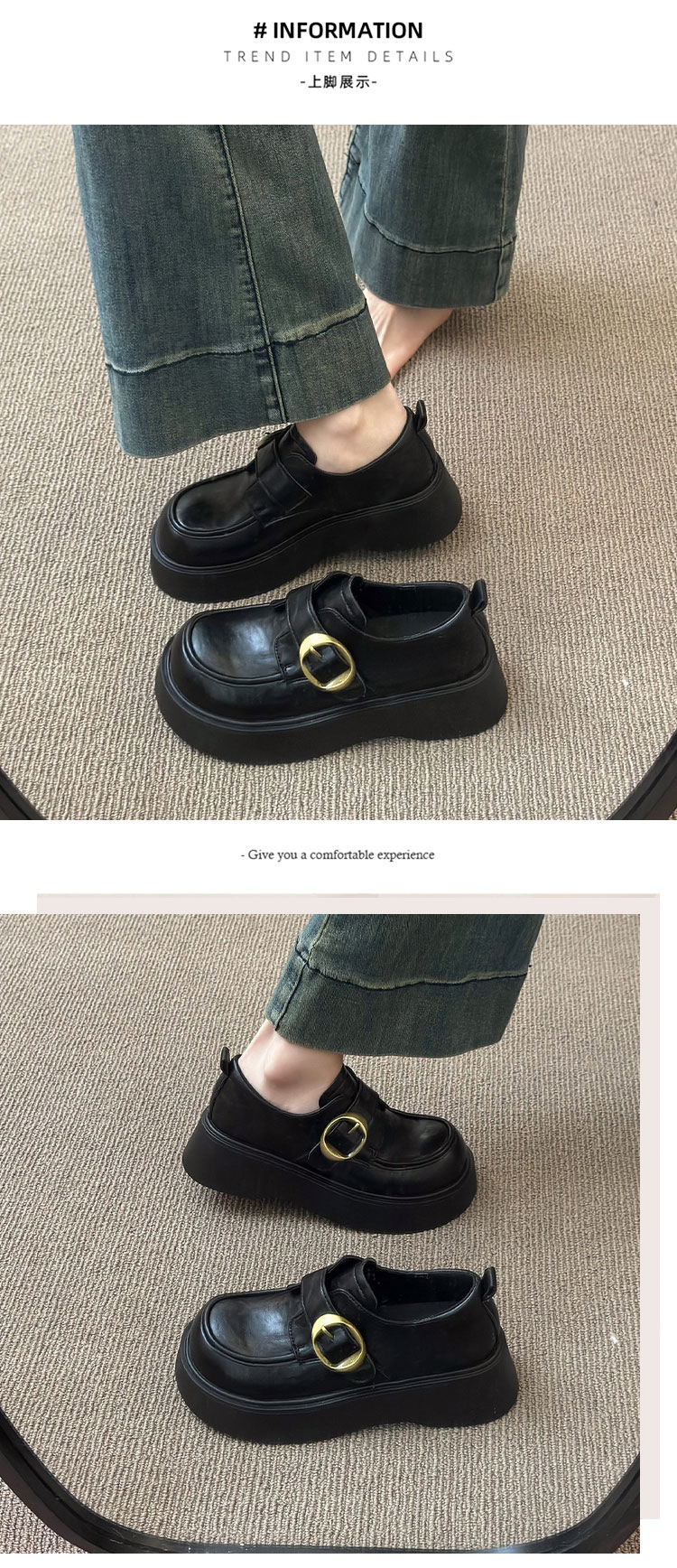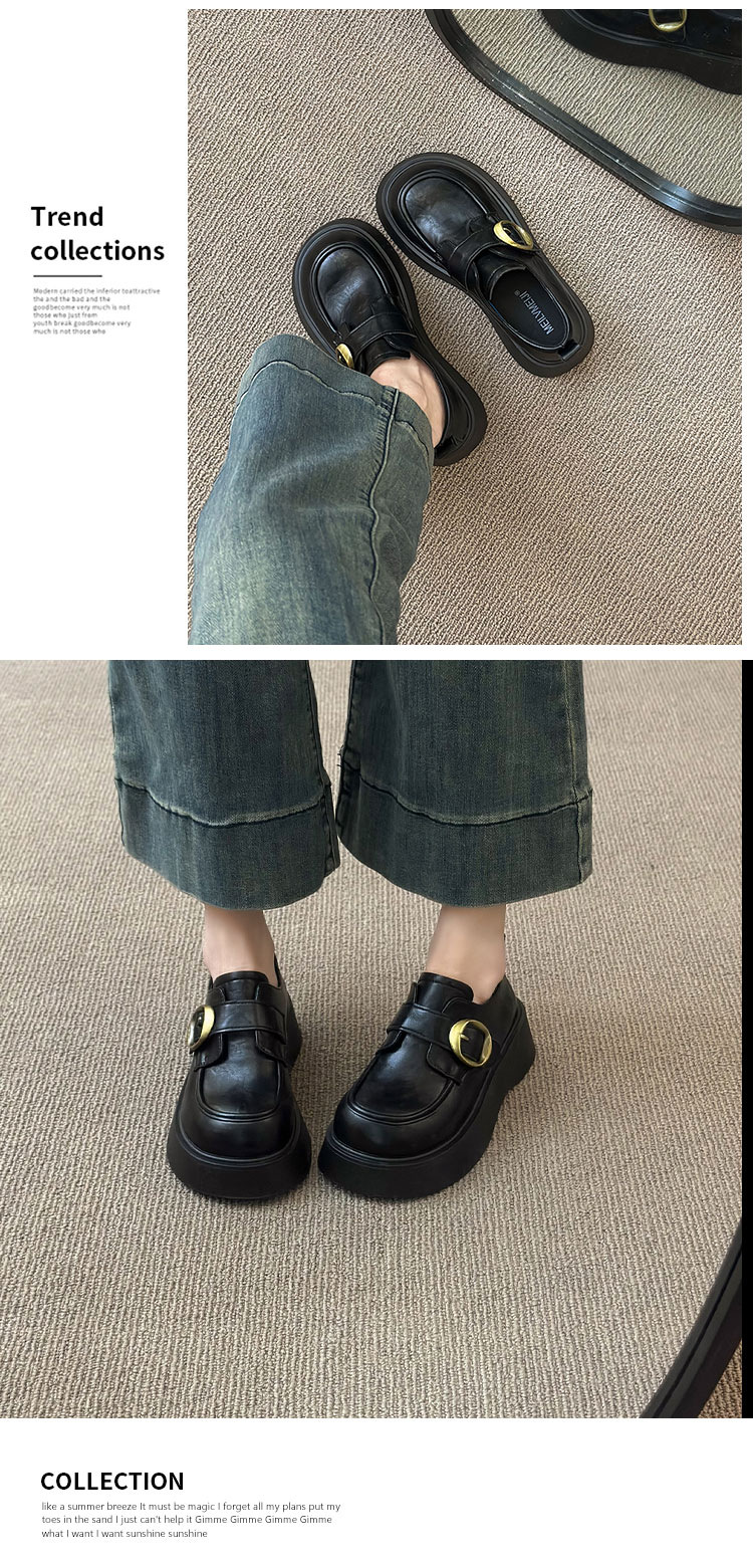 블랙 라운드 헤드 고급 소형 가죽 신발 여성의 2025 봄 새로운 플랫폼 신발 두꺼운 밑창 달콤한 싱글 레이어 신발 로퍼스토어 가기