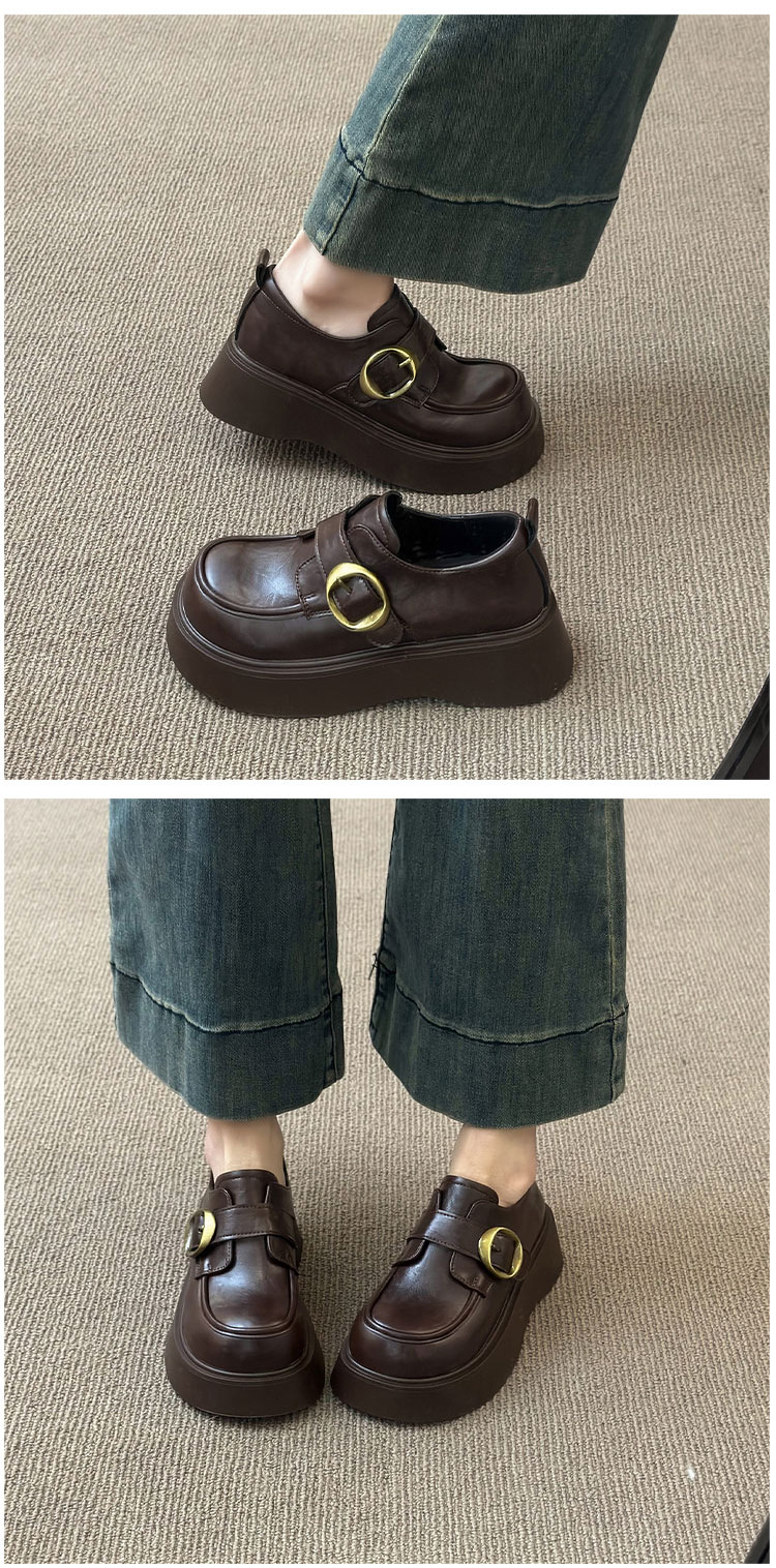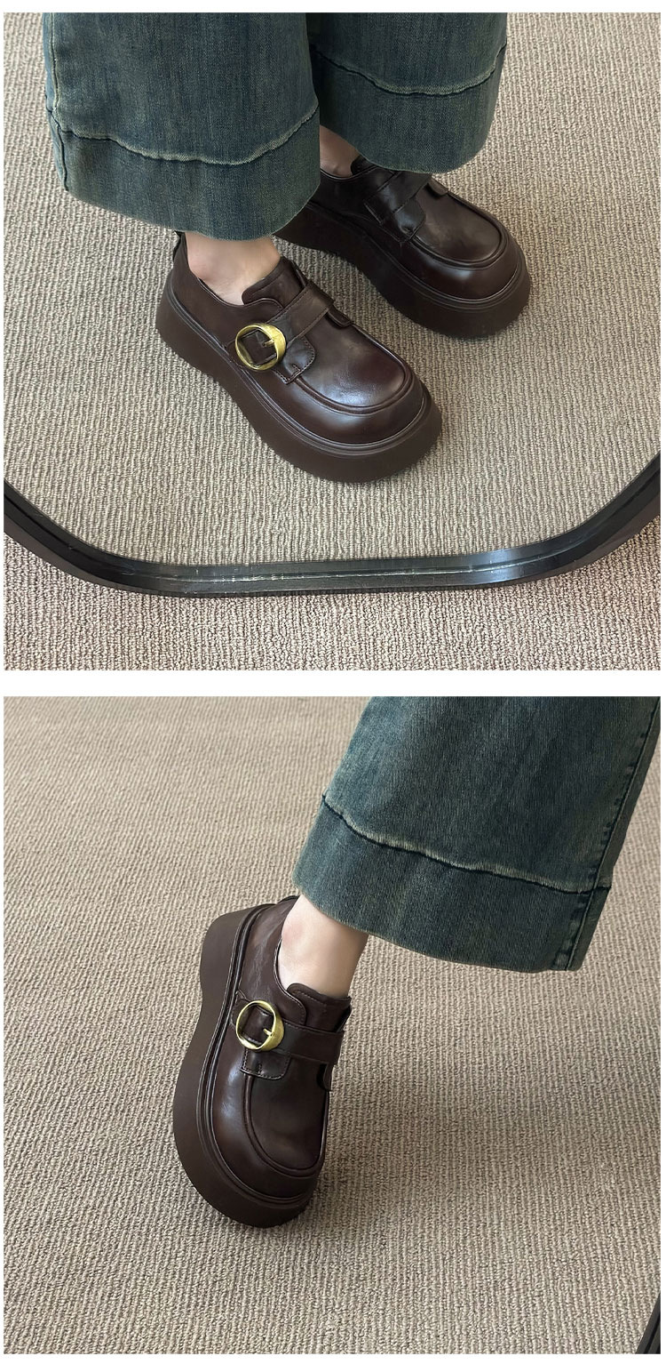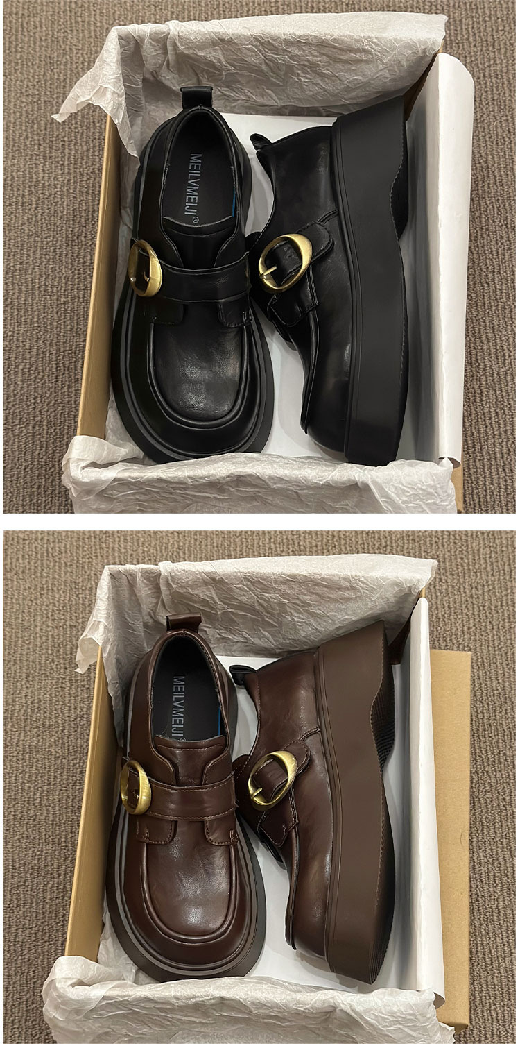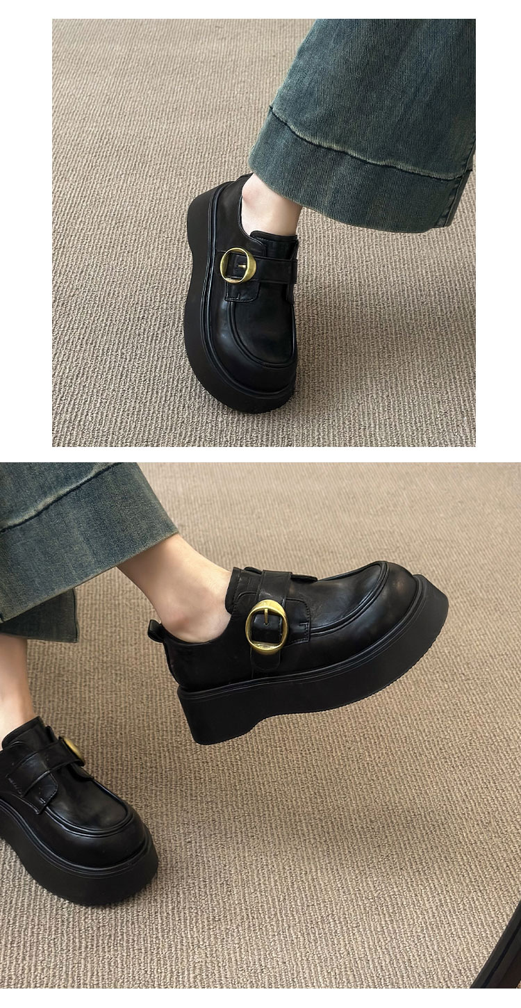 블랙 라운드 헤드 고급 소형 가죽 신발 여성의 2025 봄 새로운 플랫폼 신발 두꺼운 밑창 달콤한 싱글 레이어 신발 로퍼스토어 가기
