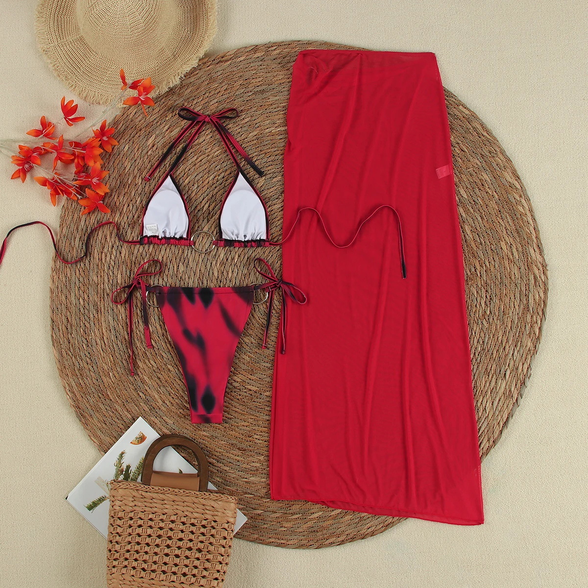 2025 새로운 유럽과 미국의 여성 그라디언트 3 조각 비키니 수영복 인쇄스토어 가기