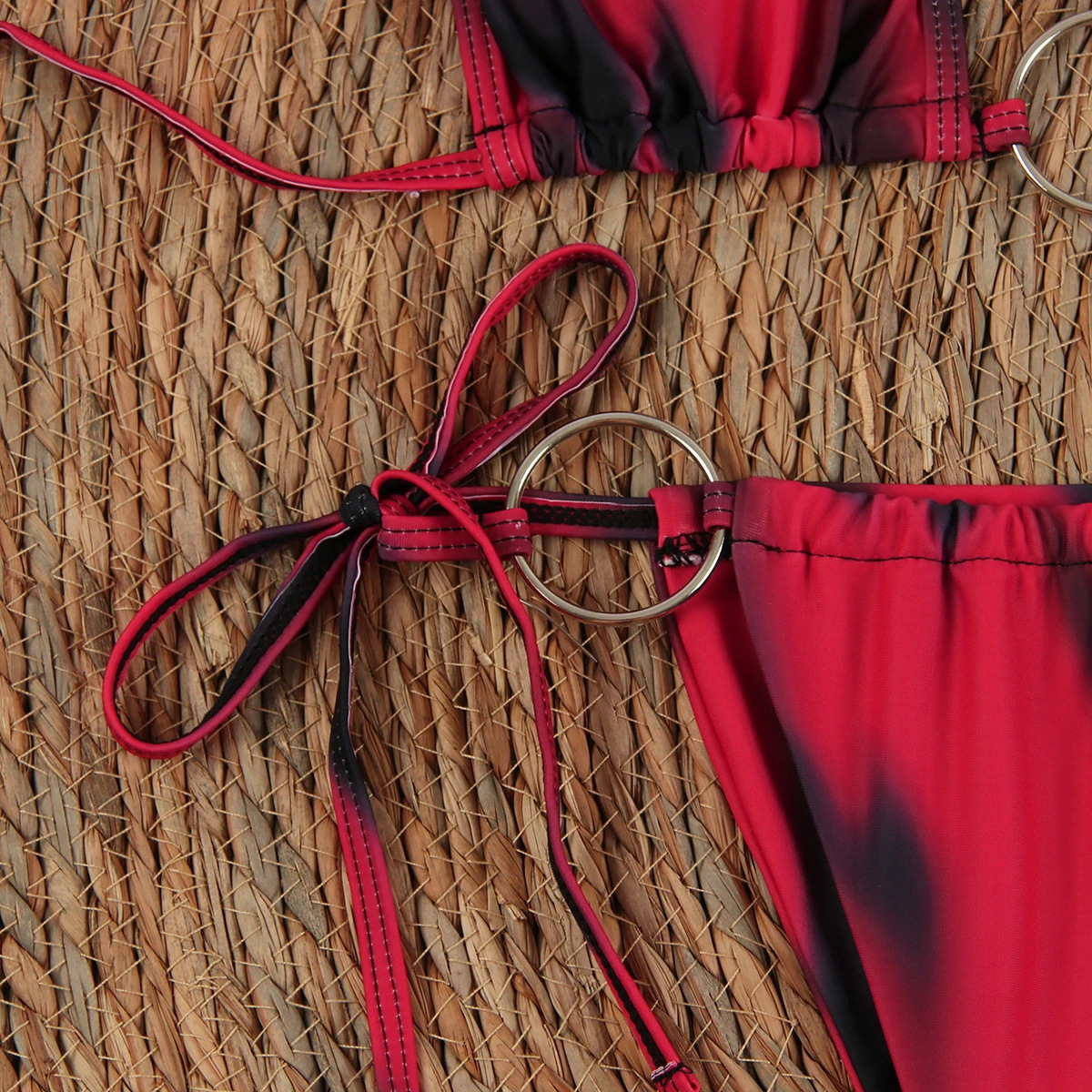 2025 새로운 유럽과 미국의 여성 그라디언트 3 조각 비키니 수영복 인쇄