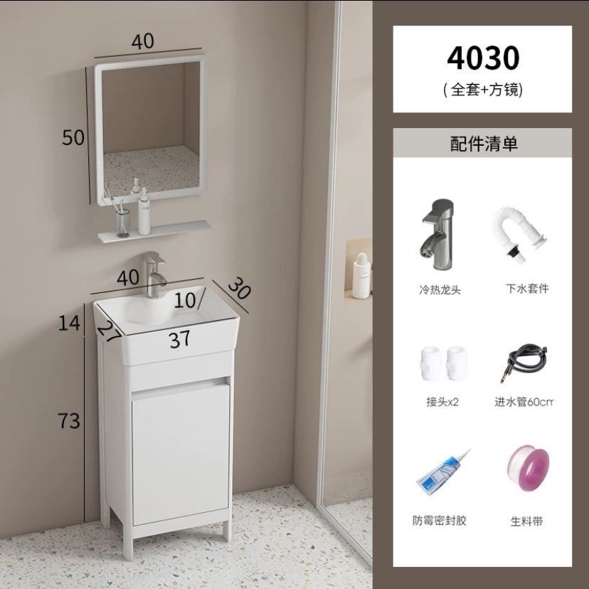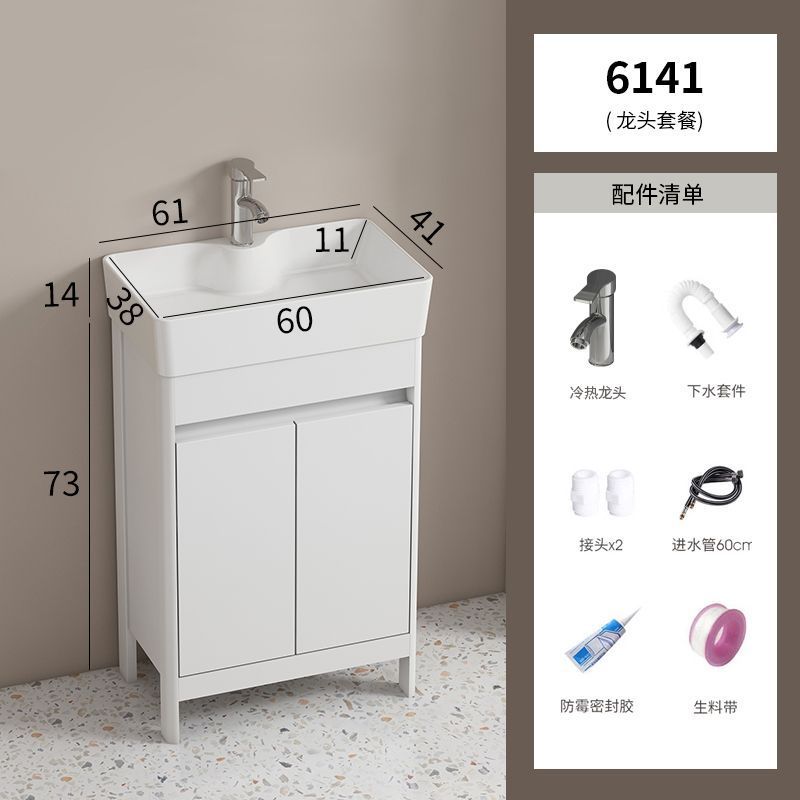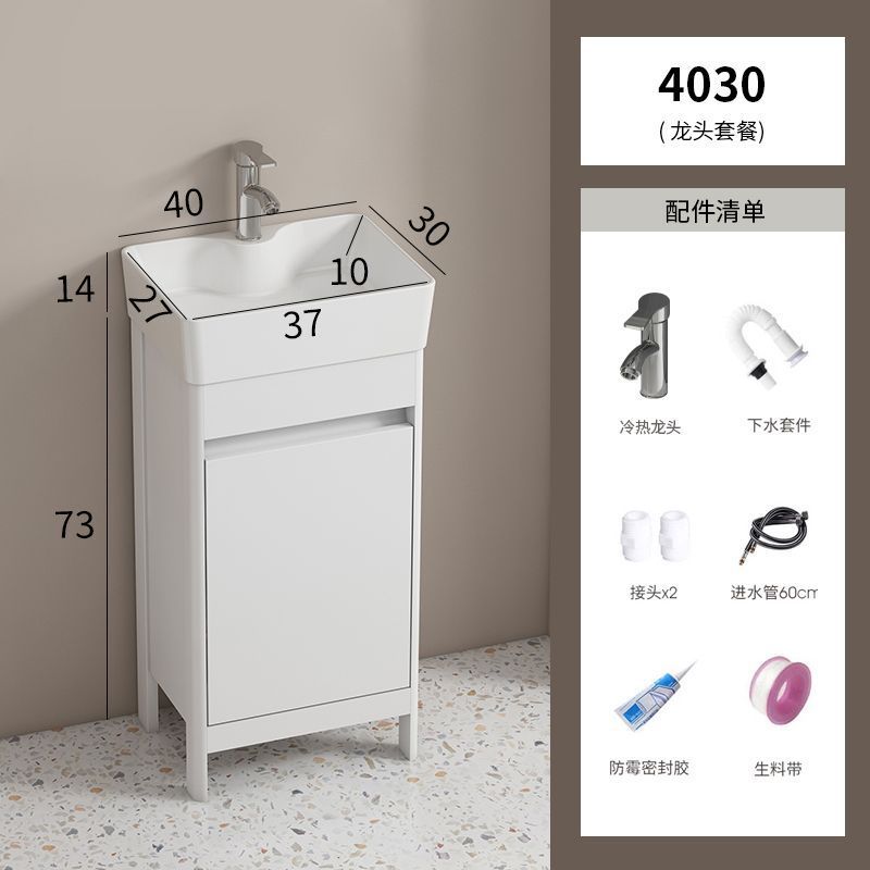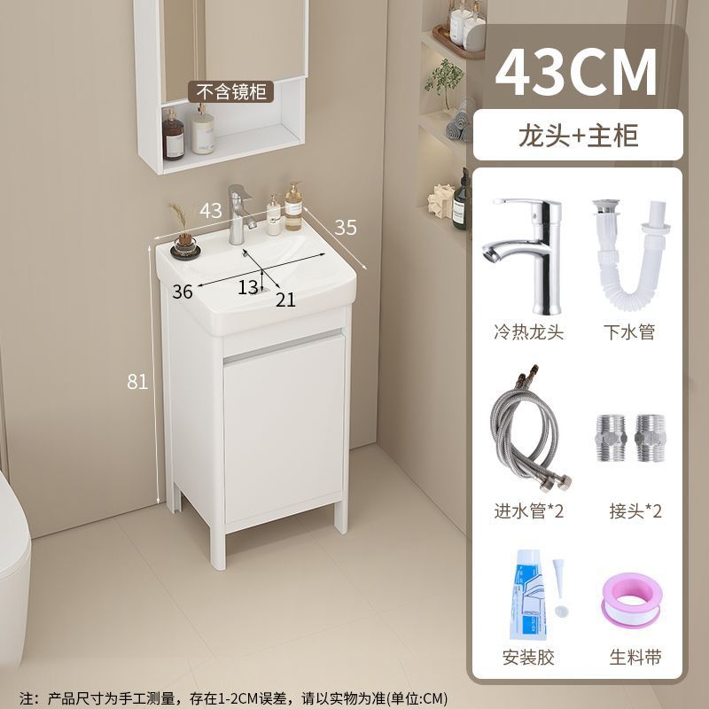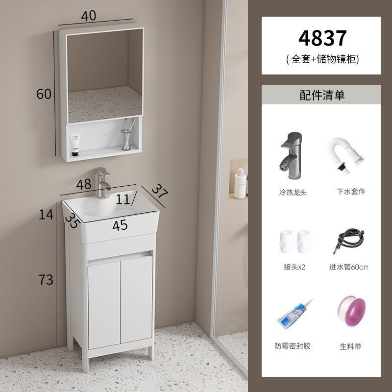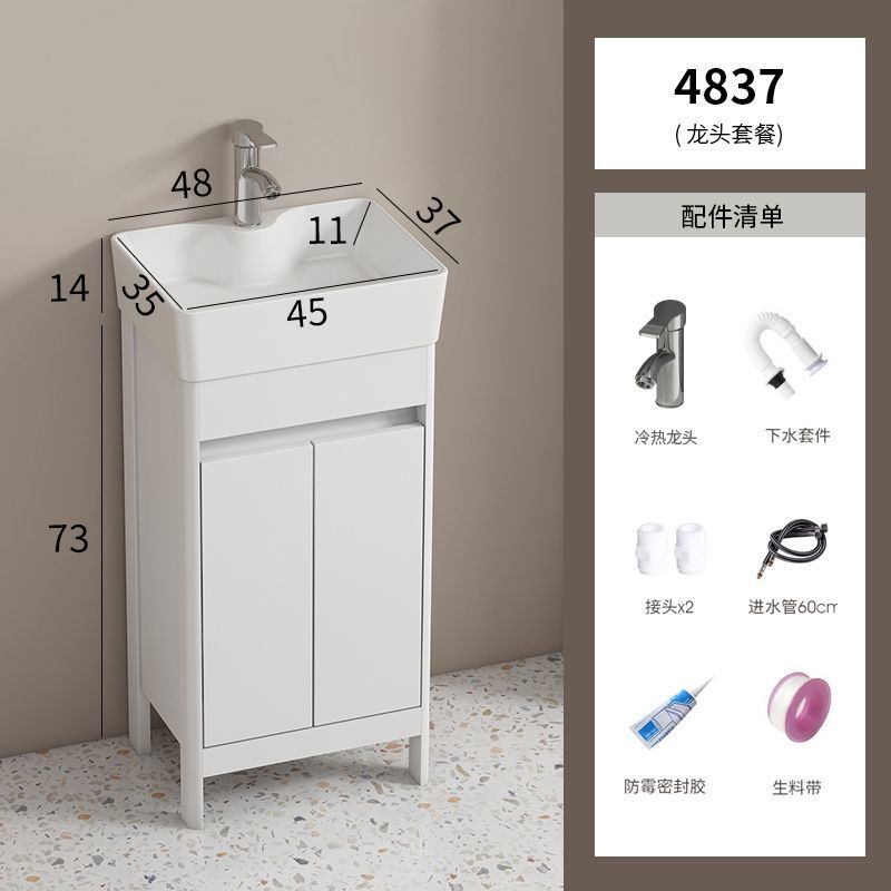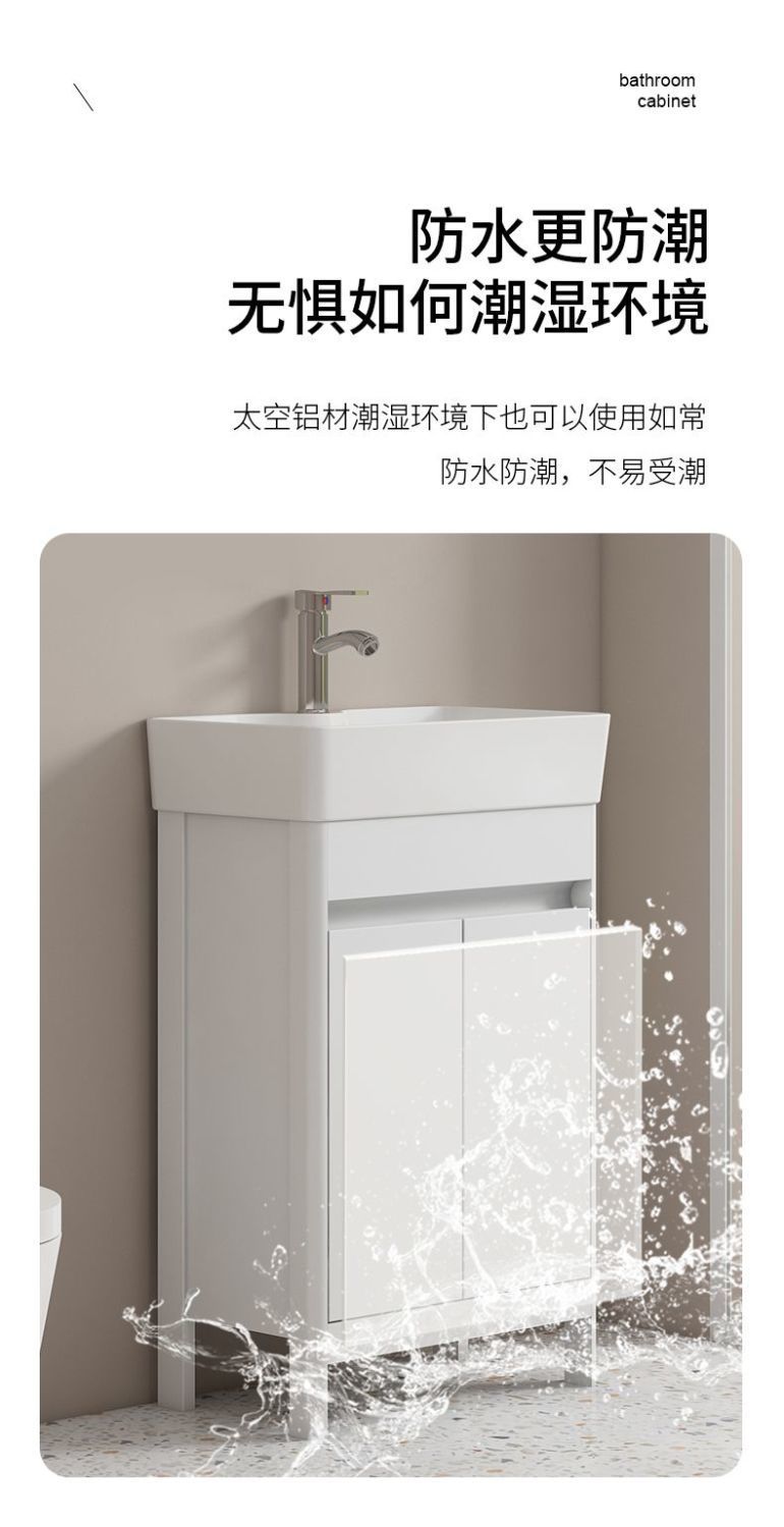 소형 공간 알루미늄 욕실 캐비닛, 바닥 설치형 세라믹 일체형 세면대, 발코니 세면대스토어 가기