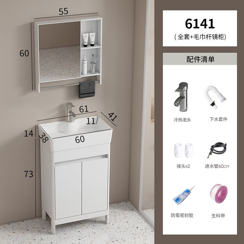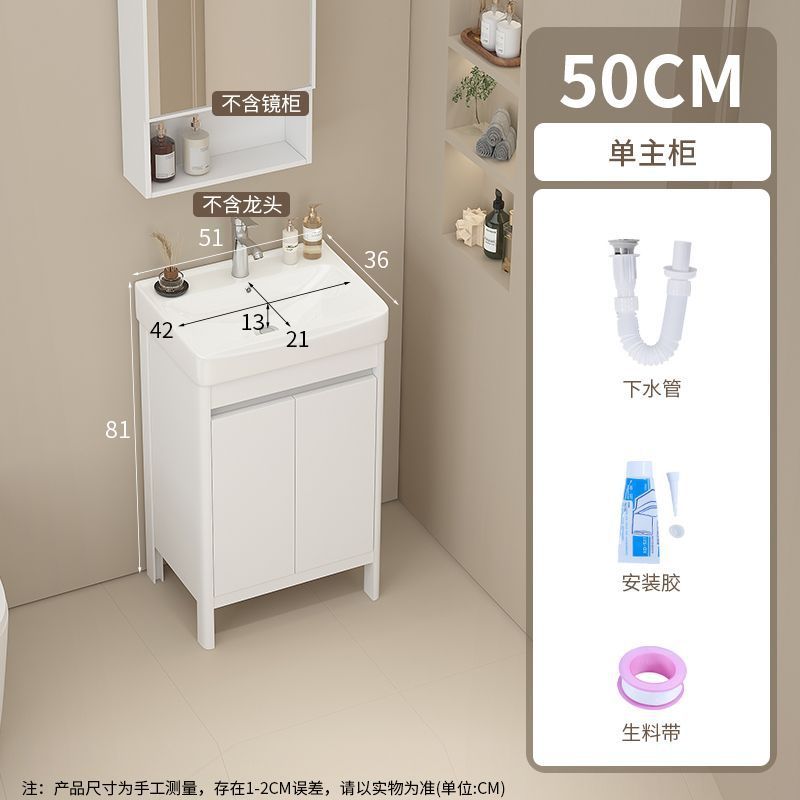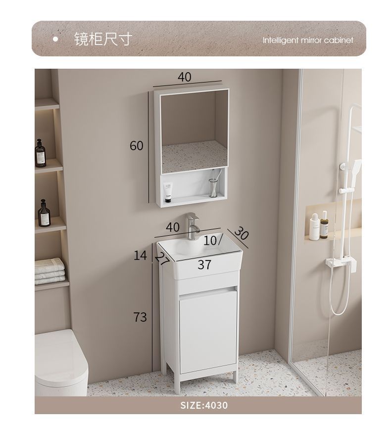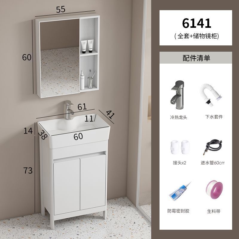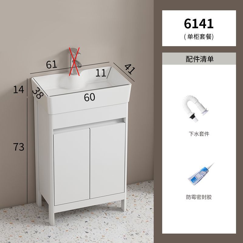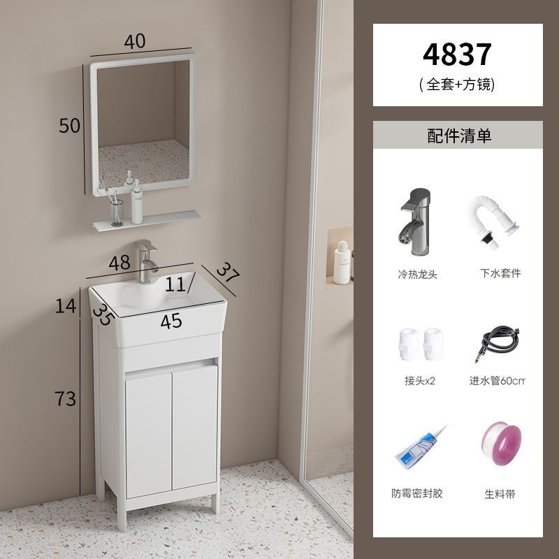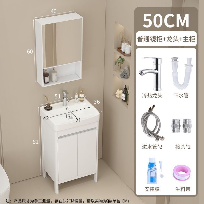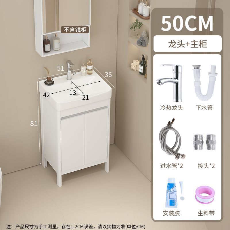 소형 공간 알루미늄 욕실 캐비닛, 바닥 설치형 세라믹 일체형 세면대, 발코니 세면대스토어 가기