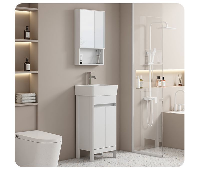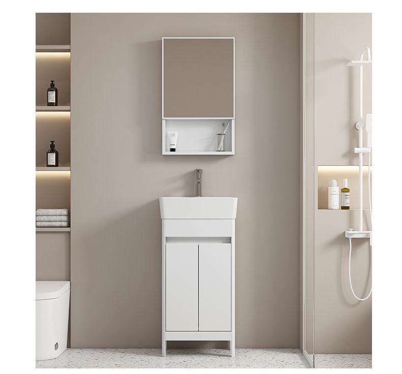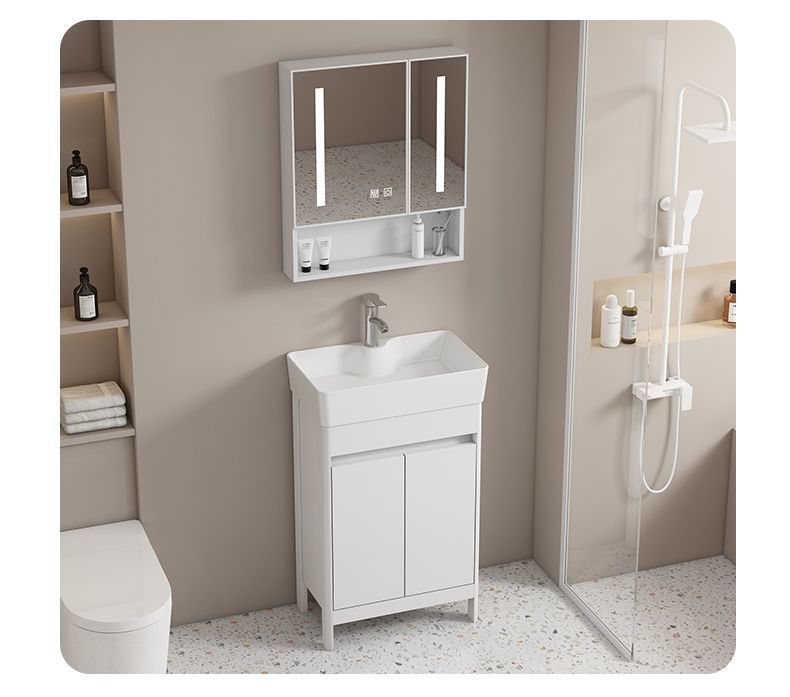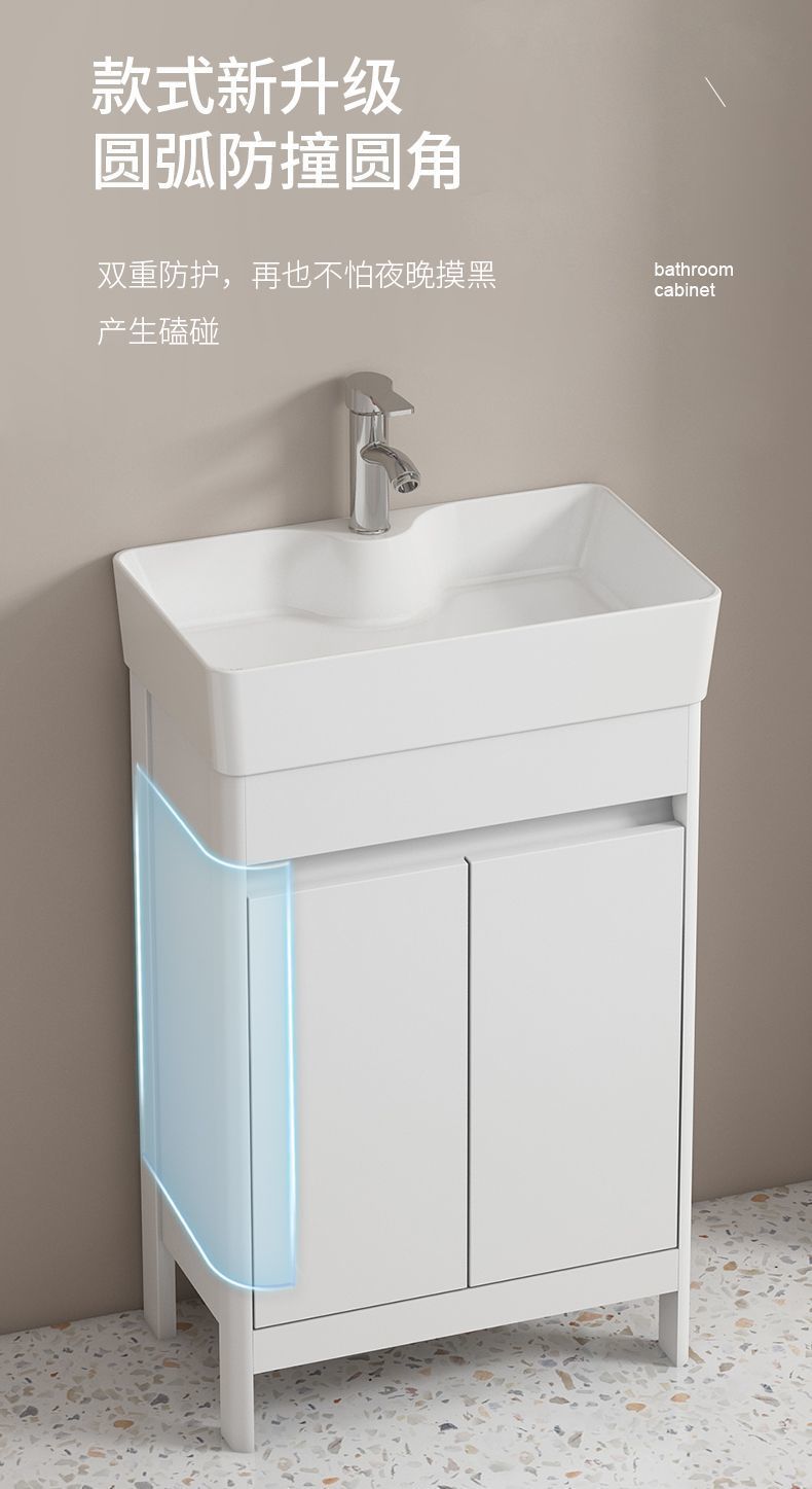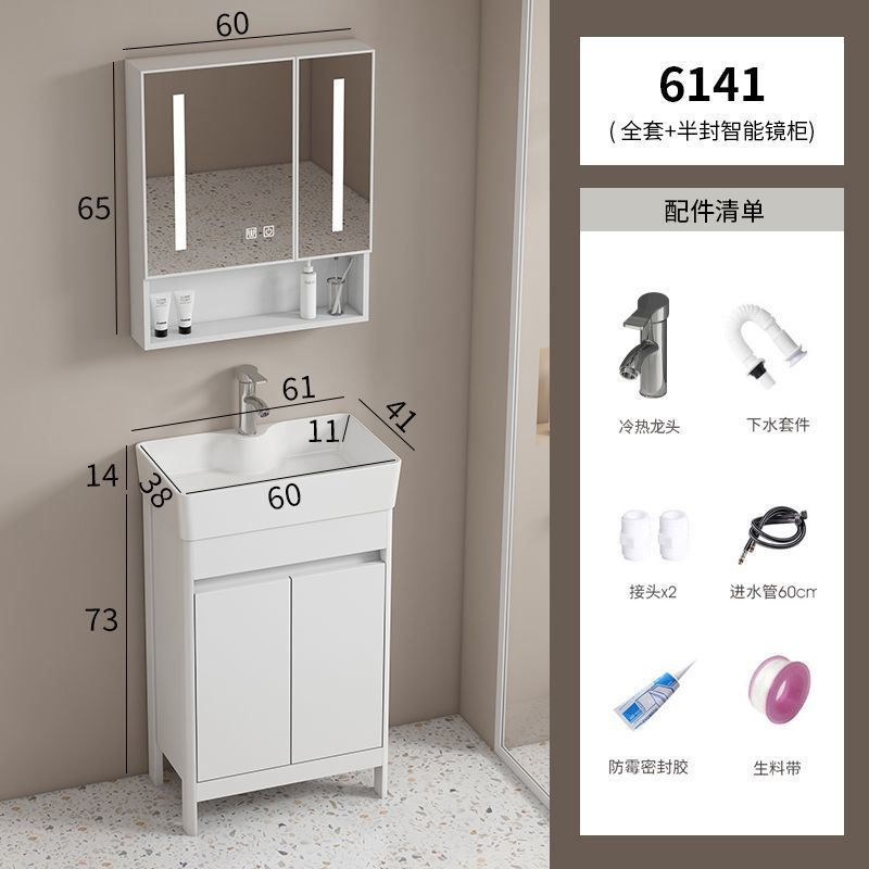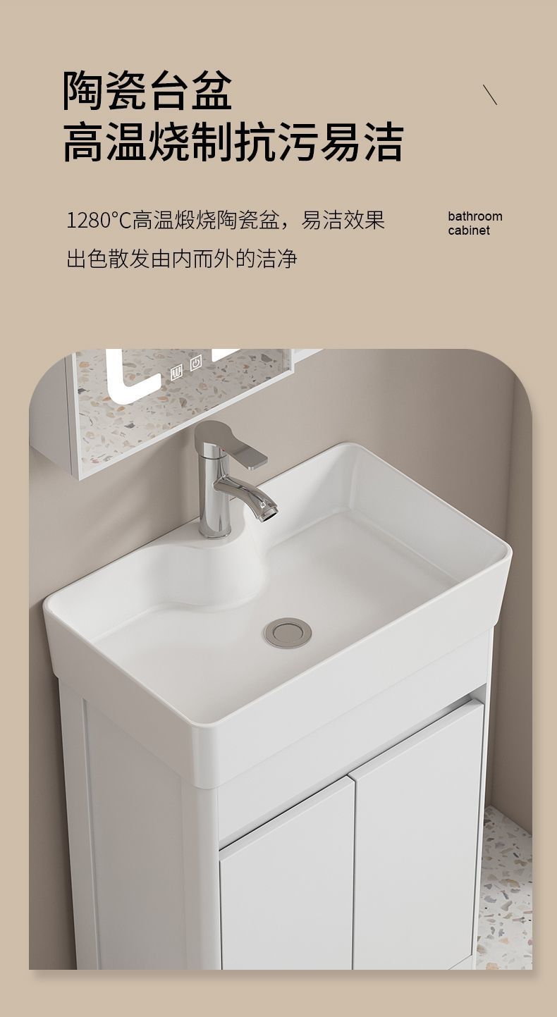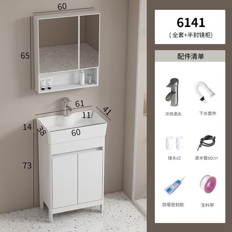 소형 공간 알루미늄 욕실 캐비닛, 바닥 설치형 세라믹 일체형 세면대, 발코니 세면대스토어 가기