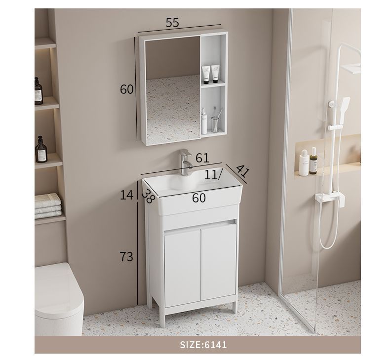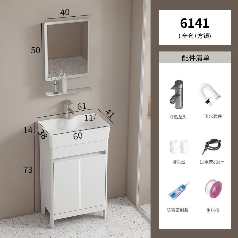 소형 공간 알루미늄 욕실 캐비닛, 바닥 설치형 세라믹 일체형 세면대, 발코니 세면대