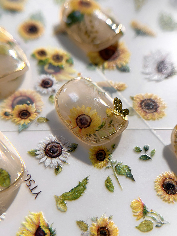 YITU 개미 그림 플랫 해바라기 네일 아트 스티커 작은 신선한 얇은 단단한 꼬리 장식 스티커 접착 YT5096스토어 가기