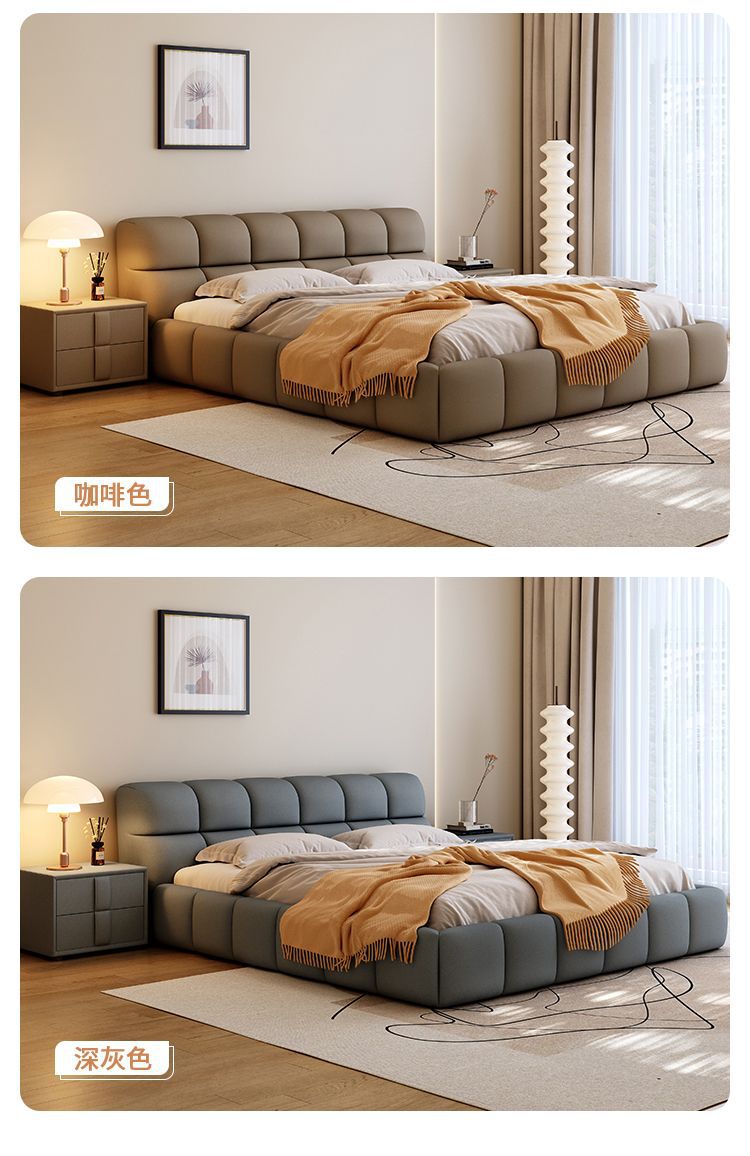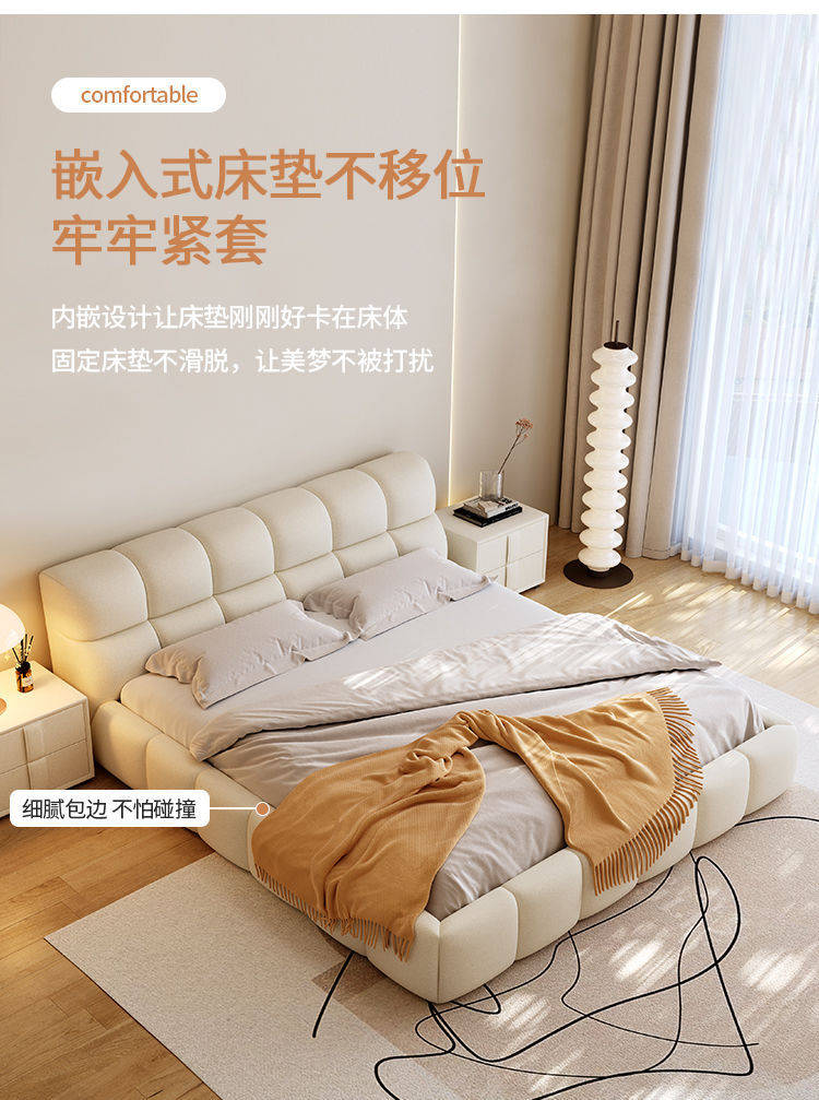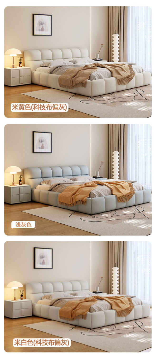 퍼프 침대 크림 스타일 기술 패브릭 침대 간단한 현대 우유 벨벳 마스터 침실 더블 인터넷 인기있는 Ins 크림 스타일스토어 가기