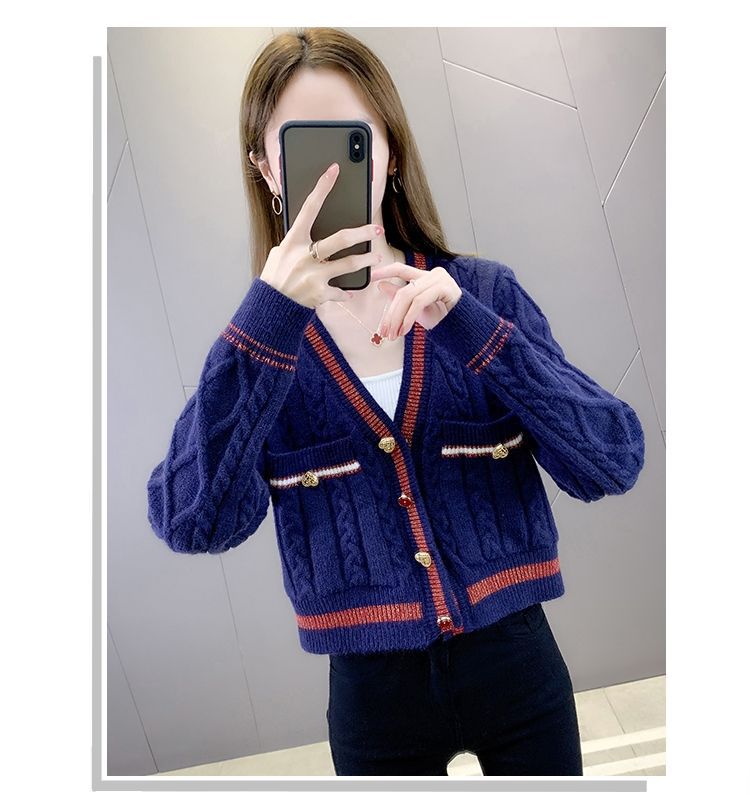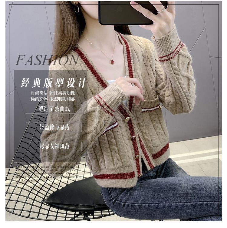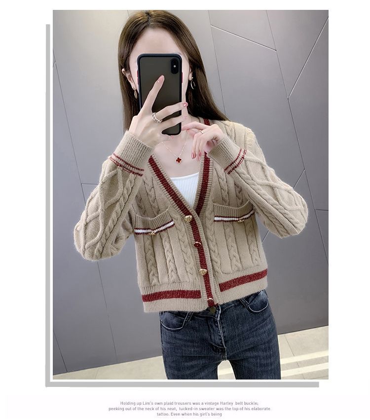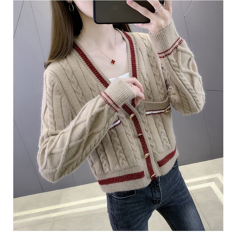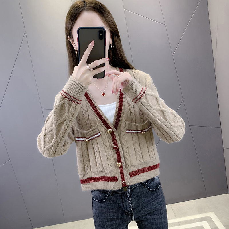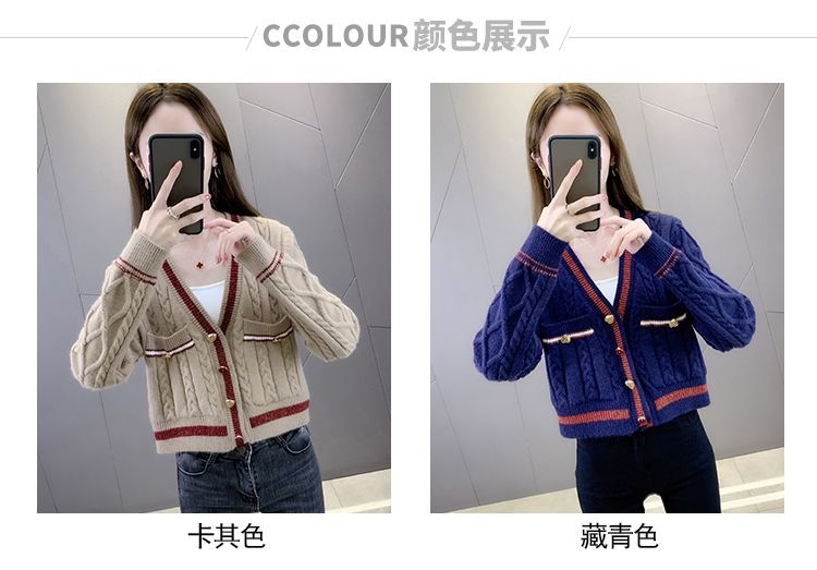 짧은 짧은 스웨터 카디건 여성 봄 새로운 스타일 우아한 V-넥 트위스트 니트 코트 트렌디스토어 가기