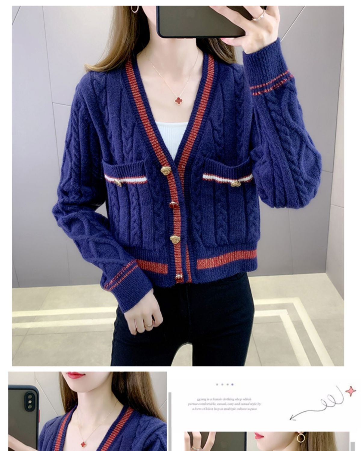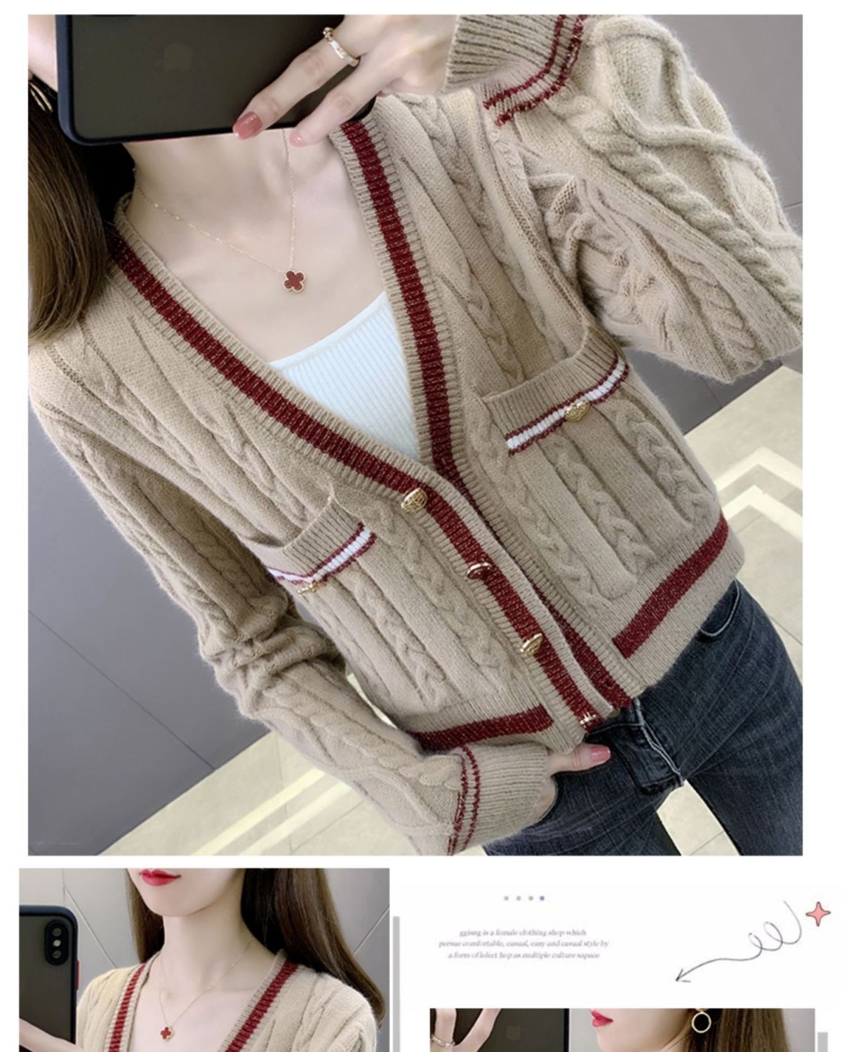 짧은 짧은 스웨터 카디건 여성 봄 새로운 스타일 우아한 V-넥 트위스트 니트 코트 트렌디
