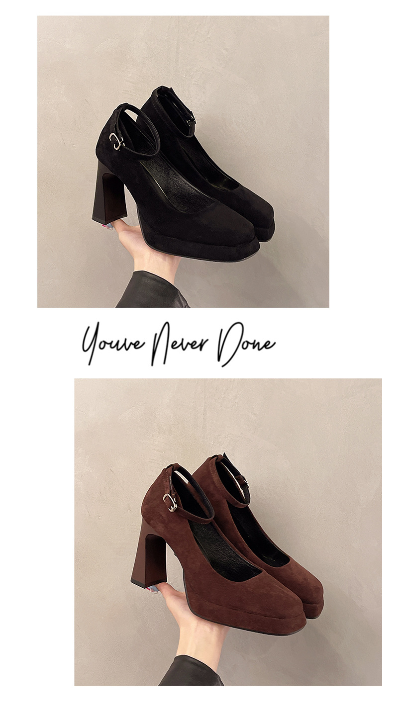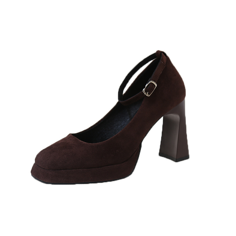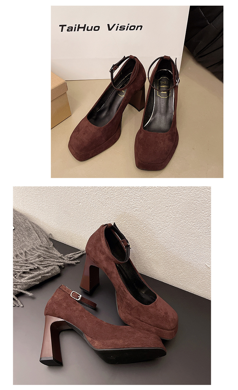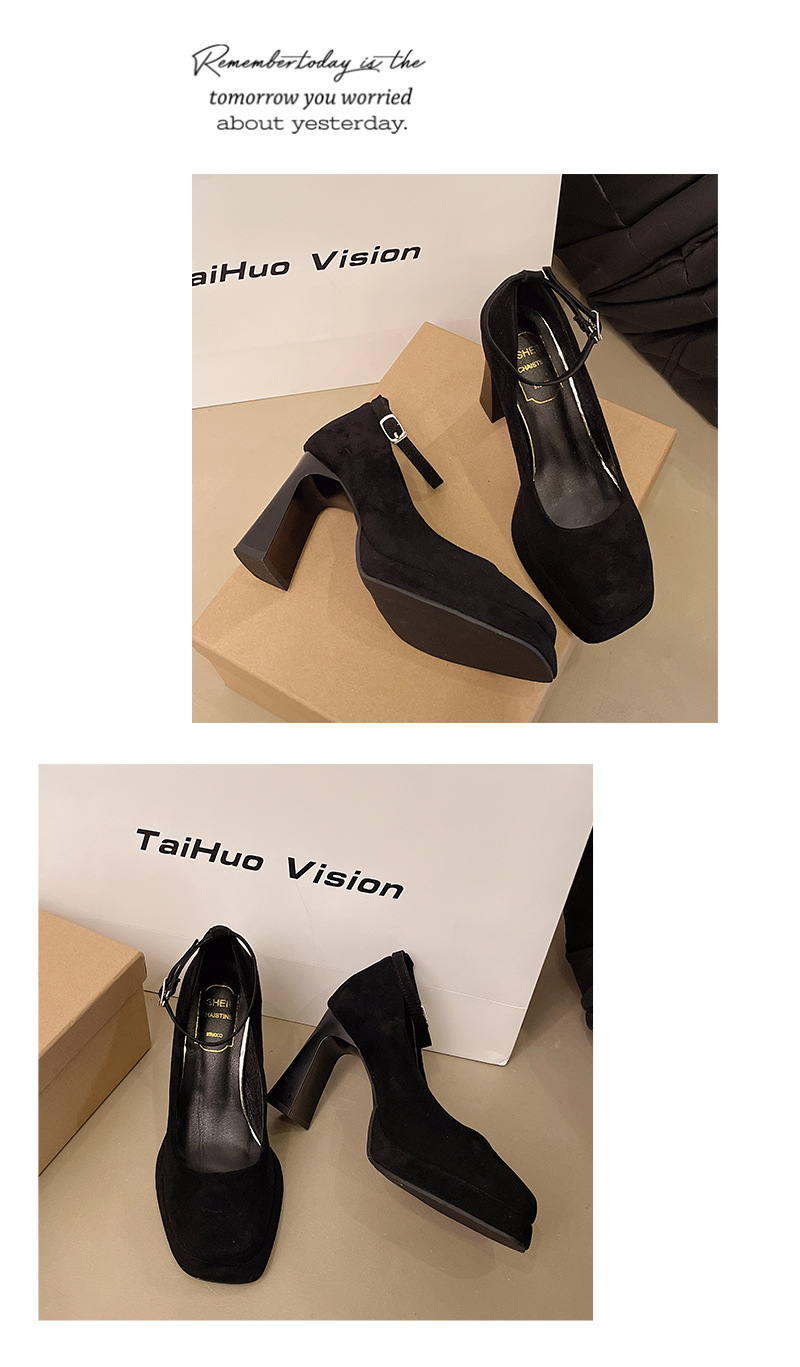 한 단어 버클 하이힐 신발 여성 2025 년 새로운 봄과 가을 프랑스 스타일 메리 제인 스퀘어 헤드 플랫폼 두꺼운 힐 얕은 입 싱글 레이어 신발스토어 가기