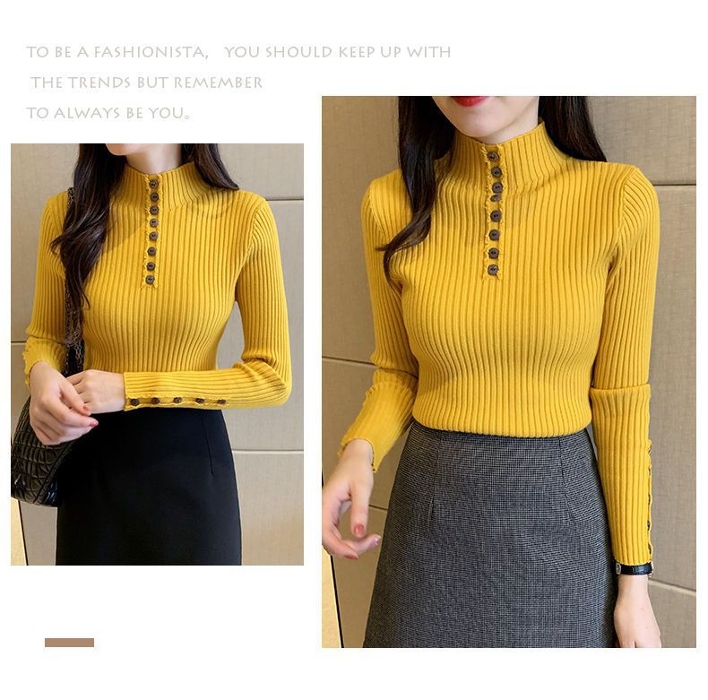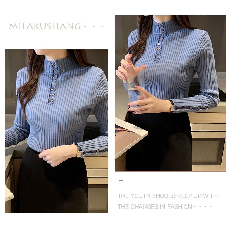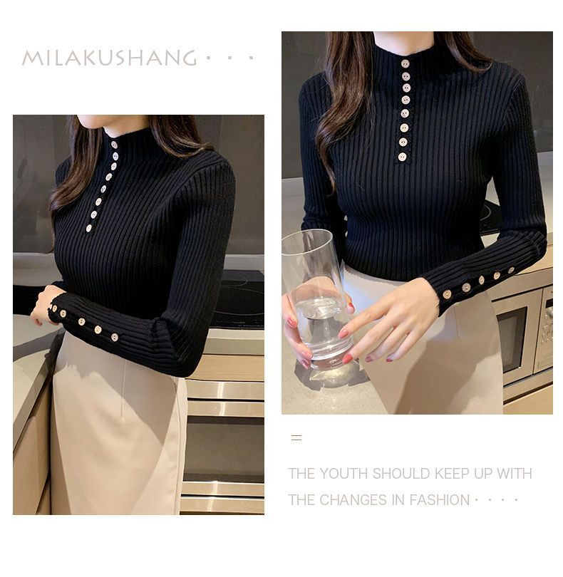 하프 하이 칼라 올매치 한국식 베이스 셔츠 여자 긴팔 가을 · 겨울 새 도착 스웨터 이너 슬림핏 스웨터 탑