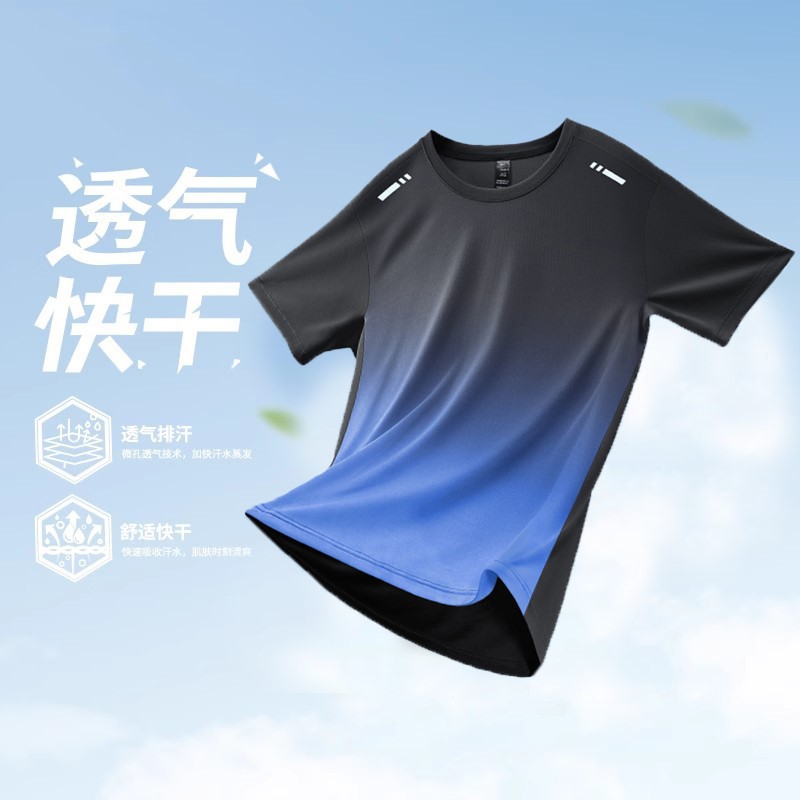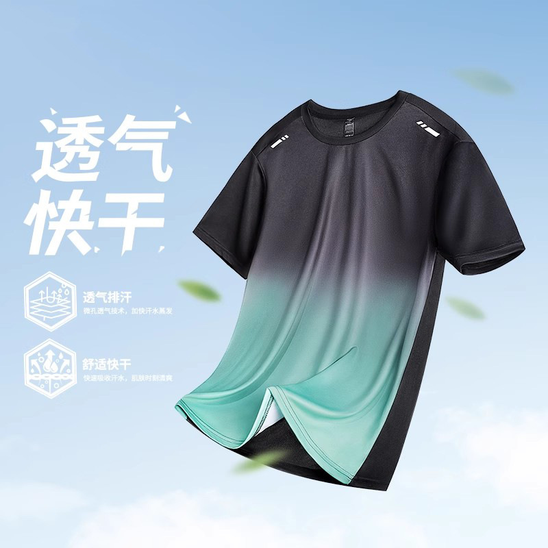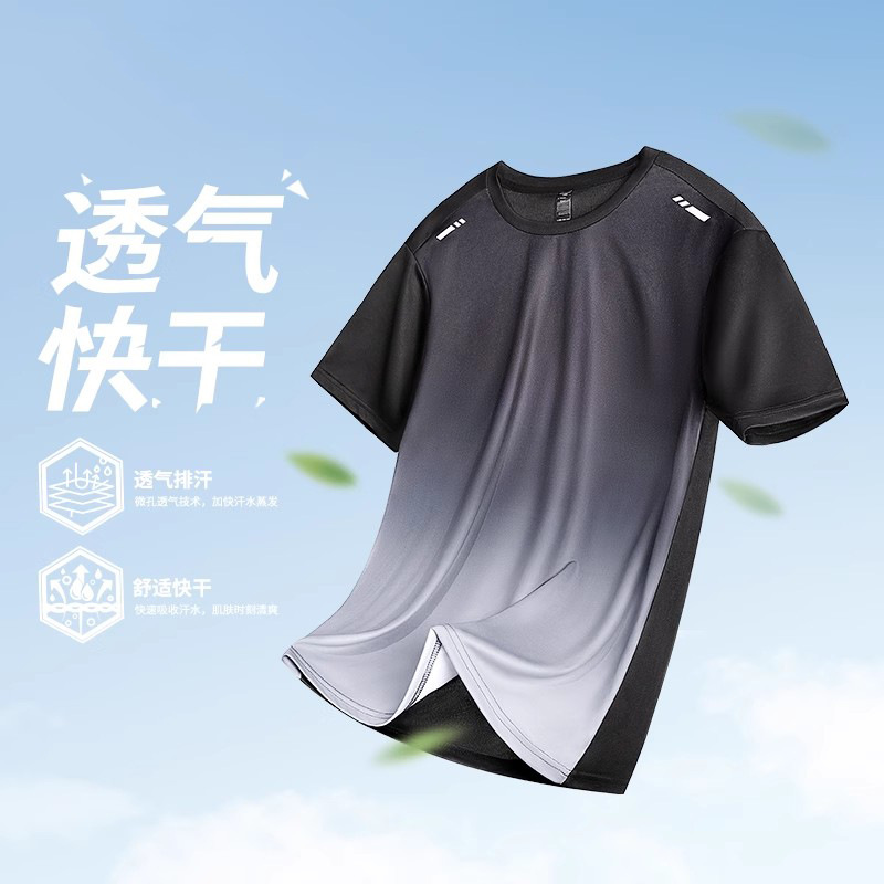 반팔 빠른 건조 옷 훈련 스포츠 아이스 실크 얇은 달리기 옷 배드민턴 세트 피트니스 남자 여름 농구 셔츠스토어 가기