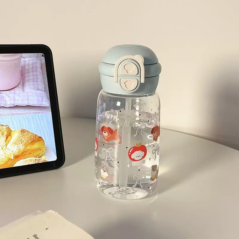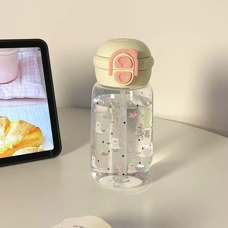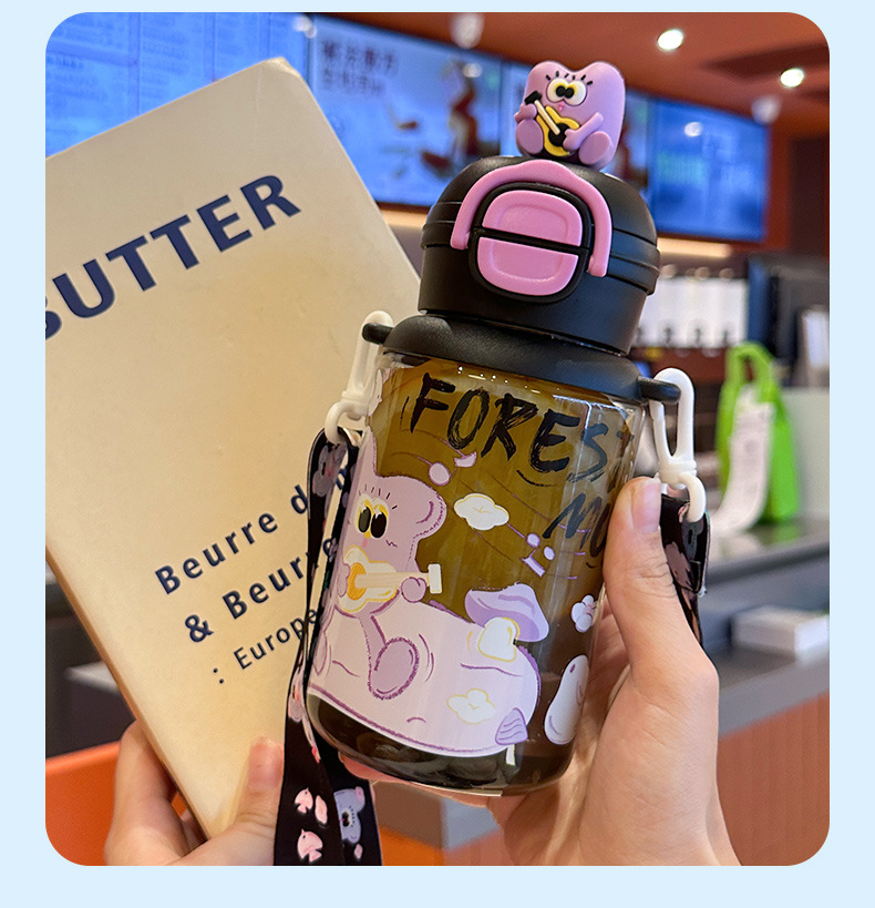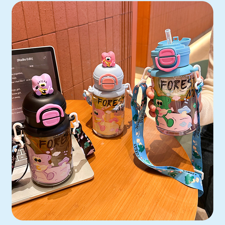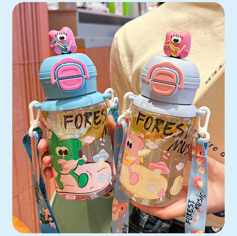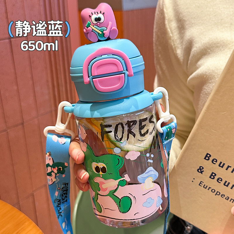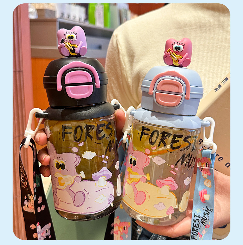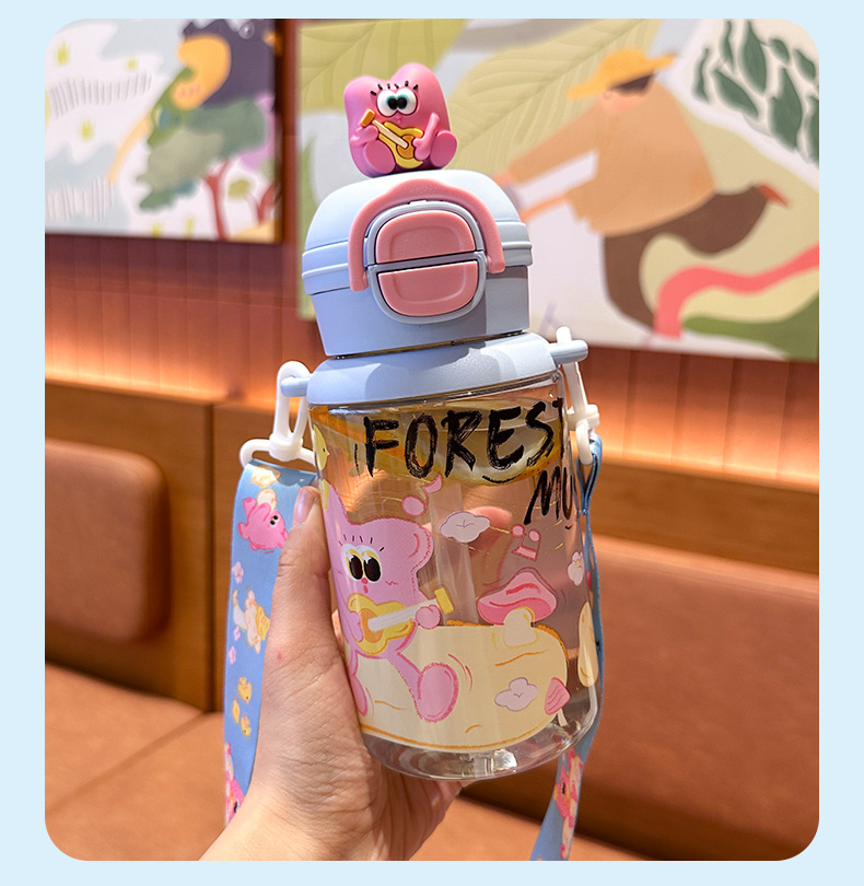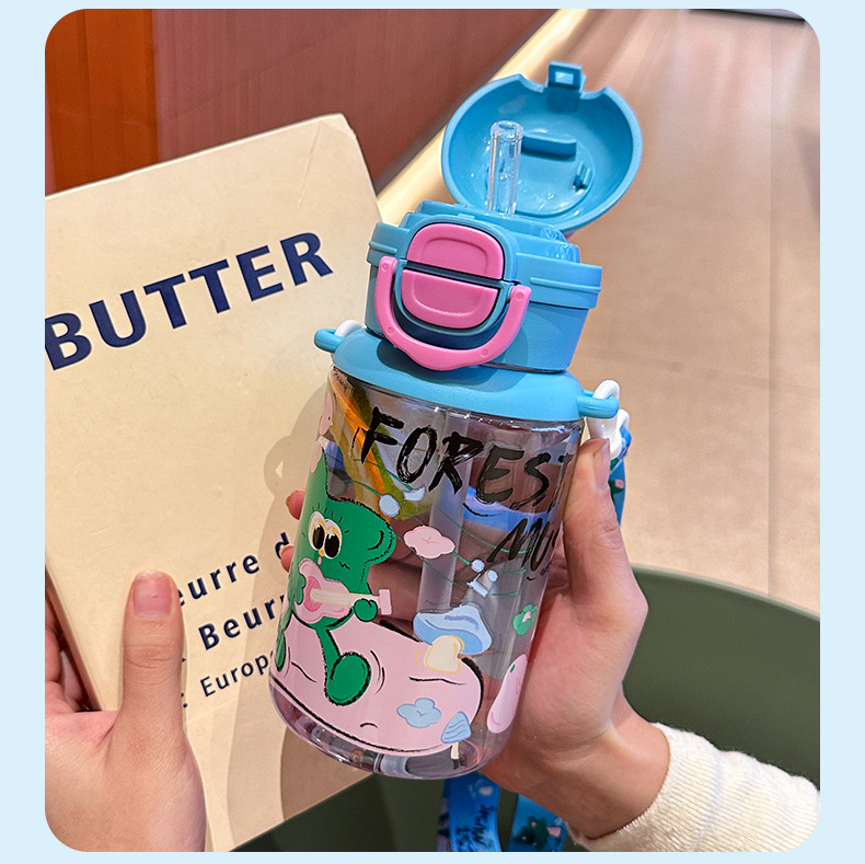 높은 가치의 플라스틱 컵 고온 만화 어린이 더블 마시는 밀짚 컵 휴대용 스트랩 소녀 유치원 주전자스토어 가기