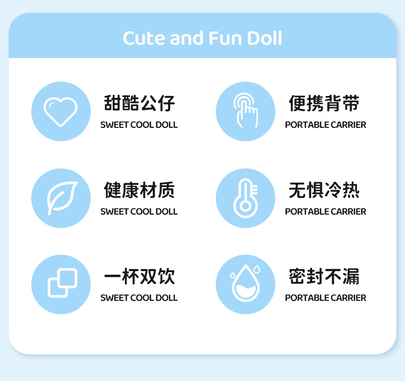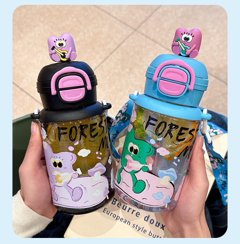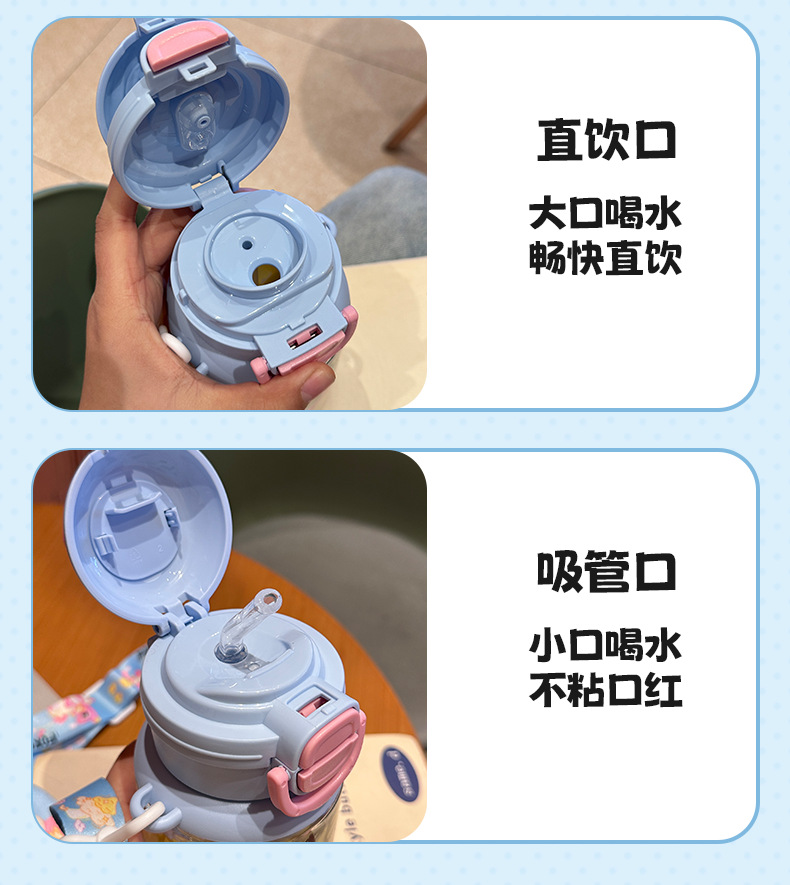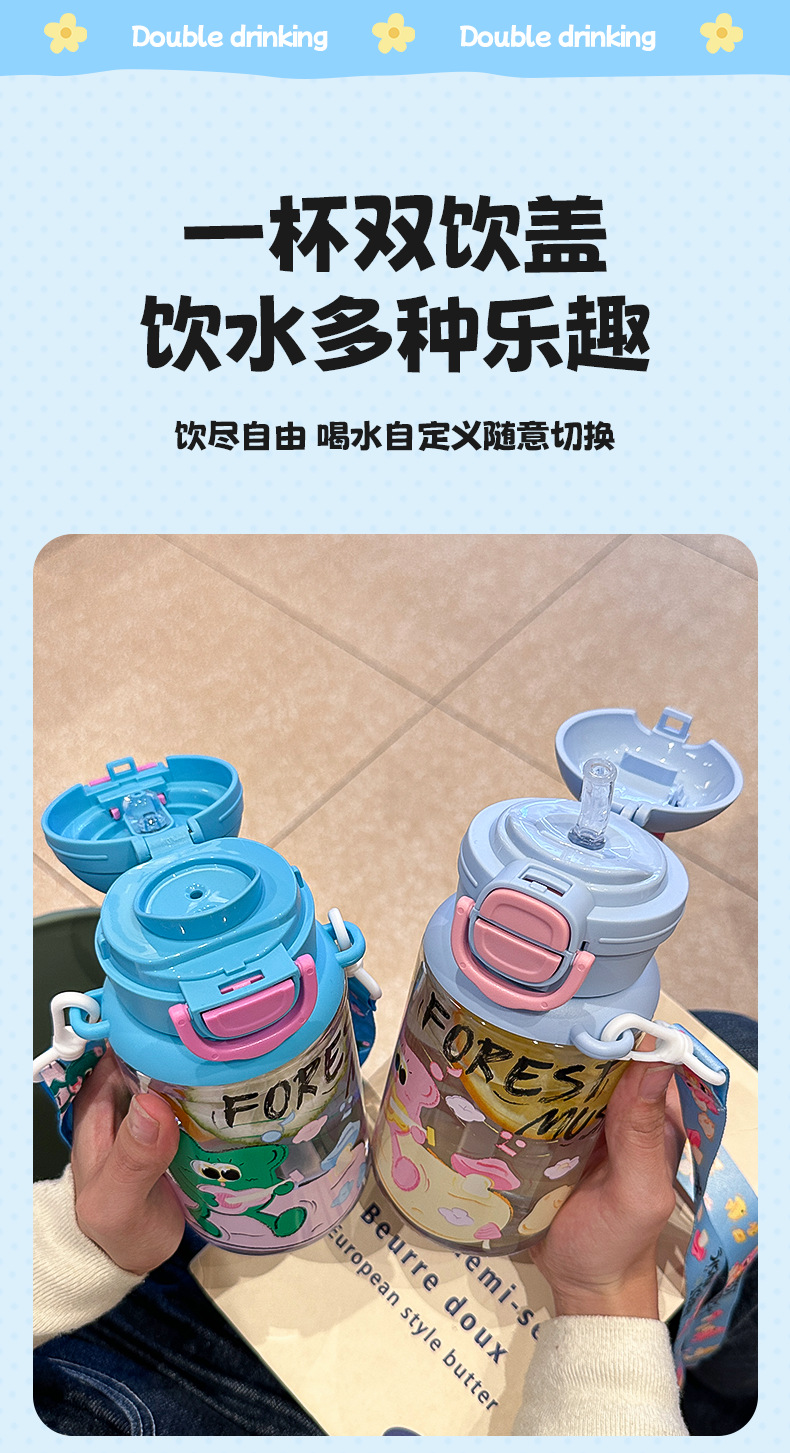 높은 가치의 플라스틱 컵 고온 만화 어린이 더블 마시는 밀짚 컵 휴대용 스트랩 소녀 유치원 주전자
