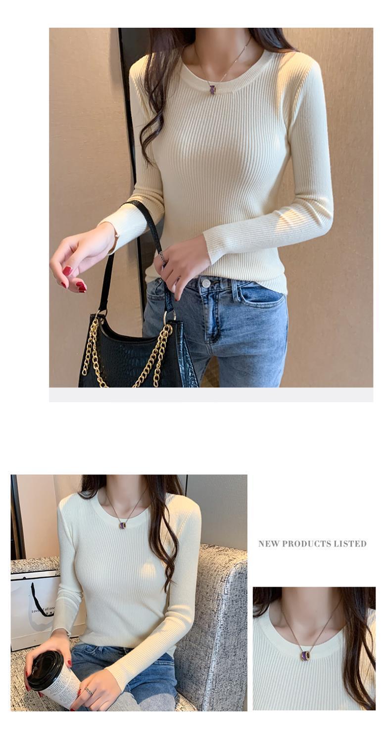 봄과 가을 라운드 넥 새로운 풀오버 슬림 핏 슬리밍 올 매치 롱 슬리브 탑 한국 스타일 솔리드 컬러 니트 베이스 셔츠 스웨터스토어 가기